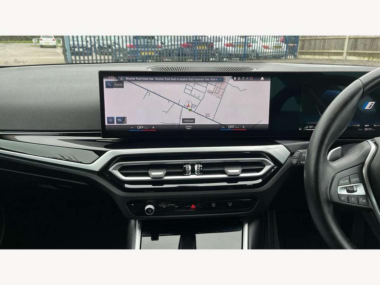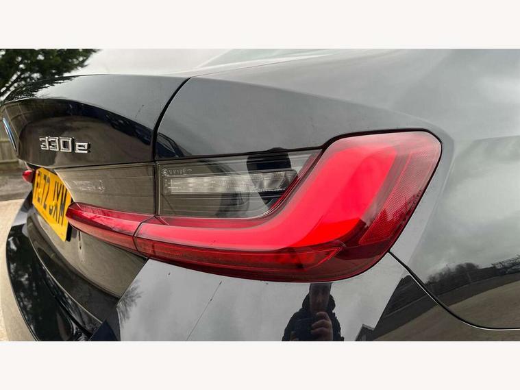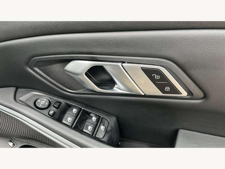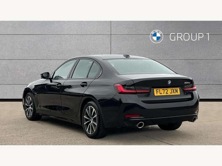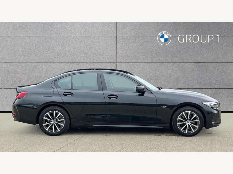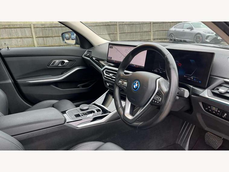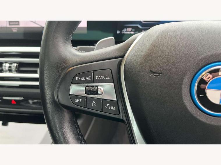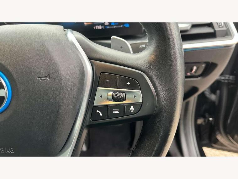 Active guard plus, Attentiveness assist, Automatic Start/stop button, BMW iDrive, BMW Teleservices, Condition based service, ConnectedDrive Services, Driving experience switch, Oil sensor for level and grade, Preparation for driver assistance, Shifting point display, Smartphone integration, Variable sport steering, Charging cable - Mode 2, Double joint spring strut front axle, Electronic differential lock control (EDLC), Fuel tank breather system, Sport automatic transmission with steering-wheel mounted gearshift paddles and launch control, Standard suspension, DAB tuner, "Electrified by i" exterior badging on charging flap, 3rd brake light, Acoustic glazing, Auto dimming rear view mirror, Automatic headlight beam throw control with load dependent regulating reaction, dynamic compensation of braking dive and acceleration squat, BMW emblem, engine compartment lid and tailgate, Body colour roof fin, Door sill strips, Electric windows - front and rear, with open/close fingertip control, anti-trap facility and comfort closing, Follow me home headlight function, Front and rear bumper system with replaceable deformation elements, Front apron plastic in body colour, Fuel filler flap - right rear in body colour, Heated washer jets, High gloss shadow line exterior trim, Illuminated bow type door handles in body colour drivers side with door lock, Interior rear view electrochromatic mirror with automatic anti dazzle function, LED headlights with LED daytime running lights and LED turn indicator, LED rear lights, Licence plate panel integrated into front bumper and tailgate, Matt black B-pillar finsher, Matt black window recess cover, Model designation on right side of tailgate, One piece front bumper cover including towing eye cover in body colour, Rain sensor with automatic headlight activation, Rear boot, Rear side wing doors, Reversing lights, Side frame decorative moulding black matt, Visible exhaust tailpipe finisher, Welcome lights in interior and door handle area, 12V power socket in front storage compartment, 2 front cupholder in centre console with clamping elements and matt black inlay, 3 seat bench in 2nd row, 3 zone automatic air conditioning, 40:20:40 split folding rear seat with loading system, Armrest integrated in front and rear door trim + front centre console armrest, Battery in luggage compartment, BMW ID, Cruise control operation in steering wheel, Folding rear centre armrest with 2 cupholders, Front and rear door exit lighting (left / right), Front and rear footwell lighting, Front and rear headrests, Front and rear reading lights, Front and rear velour floor mats, Front sport seats, Heated front seats, Height adjustable mechanically and infinitely variable steering column, Illuminated armrest storage compartment, Illuminated glove compartment, Illuminated luggage compartment, Lashing eyelets in luggage compartment, LED ambient lighting with welcome carpet light, Make-up mirror lights, Sensatec perforated upholstery, Single front passenger seat, Standard seat for driver and passenger with manual adjustment, Sunvisors with vanity mirrors and ticket pocket, Three spoke multifunction sport leather steering wheel, Toolkit located in luggage compartment, Connected pack professional - 3 Series Saloon/Touring, Interior and exterior mirror pack - 3 Series Touring/Saloon, Storage compartment pack - 3 Series Saloon/Touring, 3x3 point rear seatbelts, BMW emergency call, Child locks on rear doors, Crash sensor activating of airbags, Unlocking doors, hazard warning lights, interior light, safety battery terminal, Driver and front passenger with seat occupancy detection for driver's and passenger side, Driver and passenger side airbags, body protection at side and airbags deploy from seat backrests, Dynamic brake control, Dynamic stability control + (DSC+) - Anti-lock Braking System (ABS) with brake assist and cornering brake control + Automatic Stability Control (ASC), Dynamic Traction Control - DTC, Electric parking brake including automatic hold function and automatic release of the parking brake when driving off, Head airbags in 1st and 2nd row, head protection at side, curtain airbags open from headliner above 1st and 2nd row, Side impact protection, Tyre pressure monitoring with three level warning strategy, Ventilated front and rear disc brakes, Warning triangle and first aid kit, Alarm system, Centre lock switch, Closing system with central locking, Electronic vehicle immobiliser, High gloss black interior trim, 17" V spoke Obrit grey alloy wheels - Style 775 including BMW mobility kit,