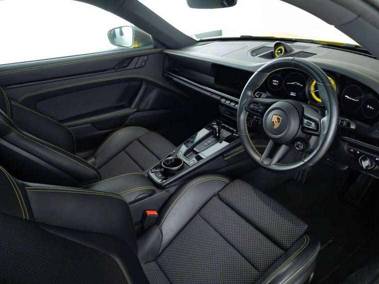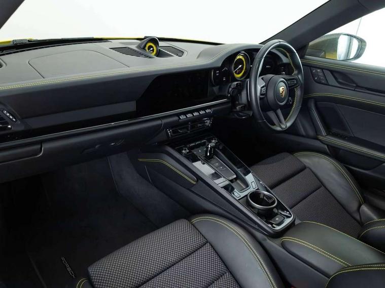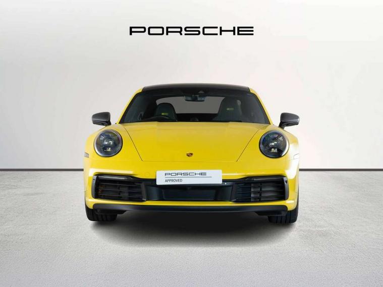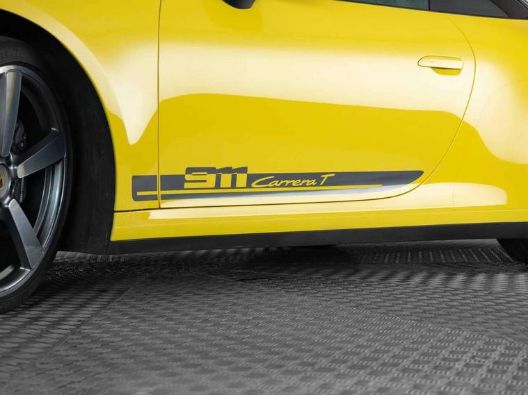 10.9 inch centre display, Automatic start/stop system, eCall emergency system, Gear indicator in rev counter, Instrument cluster with central analogue rev counter and two 7-inch TFT displays, Porsche Communication Management (PCM) including online navigation module, mobile phone preparation, audio interfaces and voice control system, Porsche WET Mode, Service indicator, Smartphone integration with Apple CarPlay and Android auto, Stationary management with HOLD function, Trip computer, Warn and brake assist including pedestrian protection, 8 Speed Porsche Doppelkupplung (PDK), Aluminium block and cylinder heads, Direct fuel injection (DFI), Expansion intake manifold, Four valve per cylinder, Integrated dry-sump lubrication with an on-demand oil pump, McPherson front axle with anti roll bar, Multi-link suspension with anti-roll bar at rear, PASM sport suspension 10mm lowered with helper springs added to rear, Porsche Stability Management (PSM), ABS with extended brake functions, Rear wheel drive, Twin turbocharger intercooled, Two gasoline particulate filter, Two three-way catalytic converters and on-board diagnostics for monitoring emission control system, VarioCam Plus variable valve timing and switchable valve lift, Water cooled with thermal management, 2 USB-C connectivity and charge ports in the centre console storage compartment, DAB Digital radio, "PORSCHE" lettering integrated in taillight strip, 911 Carrera T decorative side logo in agate grey, Auto deploying rear spoiler, Automatic headlight activation including welcome home lighting, Automatically dimming interior and exterior mirrors with integrated rain sensor, Black trim strips, Body coloured bumpers, Electrically adjustable heated exterior mirrors on door waist rails, aspherical on driver's side, Green tinted thermally insulated glass, Heated rear windscreen, Intelligent lightweight body in Aluminium/Steel composite construction, LED auxiliary light units in the front end with position lights, direction indicators and side indicators, Power windows with one touch operation and door seal protection, Rear boot, Retractable door handles, Side air intakes at front with active cooling flaps and air blades, Side skirts trim in black, Slat Inlays on rear lid painted in in high gloss agate grey, Sports exhaust system tailpipes in black, Taillight strip including integral parking lights and rear fog light, Trims on sideskirts in black, Windscreen washer system with aero wiper blades and washer jets, 12V socket in front passenger footwell, 2-zone automatic climate control with separate temperature settings for driver and front passenger, Ascending centre console with storage compartment, Clothes hooks on seat backrests, Driver and front passenger illuminated vanity mirrors, Embossed leather on front center seat, side bolsters and front seat headrests, Front head restraints, Heated front seats, ISOFIX child seat mounting points on passenger seat, Leather headrests embroidered with 911 logo in black, LED door lights, LED footwell lights, LED glove compartment lighting, LED ignition light, LED luggage compartment lighting, LED orientation light, LED reading lights, Lockable glove compartment, Luggage compartment at front, Luggage compartment lid release, Particle/pollen filter with active carbon filter, PDK gear selector with automatic mode, manual gear selection via shift paddles on the steering wheel, Single front passenger seat, Smooth finish leather on steering wheel rim, door handles, door panel armrests and centre console storage compartment lid, Split folding rear seats, Storage compartments in each doors, Two individual cupholders 1x as inlet in centre console and 1x passenger side, 4 piston aluminium monobloc fixed + brake calipers at front and rear + brake calipers with black finish, Brake discs with 330mm diameter at front and rear, internally vented and cross-drilled, Electric parking brake, Electromechanical power brake, Full size two stage airbags for driver and front passenger, Porsche side impact protection system includes side impact protection in doors, curtain, head/thorax airbags for driver/front passenger in each door, Tyre pressure monitoring system, Dashcam prep, Engine immobiliser with remote central locking and alarm system with ultrasonic sound based interior surveillance, Porsche vehicle tracking system (PVTS Plus), Tyre repair kit with sealing compound and electric air compressor,