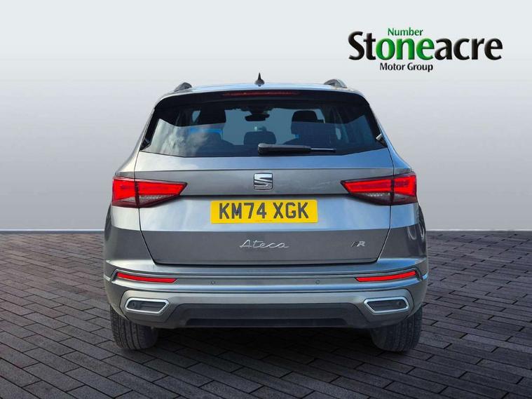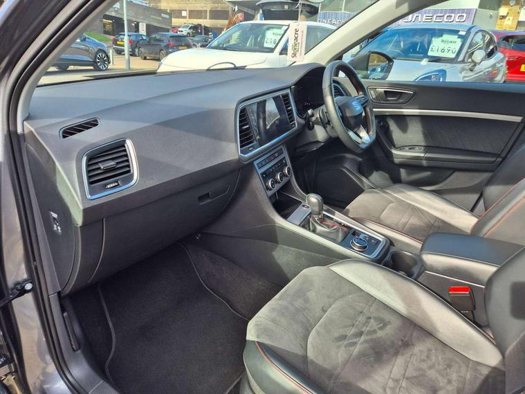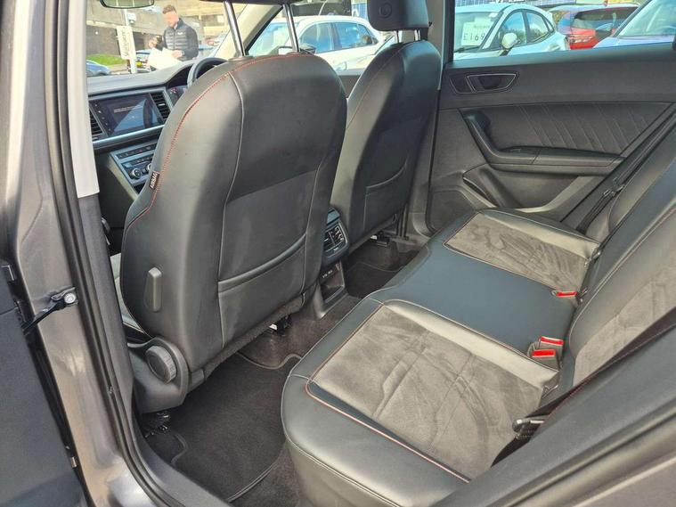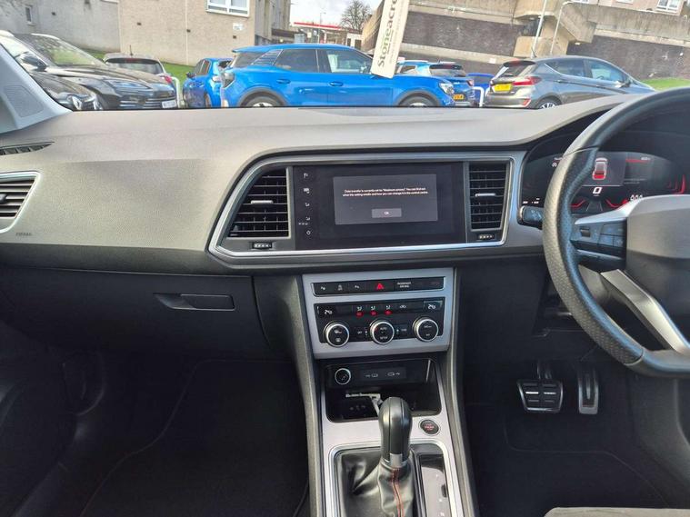 8" Digital cockpit, Colour multi-function on board computer display, Cruise control system with speed limiter, E-call, Outside temperature gauge, Progressive power assisted steering, SEAT drive profile with driving experience button - Normal, Sport, Eco and Individual mode, gearshift, steering and throttle response, Self parking functionality (includes front and rear parking sensors), Start/stop system, Tailgate, Trip computer, wired and wireless full link smartphone integration, Wireless phone charger, Steering wheel mounted audio/phone controls, Black roof rails, Black side window trim, Body colour bumpers, Body coloured wheel arch surrounds, Chrome front grille frame, Dark tinted rear windows, Daytime running lights, Door mirrors with welcome light silhouette, Dynamic headlight range control with self adjusting whilst driving, Electric adjustable/heated/folding door mirrors, Front and rear electric windows, Full LED headlamps with lens and LED front fog lamps with cornering function, Illuminated aluminium front door sill, LED 3rd brake light, LED rear tail lights with dynamic indicators, Rear exhaust tailpipe, Rear fog lights, Rear side wing doors, Rear wash/wipe, Roof spoiler, Variable front intermittent wipers, 12V socket in front, 3 seat bench in 2nd row, 60/40 split folding rear seat, Aluminium pedals, Dinamica upholstery with front comfort seats, Drawer under right front seat, Dual zone climate control, Front and rear head restraints, Front centre armrest, Front seat back storage pockets, Height adjustable driver and passenger seat with lumbar adjustment, ISOFIX points in outer rear seats with top tether anchorage points, Leather sports steering wheel and gear knob, Rear armrest and easy back seat release mechanism from boot, Single front passenger seat, Steering wheel mounted gearshift paddles, Convenience pack - Ateca, Interior lighting pack - Ateca, Navigation system pack with DAB - Ateca, Safety and driving pack with attention and drowsiness assist - Ateca, 3x3 point rear seatbelts, ABS, Traction control system (TCS), Electronic stability control (ESC) and Electronic differential lock system (XDS), Airbags - Driver and front passenger airbag with deactivation, front side, two curtain and driver's knee airbags, Electric parking brake with auto hold function, Front and rear seatbelt reminder, Front assist with autonomous emergency braking, Hill hold control, Manual rear child locks, Single tone horn, Tiredness recognition system, Tyre pressure monitoring system, Alarm, Keyless entry, Locking wheel bolts, Remote central locking, Chrome interior detailing, 18" Brillaint silver alloy wheels,