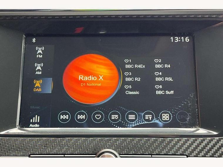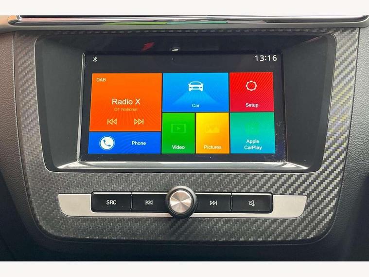 'Lights On' Reminder warning buzzer, 8" colour touch screen, Apple CarPlay, Bluetooth connectivity, Cruise control, PAS, Rear parking sensors, Trip computer, USB mobile phone charging function, 4 speaker audio system, DAB audio, iPod compatibility, Radio/MP3 player, Steering wheel mounted audio controls, USB/aux input socket, Auto headlights, Bi-function projection headlight, Body colour bumpers, Body colour door handles, Body colour electric adjustable heated door mirrors, Chrome side window trim, Follow me home headlights, Front and rear aero wiper, Front and rear electric windows with driver's one-touch up/down, Front fog lights, LED centre brake light, LED daytime running lights, Load carrier, Manual folding rear view mirror, Rear spoiler, Silver roof rails, 12V power sockets, 2nd row 60/40 split/fold, 4 way manually adjustable passenger seat with height, reach, tilt, backrest and headrest, 6-way manually adjustable driver's seat, Air conditioning, Boot light, Driver's footrest, Driver/passenger sunvisors and vanity mirrors, Front cupholders x 2, Front grab handles, Front headrests, Front reading lights, Glovebox, Houndstooth fabric upholstery, Illuminated switches and controls, Internal chrome door handles, ISOFIX restraints on outer rear seats x2, Leather steering wheel, Rake/reach adjustable steering wheel, Rear grab handle, Seat back pockets, Twin rear headrests, 3x3 point rear seatbelts, ABS/EBD, Anti rolling protection, Automatic unlocking of doors in case of impact, Child locks on rear doors, Dual front airbags, EBA, ESP, Front passenger airbag deactivation switch, Front seatbelts (3-point + pretensioner + load limiter), Front side airbags, Fuel cut off safety device, Hill launch assist, Seatbelt reminder for driver and front passenger, Side curtain airbags, Tyre pressure monitoring system, Alarm system and engine immobiliser, Automatic latching door, Remote central locking, Second remote key, Speed sensing door locks, Superlocking, 17" Turbine design alloy wheels, Tyre repair kit,