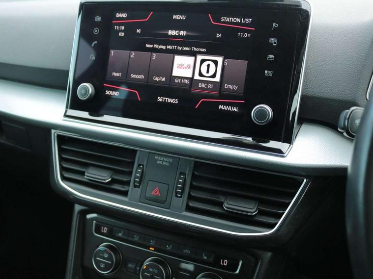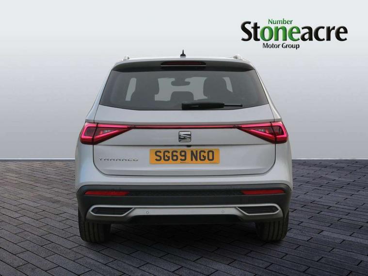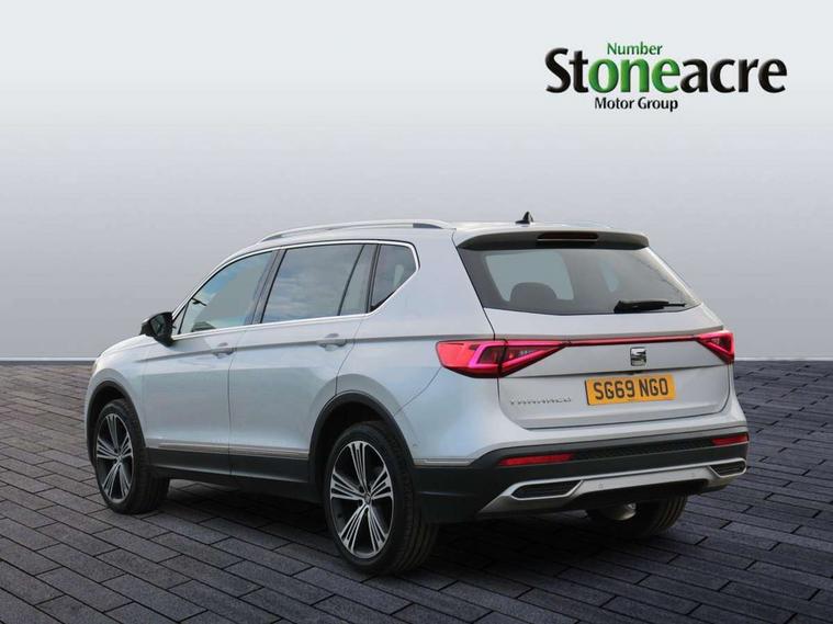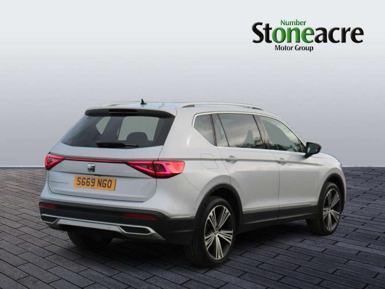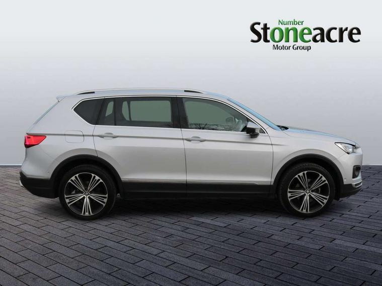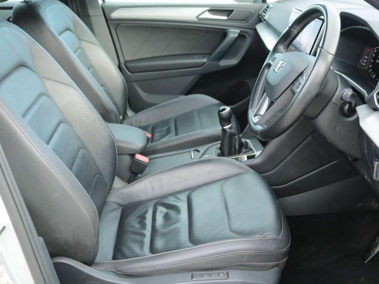 'Lights On' Reminder warning buzzer, 10.25" digital cockpit, Adaptive cruise control with speed limiter, Bluetooth audio streaming with handsfree system, Digital clock, Digital cockpit, e-Call (emergency call), Front assist city emergency braking and pedestrian protection, Full Link Smartphone Integration with Mirror Link, Apple Car Play, Google Android Auto, Lane assist, Low fuel warning light, Outside temperature gauge, Park assist system, Rear view camera, RPM counter, SEAT Drive profile - 4 different modes, progressive steering, 4Drive versions with off-road/snow, steering response, throttle response, gear shifts, Top view camera, Trip computer, Wash water level indicator, Comfort suspension, XDS electronic differential lock, Navigation system with 8" colour touchscreen with proximity sensor, 3D Map display, DAB, AM/FM Radio, 3 USB, Aux-in, 8 speakers, SD card, Steering wheel mounted audio/telephone controls, Auto dimming rear view mirror, Auto headlights with automatic coming and leaving home function, Automatic headlight adjustment, Body colour door mirrors and handles, Body coloured bumpers, Chrome front grille frame, Chrome roof rails, Chrome window trim, Dark tinted rear windows, Electric front/rear windows, Electrically adjustable and folding door mirrors, Front halogen fog lights with cornering function, Fuel door linked to central locking, Full LED headlights with LED rear lights, Hidden exhaust pipe, Illuminated aluminium front door sill with XCELLENCE logo, LED daytime running lights, LED licence plate lighting, Rain sensing wipers, Rear fog lights, Rear wash/wipe, 3 zone climate control, Ambient spot lighting and front footwell illumination, Black interior roof, Centre armrest in front with air outlet in rear, Driver and passenger sunvisor with covered and illuminated mirror, Driver/passenger lumbar adjustment, Easy fold rear seat system - second and third row, Electric driver's seat with memory, Folding table on front seat backrests, Forward and backward adjustable seats 2nd row, Four cargo rings in the boot, Front cupholders, Front seat back storage pockets, Gear shift indicator, Height adjustable driver's seat, Height adjustable front headrests, Height adjustable passenger seat, Illuminated boot, Instrument lighting with brightness control, ISOFIX points in outer 2nd row seats and front passenger seat with top tether anchorage points, Leather gear knob, Leather steering wheel, Leather upholstery with sports seats, Leather wrapped multifunction steering wheel, Luggage compartment floor with split function, Rear armrest and easy back seat release mechanism from boot, Sliding boot cover, Storage draw under front passenger seat, Three 12V sockets, Tool kit, White ambient lighting in front and rear door panels + LED lights in interior door handles, Winter pack - Tarraco, ABS, Active front head restraints, Driver/front passenger airbag, Drivers knee airbag, Electronic parking brake with auto hold, Electronic stability control, Front passenger airbag deactivation, Front side airbags, Hill hold control, Seatbelt reminders for all seats, Tiredness recognition system, Traction control, Two curtain airbags, Tyre pressure monitoring system, Alarm, Central locking, Keyless enter and go with electric tailgate with virtual pedal, Locking wheel bolts, Power locking and remote control with two foldable keys and opening boot selector, Chrome interior detailing - door and dashboard decorative inserts, 20" Supreme machined alloy wheels 37/1,