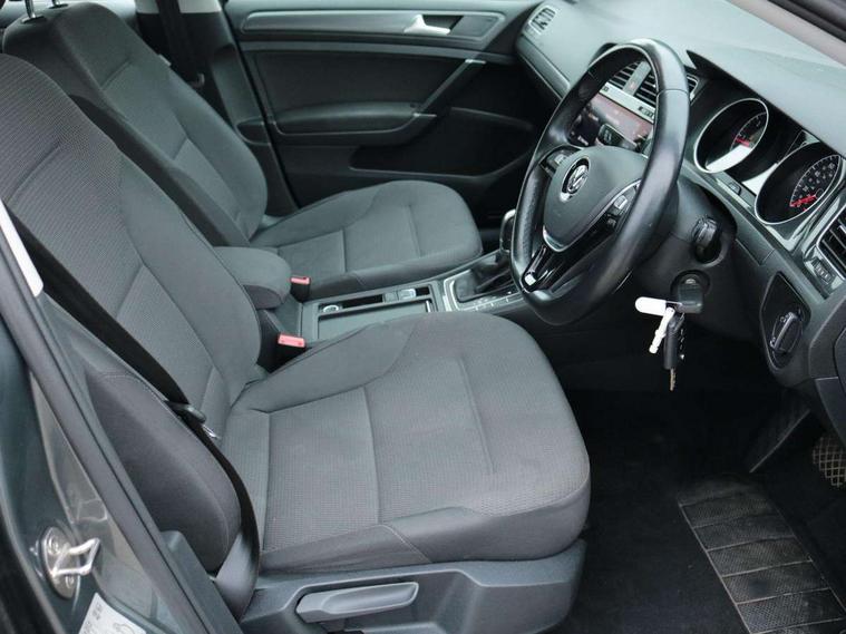 'Lights On' Reminder warning buzzer, 8" colour touch screen, ACC - Adaptive cruise control with front assist, forward collision warning, distance monitoring, city emergency brake and speed limiter, App-Connect, Bluetooth telephone and audio connection for compatible devices, Brake pad wear indicator warning light, Drive mode selector, Driver alert system, Driver profile selection, Front assist, radar sensor controlled distance monitor, city emergency braking + predictive pedestrian protection, Front assistant collision mitigation, Instrument cluster in white, Misfuelling protection device, Multifunction computer with visual gear change recommendation for fuel consumption, Power assisted speed sensitive electro-mechanical steering, Speedo, rev counter, electronic odometer, trip, service interval display, exterior temperature and fuel gauge, Stop/start system, Ultrasonic front and rear optical and audible parking sensors, Warning buzzer and light for front seatbelts unfastened, Battery regeneration during braking, Diesel particulate filter, XDS electronic differential lock, 8 Speakers, Composition media system, DAB Digital radio receiver, MP3/WMA compatability, SMS Functionality, USB and SD card connectivity, Automatic coming/leaving home lighting function, Automatic dimming rear view mirror/rain sensor, Black front air intake and radiator grille with chrome insert, Black rear diffuser, Body colour bumpers, Body colour door handles, Body colour door mirrors with integrated indicators, Electric front windows, Electric rear windows, Electrically adjustable and heated door mirrors, Glavanised body, Heated rear windscreen, High level 3rd brake light incorporating LED Technology, Range adjustable headlights via infotainment system with LED daytime running lights, Rear number plate lights incorporating LED technology, Rear window aerial, Rear window wash/wipe with intermittent wipe, Reflectors in all doors, Remote electrically foldable door mirrors, door mirror puddle lights and reverse activated kerb-view adjustment on passengers door mirror, Tailgate with integrated rear roof spoiler, Windscreen wipers/ intermittent wipe + 4 position delay, 12V socket in luggage compartment, 3 rear headrests, 4 load lashing points in luggage compartment, 60/40 split folding rear seat backrest, Bag hook in luggage compartment x 2, Cooled glovebox, Dust/pollen filter, Front and rear reading lights incorporating LED technology, Front centre armrest with storage compartment and two rear air vents, Front seat back storage pockets, Grab handles front x 2, rear x 2 with integrated coat hooks, Height and reach adjustable steering wheel, Illuminated vanity mirrors, Instrument lighting white adjustable panel illumination, Interior light delay, Isofix preparation for 2 rear child seats, Load through provision with rear centre armrest and cupholders x2, Luggage compartment light, Multifunction leather steering wheel with leather trimmed gear knob, Overhead storage box, Pearl grey headlining, Storage box in luggage compartment, Storage compartment in roof console with cover, Storage compartments in front doors, Storage compartments in rear doors, Stowable luggage compartment cover, Sun visors, Three spoke multi-function leather trimmed steering wheel and gearknob, Variable boot floor, height adjustable and removable, Mirror pack - Golf, 3 rear three point seatbelts, Airbags - Driver's and front passenger's, curtain airbag, Driver's knee, front side impact and passenger's airbag deactivation switch, Anti-lock Braking System (ABS) with Hydraulic Brake Assist (HBA), Automatic post collision braking system, Child locks on rear doors, Driver/Passenger optimised head restraints, Electronic parking brake with auto hold, Electronic stability control (ESC) including Electronic differential lock (EDL) and ASR (Traction control) with deactivation via infotainment system, Pre crash preventive occupant protection, Three point height adjustable front seatbelts with tensioners, Tyre pressure loss indicator, Alarm with interior protection, Electronic engine immobiliser, Remote central locking with 2 remote folding keys, Brushed dark silver decorative inserts in dash and door panels, Chrome plated air vent surround, Chrome-plated light switch surround, Polar night black centre console, Steel space saver spare wheel,