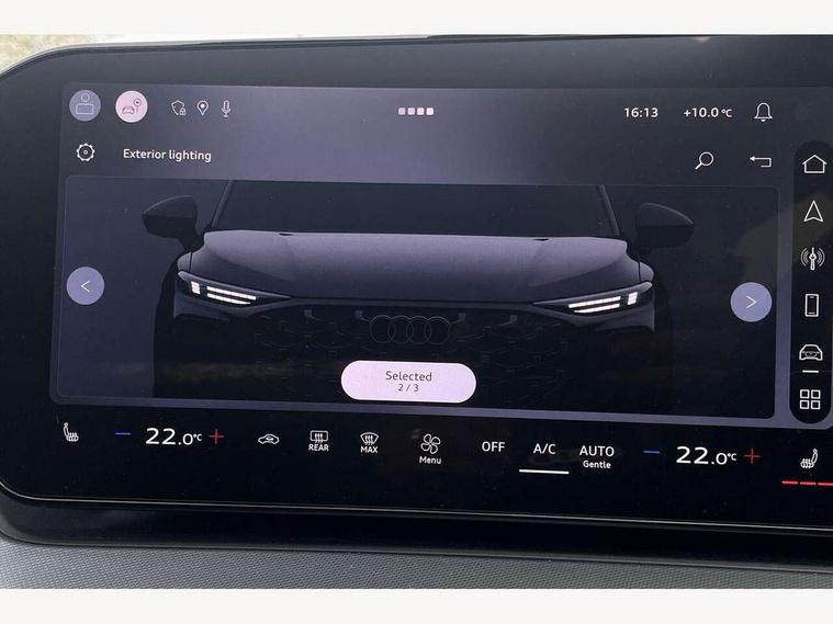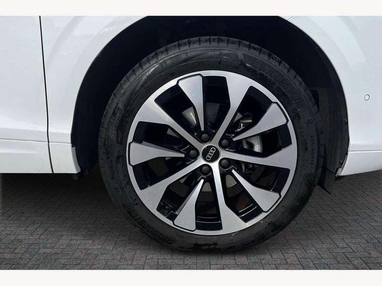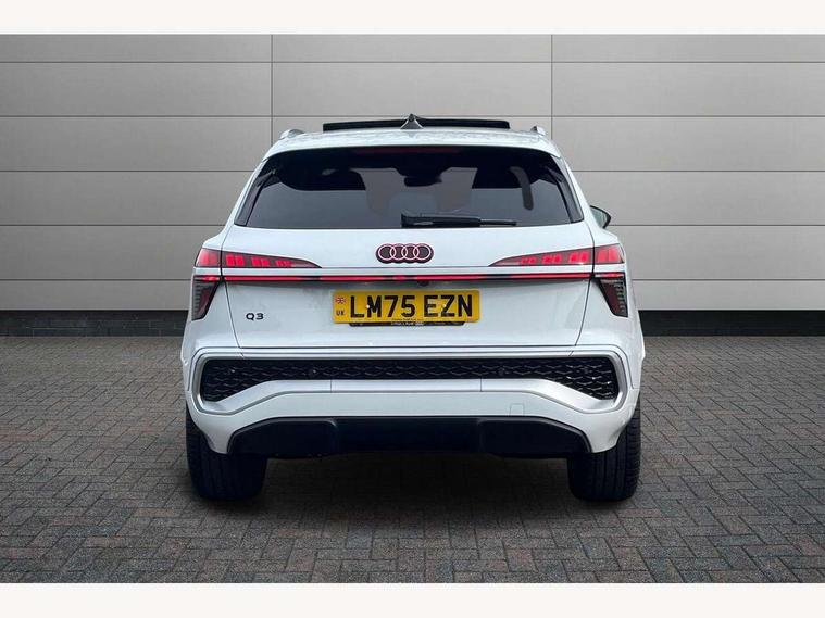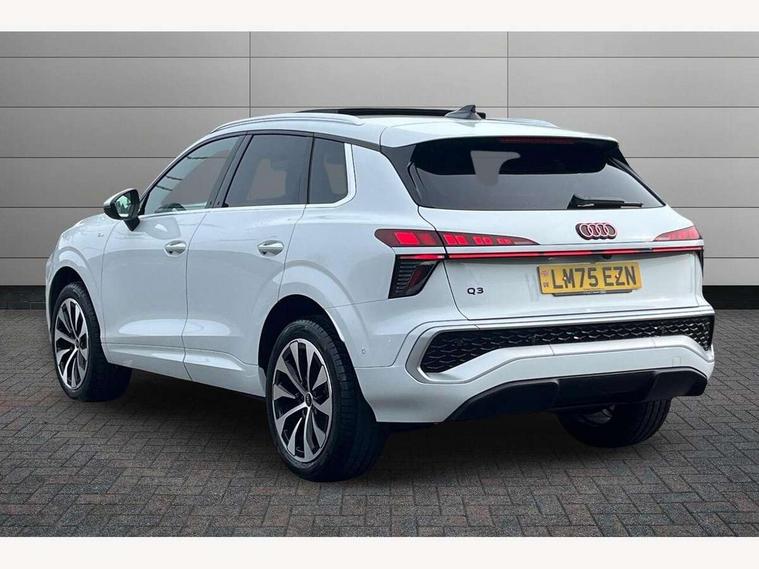 Adaptive cruise control, Audi connect emergency call and service, Audi connect remote and controls, Audi drive select (Balanced/Individual, effeciency, comfort and dynamic), Audi virtual cockpit plus - 11.9" display, Bluetooth interface, Camera based traffic sign recognition, Driver attention and fatigue monitor with driver monitoring, Front cross traffic assist, Lane departure warning with emergency assist, Panoramic curved display with 12.8" MMI navigation plus and MMI touch, Park assist plus with parking system and 360 display, Phonebox light with wireless charging, Reversing camera, Smartphone interface includes wireless Apple carplay/Android Auto, Start/stop system, Swerve assist and turn assist, Traffic sign based speed limiter, Voice control system with natural language interaction, Comfort suspension, Petrol Particulate Filter, 2 USB-C ports with charge and data functions, Audi sound system with 10 loudspeakers, subwoofer, 8 channel amplifier with 260 watts, DAB digital radio module, Acoustic glass for front door windows, Acoustic windscreen, Aluminium roof rails, Aluminium window trim, Audi Q3 lettering on the B-pillars, Auto dimming door mirrors, Auto dimming rear view mirror, Body colour door mirrors, Contrasting finish in volcano grey, Electrically folding, adjustable and heated door mirrors with integrated LED side indicators and kerb view function for passenger side, Full paint finish, Illuminated door sills with aluminium inserts at the front with S logo, LED daytime running lights, LED headlights plus with LED rear lights pro with continous light strip, illuminated Audi rings, rear, LED third brake light, Loading sill protector in stainless steel, Main beam assist, Privacy glass - dark tinted rear window, rear door and side windows, Projection light in the exterior mirrors - Projects a graphic element onto the ground, Q3 badging on the rear, Rain and light sensors, Rear side wing doors, Rear window, rear door windows and rear side windows in clear glass, Rear wiper, Sports bumpers, 3 seat bench in 2nd row, 3 spoke flat top and bottomed leather multi function sport steering wheel with gear shift paddles and "S" badging, 3-zone deluxe automatic air conditioning, 4 way lumbar support for the front seats - electric with horizontal and vertical adjustment in four directions, Black cloth headlining, Front and rear floor mats, Front and rear headrests, Front centre armrest, Heated front seats, Height and reach adjustable steering wheel, Interior storage compartment, Leather/artificial leather upholstery combination with S emblem + front sports seats, Luggage compartment lid, electrically opening and closing, Manual front seats with height adjustment, Rear seat bench plus with split folded 40:20:40, Single front passenger seat, Stainless steel pedals, Steering wheel operating unit, gloss black, Storage compartment in front centre console, Ambient lighting package pro - Q3, S line exterior styling pack - Q3, 3x3 point rear seatbelts, Convenience key with safelock, Driver and front passenger airbag with passenger airbag deactivation, Electromechanical parking brake, Electronic stabilisation control including ABS, ASR and EDL, First aid kit with warning triangle and high visibility vests, Front emergency brake assist, Hill hold assist, i - Size child seat mounting on the front passenger side and i - Size and top tether on the outer rear seats, Power operated child locks, Seatbelt monitoring, Three point automatic belts with belt tensioner and height adjustment, Tyre pressure loss indicator, Anti theft wheel bolts, Remote central locking, Thatcham approved category 1 anti theft alarm, Dark aluminium divergence inlay, Interior elements in dinamica microfibre, Interior trims in aluminium look, Tool kit and Jack,