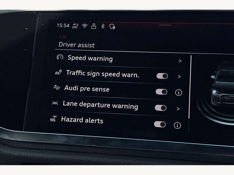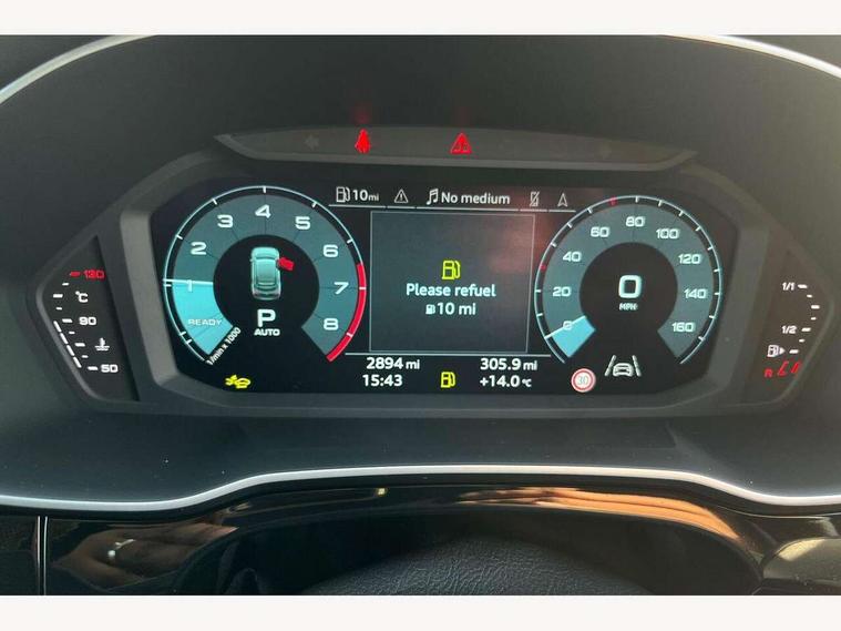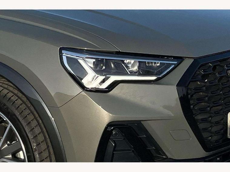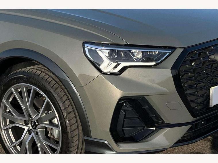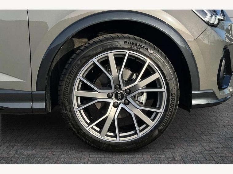 Audi connect safety and service, Audi drive select, Audi lane departure warning, Audi Virtual Cockpit - 10.25" display, Bluetooth interface, Camera based traffic sign recognition, Distraction and Fatigue warning, Legal emergency call, MMI Navigation Plus with high resolution 10.1 inch touchscreen colour display, Power operated tailgate, Progressive steering, Service interval indicator, Smartphone interface includes wireless Apple carplay/Android Auto, Start stop system with recuperation, Voice control system with natural language interaction, Sports suspension, 2 USB-C ports with charge and data functions, 6 passive loudspeakers, DAB digital radio module, Acoustic windscreen, Audi Beam uses LEDs to project the Audi logo onto the ground as you exit your Q3, Auto dimming door mirrors, Auto dimming frameless rear view mirror, Electrically folding, adjustable and heated door mirrors with integrated LED side indicators and kerb view function for passenger side, Front and rear electric windows, Front fog lights, Front underbody protection in manhattan grey paint finish, High gloss black finish B and C pillars, Honeycomb design radiator grille in matt anthracite black, LED Dynamic rear indicators, LED headlights with LED daytime running lights, LED rear lights, LED third brake light, Privacy glass dark tinted rear and rear-side windows (from B-pillar backwards), Rain and light sensors, Rear diffuser grille in grained matt black, Rear diffuser strip in matt anthracite black, Rear side wing doors, Rear underbody protection in matt black, Rear wiper, S line front and rear bumpers and side skirts in contrasting Manhattan grey paint finish, Variable front intermittent wipers, 12V socket in rear centre console, 3 seat bench in 2nd row, 40:20:40 folding with manual adjustment for 60:40 forwards/backwards position and backrest angle, Adjustable rear seat bench/backrest with centre armrest and cupholder, Black carpet mats, Black cloth headlining, Dual zone electronic climate control, Electric lumbar support, Front and rear black floor mats with contrast stitching in rock grey, Front and rear headrests, Front centre armrest, Height and reach adjustable steering wheel, Illuminated door sill trims with S logo, ISOFIX child seat mounting for front passenger with airbag deactivation and outer rear seat including top tether attachment point for outer rear seats, Luggage compartment sill protection in stainless steel, Manual front seats with height adjustment, Perforated leather gearknob, Single front passenger seat, Stainless steel pedals, Twin leather upholstery with front sport seats + S embossing, Black styling pack - Q3, Non smoking pack - Q3, 3x3 point rear seatbelts, 6 airbags - Driver, front passenger, curtain and side windows, Audi pre-sense front with pedestrain and cyclist recognition, Electrically operated child locks on rear doors, Electromechanical parking brake, Electronic stabilisation control including ABS, ASR and EDL, Front seatbelt reminder, Hill descent control, Hill hold assist, Pre sense basic, Seatbelt monitoring, Tyre pressure warning, Warning triangle and first aid kit, Anti theft wheel bolts, Immobiliser, Remote central locking, Thatcham approved category 1 anti theft alarm, Aluminium look interior elements, Detail dashboard around MMI touch colour display in glass look, black with surround in aluminium look, Leatherette door armrest, Piano black inlay,