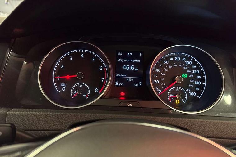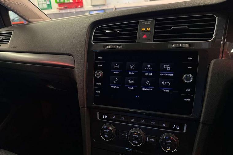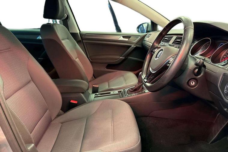 'Lights On' Reminder warning buzzer, ACC - Adaptive cruise control with front assist, forward collision warning, distance monitoring, city emergency brake and speed limiter, Bluetooth telephone and audio connection for compatible devices, Brake pad wear indicator warning light, Driver alert system, Driving Mode Selection with four preset modes - Eco, normal, sport or individual modes, Multifunction computer with visual gear change recommendation for fuel consumption, Power assisted speed sensitive electro-mechanical steering, Push tank flap, Speed limit display, Speedo, rev counter, electronic odometer, trip, service interval display, exterior temperature and fuel gauge, Stop/start system, Think blue trainer driver tips and journey analysis, Warning buzzer and light for front seatbelts unfastened, Battery regeneration during braking, XDS electronic differential lock, Composition media system, DAB Digital radio receiver, Driver Personalisation profile selection, MP3/WMA compatability, Multi device interface (MDI) via USB connection, Premium USB cable in choice of either Apple or Android smartphone compatibility, SMS Functionality, Title and cover art display, USB and SD card connectivity, Volkswagen media control, Black front air intake and radiator grille with chrome insert, Black rear diffuser, Body colour bumpers, Body colour door handles, Body colour door mirrors with integrated indicators, Dusk sensor + automatic driving lights, Electric front windows, Electric rear windows, Electrically adjustable and heated door mirrors, Fully galvanised body, Heated rear windscreen, High level 3rd brake light incorporating LED Technology, LED front fog lights with static cornering light function, Range adjustable headlights via infotainment system with LED daytime running lights, Rear fog lamp, Rear number plate lights incorporating LED technology, Rear tinted glass 65% light absorbing from B pillar backwards, Rear window aerial, Rear window wash/wipe with intermittent wipe, Reflectors in all doors, Tailgate with integrated rear roof spoiler, Windscreen wipers/ intermittent wipe + 4 position delay, 12V socket in luggage compartment, 3 rear headrests, 4 load lashing points in luggage compartment, 60/40 split folding rear seat backrest, Bag hook in luggage compartment x 2, Climate control - 2 zone electronic air conditioning with automatic air recirculation and allergy filter, Cooled glovebox, Cover for storage compartment in centre, Dust/pollen filter, Front and rear reading lights X 2, Front centre armrest with storage compartment and two rear air vents, Front seat back storage pockets, Grab handles front x 2, rear x 2 with integrated coat hooks, Height and reach adjustable steering wheel, Illuminated vanity mirrors, Instrument lighting white adjustable panel illumination, Interior light delay, Isofix preparation for 2 rear child seats, Load through provision with rear centre armrest and cupholders x2, Luggage compartment lighting, Overhead storage box, Pearl grey headlining, Storage box in luggage compartment, Storage compartment in roof console with cover, Storage compartments in centre console, Storage compartments in front doors, Storage compartments in rear doors, Stowable luggage compartment cover, Sun visors, Variable boot floor, height adjustable and removable, Convenience Pack - Golf, Mirror pack - Golf, Winter pack - Golf, 3 rear three point seatbelts, Airbags - Driver's and front passenger's, curtain airbag, Driver's knee, front side impact and passenger's airbag deactivation switch, Anti-lock Braking System (ABS) with Hydraulic Brake Assist (HBA), Automatic post collision braking system, Child locks on rear doors, Driver/Passenger optimised head restraints, Electronic parking brake with auto hold, Electronic stability control (ESC) including Electronic differential lock (EDL) and ASR (Traction control) with deactivation via infotainment system, Front ventilated disc brakes and rear disc brakes, Pre crash preventive occupant protection, Three point height adjustable front seatbelts with tensioners, Tyre pressure loss indicator, Alarm with interior protection and deactivation via infotainment system, Electronic engine immobiliser, Brushed dark silver decorative inserts in dash and door panels, Chrome plated air vent surround, Chrome-plated light switch surround, Polar night black decorative inserts in centre console, Steel space saver spare wheel,