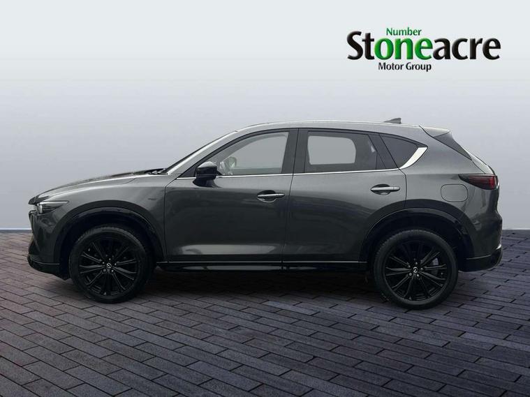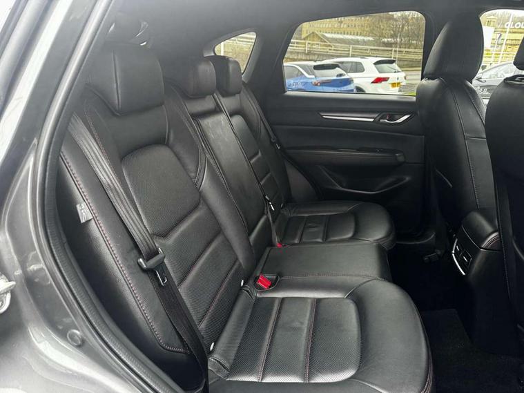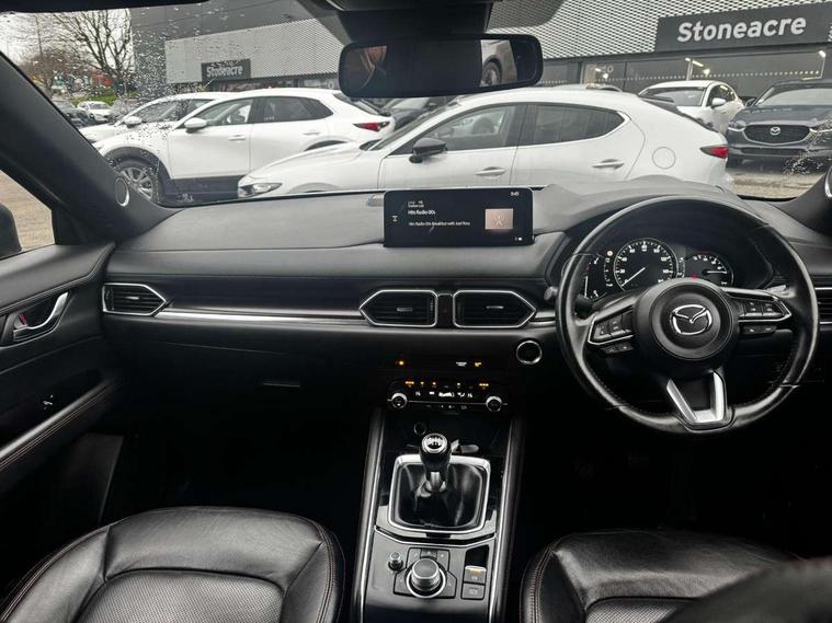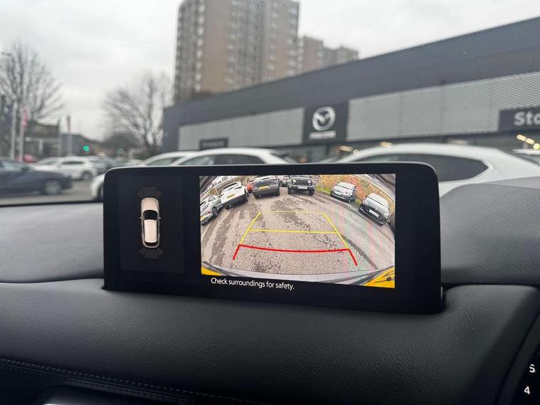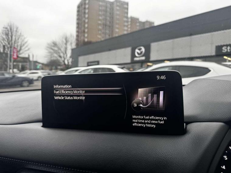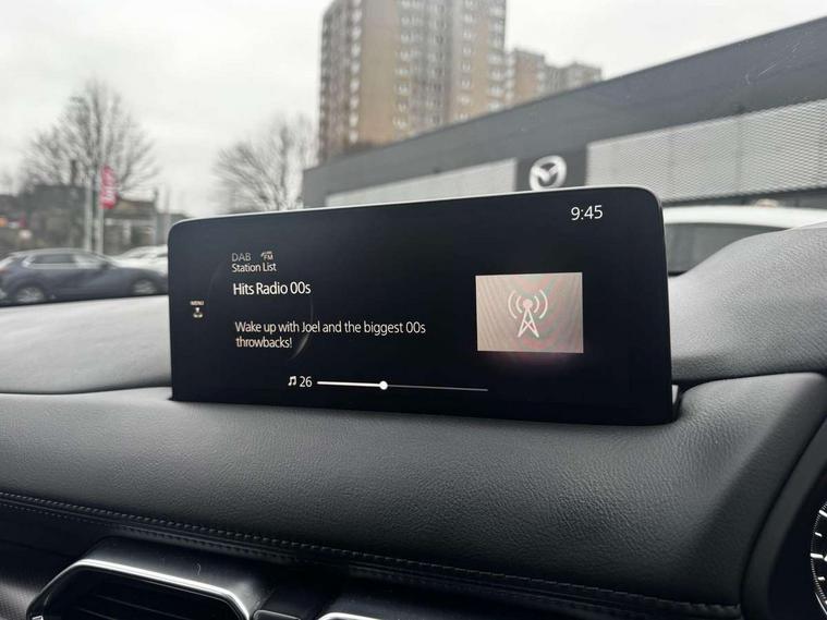 10.25" display with Mazda Connect infotainment, 7" colour TFT display, Advanced blind spot monitoring, Bluetooth connectivity with voice control, Collision prevention assist, Connected services, Cruising Traffic Support, Electric power steering, Emergency stop signalling system, Engine start/stop button, Forward collision warning, Front and rear parking sensors, Integrated navigation system, Intelligent speed assist, Lane departure warning system, Lane keep assist, Power liftgate, Qi wireless phone charging, Radar cruise control, Rear cross traffic alert, Reversing camera, Service indicator, Traffic sign recognition (TSR), Trip computer, Windscreen projected colour active driving display (HUD) with memory, Wireless apple car play/android Auto, Cylinder Deactivation, i-stop, AM/FM radio, Bluetooth audio streaming, Bose premium sound system with 10 speakers, DAB Digital radio, Multimedia Commander including separate volume dial, Steering wheel mounted audio controls, Adaptive front lighting system, Auto dimming rear view mirror, Automatic headlights, Black honeycomb door trim decoration panel, Black honeycomb interior decoration panel, Body colour roof spoiler, Coming/leaving home lighting function, Door mirror integrated indicators, Dual large chrome tailpipes, Dusk sensitive headlamps, Electric front/rear windows with one touch auto up/down, Front grille in gloss black finish, Front grille in gloss black with red accent + gloss black signature wing, Gloss black B and C pillars garnish, Gloss black door mirrors, Gloss black front and rear lower bumper mouldings, Gloss black tire arch and side mouldings, High beam assist, Intermittent rear wash/wipe, LED auto levelling, LED daytime running lights, LED front fog lights, LED Headlights, LED third brake light, Power folding and heated door mirrors, Power tilt/slide sunroof, Privacy glass (rear side windows only), Rain sensing front wipers, Rear side wing doors, Red front grille accent, Red stitching and accents on door trim, knee pad, console lid, steering wheel, shift boots, Scuff plates, Shark fin antenna, Signature LED rear combination lights, Variable intermittent front wash/wipe, Windscreen wiper de-icer, 12v electrical power outlet, 3 seat bench in 2nd row, 3 stage heated front seats, 40:20:40 Karakuri fold-flat seat system, 6 way electric adjustable passenger seat, 8 way electric driver seat with lumbar support + memory, Black roof lining, Cargo room flat floor board with waterproof undertray, Driver seat power slide, recline and height adjustment, Driver, Front passenger and two rear grab handles with coat hooks, Driver/passenger front seatback pockets, Driver/passenger sunvisors + illuminated vanity mirrors (drivers with ticket holder), Dual zone climate control, Folding centre armrest with 2 cup holders, Front and rear door pockets, Front centre storage with two cupholders, Front passenger seat power slide, recline and height adjustment, Gear shift indicator, Heated steering wheel, Humidity sensor, Illuminated glovebox, Interior dome light with integral spotlight, ISOFIX child seat anchorage points attached on outer rear seats, Karakuri tonneau cover, Leather upholstery, Leather wrapped steering wheel and gear knob, Luggage compartment LED lighting, Luggage compartment power outlet, Rear air vents, Rear headrests, Rear seat recline, Roof mounted sunglasses holder, Single front passenger seat, Three height adjustable head restraints, Tilt/height adjustable steering wheel, USB Connectivity (2x front Type-C, 2x rear Type-B), White interior LED illumination lighting, 3 point front seatbelts with pre-tensioners, 3 rear 3 point seatbelts, ABS, Advanced Smart City Brake Support - SCBS, Child locks on rear doors, Driver and front passenger side airbags, DSTC-Dynamic Stability and Traction Control, Dual front airbags, Electronic brake force distribution, Electronic parking brake with auto hold, ESP, Front and rear curtain airbags, Front passenger airbag deactivation, G-Vectoring control, Hill hold assist, Seatbelt reminder front and rear, Single stage passenger airbags, Smart brake support with forward obstruction warning, Tyre pressure monitoring system, Automatic door locking when moving off, Deadlock, Immobiliser, Power door locks, Remote central locking, Smart keyless entry, Thatcham Cat.1 alarm, 19" Black alloy wheels, Tyre repair kit,
