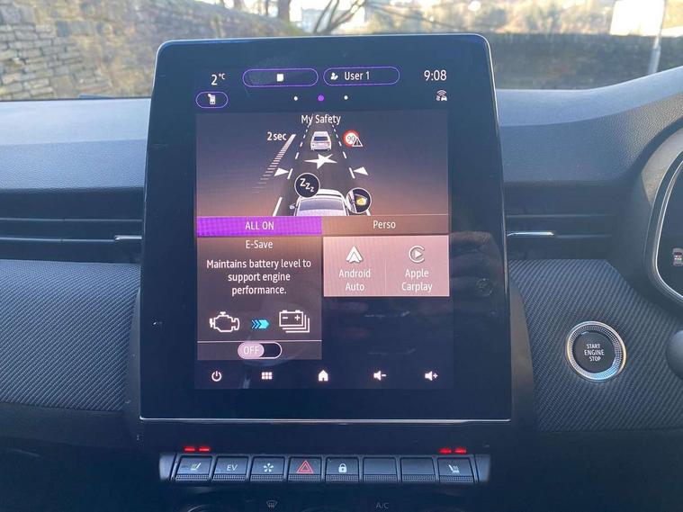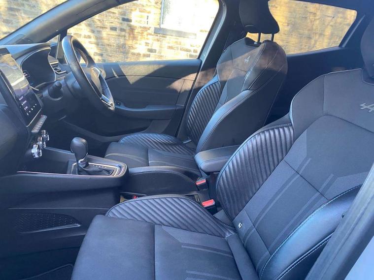 10" customisable digital driver display, Active cruise control with stop and go + speed limiter, Apple car play/Android Auto, Blind spot warning, Driver attention warning, Easy link 9.3" touchscreen with built in navigation + Wifi smartphone integration plus, Eco mode driving function, Emergency call system, Front park assist, Front parking sensors, Lane departure prevention, Lane departure warning system, Lane keep assist, Multisense 3 driving modes including ambient lighting, Over speed prevention, PAS, Rear cross traffic alert, Rear park assist, Rear parking sensors, Rear view camera, Saftey shield [button for personalisation configuration of key ADAS features], Start/stop system, Traffic sign recognition, Wireless phone charger, 2 USB ports, Arkamys speakers - x6 inc. 2 boomer, 2 tweeter and 2 bicone, Bluetooth, 1x jack, 1x aux socket, DAB/FM Radio, Automatic headlights, Automatic high / low beam, Automatic windscreen wipers, Black auto folding wing mirrors with defrosting and temperature gauge and LED indicator, Body colour bumpers, Body colour door handles, Electric rear windows, Electrically adjustable door mirrors, Electrochromatic frameless rear view mirror with light and rain sensor, Exhaust pipe, Exterior rear hidden door handles, Front and rear LED roof light x 2, Front fog lights, Full LED front and rear headlamps integrating daytime running lights at the front and rear, Heated rear windscreen, LED rear signature lighting, LED third brake light, Matte shadow grey F1 blade, One touch electric front windows, Rear brake light, Rear side wing doors, Rear wiper, Shadow grey insert on lower side doors, Shadow grey side window surrounds, Shadow grey upper grille, Shark fin antenna, Tinted rear windows, 3 rear height adjustable headrests, 3 seat bench in 2nd row, 60/40 split and fixed base rear seat bench, Aluminium pedals, Automatic air conditioning, Black armrests in door panel, Centre console armrest, Fabric seat with synthetic leather detailing upholstery, Floating console with storage, Heated front seats, Heated steering wheel, Height adjustable front headrests, Isofix system on outer rear seats, Mechanical height adjustable front seats, Power supply jack, Single front passenger seat, Sun visor without light, Top grain synthetic leather steering wheel with blue stitching, 3 point seatbelts on all rear seats, ABS, Automatic emergency braking system with emergency brake assist, Child locks on rear doors, Curtain airbags, Distance warning alert, Driver and passenger airbags, Electronic brake force distribution, Electronic parking brake with auto hold, ESC (Electronic Stability Control), Front passenger airbag deactivation, Front side airbags, Height adjustable passenger seatbelt, Hill start assist, Seatbelt reminder, Tyre pressure monitor, 2x Black keys, Hands free key card with push button, start and stop function, RAID (Renault Anti-Intruder Device) automatic door locking, Superlocking, Dark interior roof trim, 17" Esprit alpine diamond cut alloy wheels,