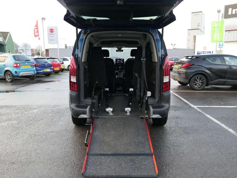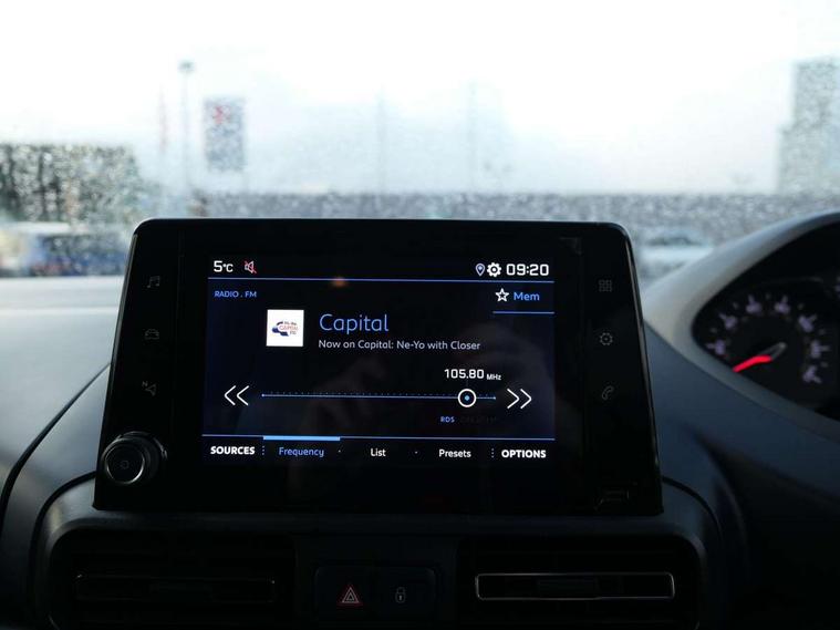 8" touch screen, Apple car play/Android Auto, Audible lights on warning, Bluetooth telephone facility, Compact steering wheel, Head up Display, Head up instrument panel, Multi function trip computer, Programmable cruise control and speed limiter, Voice control system, 6 speakers, DAB Radio (Digital Audio Broadcasting), MP3 connection, Steering wheel mounted controls, USB socket, USB socket at the back, Aluminium roof rails, Automatic hazard light activation upon heavy brake application, Body colour door handles, Body colour door mirrors, Body coloured front bumper, Contrasting wheel arch trim, Electric front/rear windows, Electric heated door mirrors, Front fog lights, Front windscreen wiper with multispeed setting, Halogen headlights, Headlights left on audible warning, LED daytime running lights, LED rear signature claw effect lights, Radiator grille in 3D stamped effect and chrome surround, Rear windscreen wiper triggered automatically in reverse gear, Scuff plates, Tailgate with heated rear windscreen and wiper blade, Twin sliding side doors, 1/3 to 2/3 split folding rear seats, 12V socket, 2 Foldable passenger seat in 3rd row with under seat storage and elbow rest, 2 position parcel shelf, 3 rear height adjustable headrests, Air vents in 2nd row with USB socket, Door sill protectors, Driver and passenger dashboard mounted cup holders, Driver's armrest, Drivers underseat storage, Electric power steering with reach and rake adjustable steering column, Fixing rings x 4 in load area, Front adjustable head restraints, Front centre console storage box, Front interior light with 2 reading spotlights and rear interior light with timer, Full width overhead storage shelf, Gear shift indicator, Height adjustable drivers seat with lumbar support, High console between front seats with storage compartment, Isofix child seat fittings x 3 in the second row, Leather steering wheel, Puma cloth upholstery, Tray tables at the back of the front seats, Upper glove compartment, Safety pack - Rifter, Visibility pack - Rifter, 3 point seatbelts on all rear seats, ABS (Anti-lock Braking System) with EBD (Electronic Brakeforce Distribution) and EBA (Emergency Braking Assistance), Adaptive driver and front passenger airbags with passenger airbag deactivation function, Child locking functionality on rear doors, Driver/front passenger side airbags, Electronic parking brake, ESP (Electronic Stability Program) + Hill Start Assist, Front and rear curtain airbags, Front and rear seats seatbelt unfastened on the move audible and visual alert, Front three point retractable seatbelts with force limiters, Tyre pressure sensor, Ventilated front and rear disc brakes, Auto door lock when driving, Deadlocks, Electronic immobiliser, Remote central locking, Picasso blue interior ambiance, 16" Taranaki alloy wheels, Steel spare wheel,