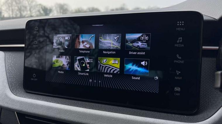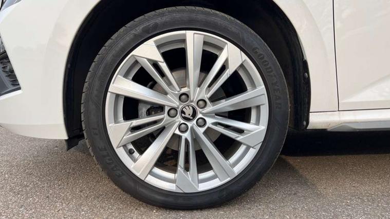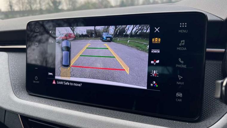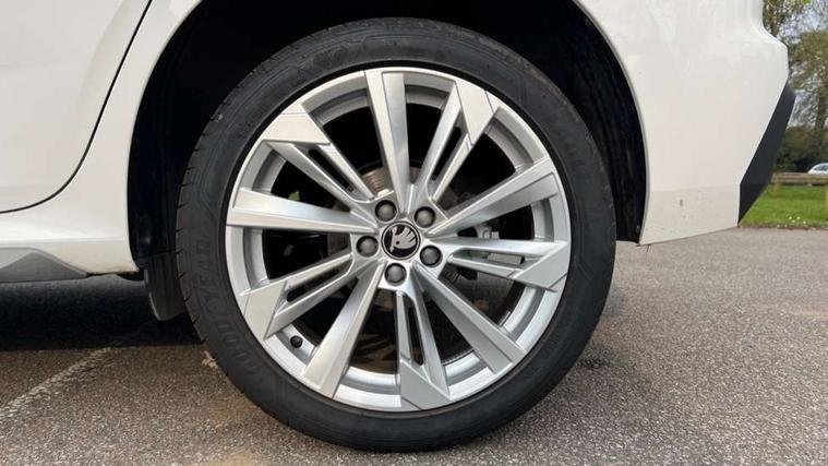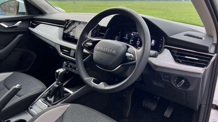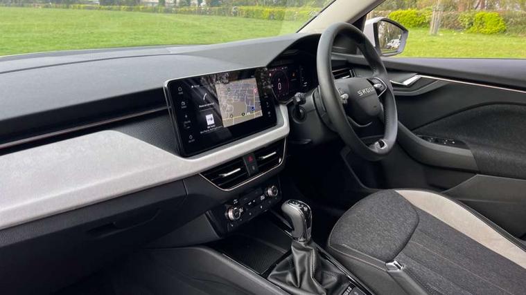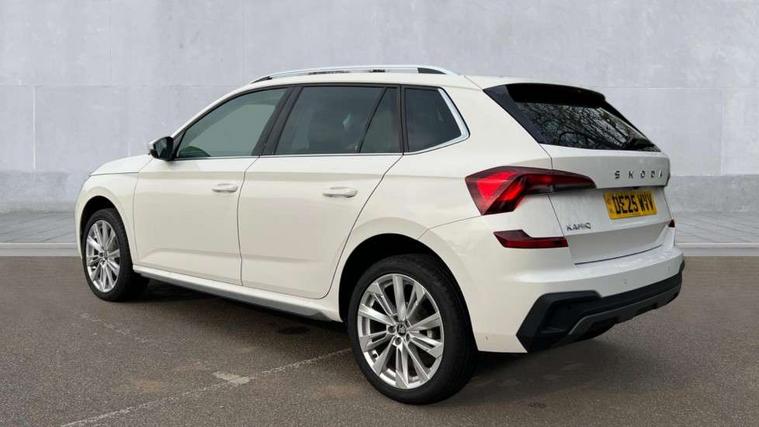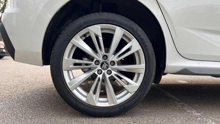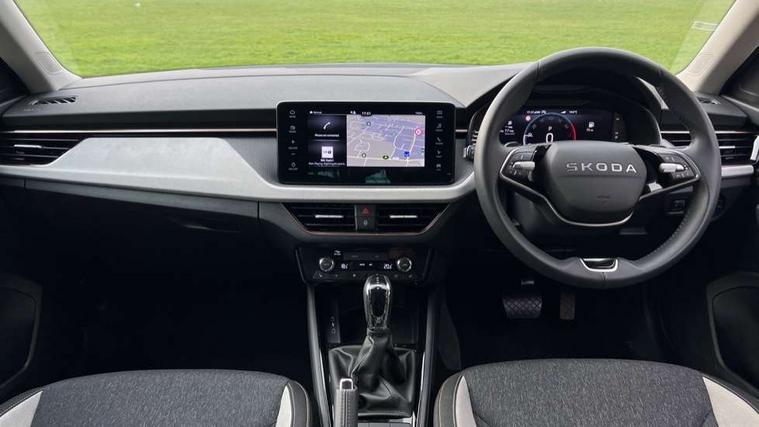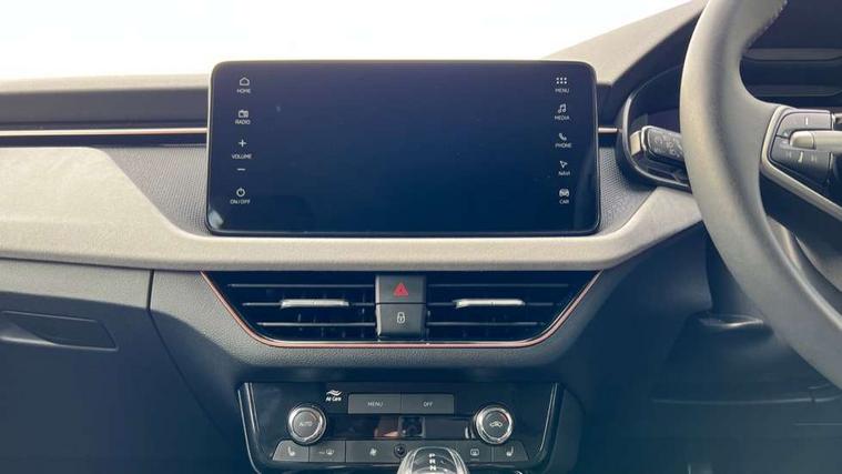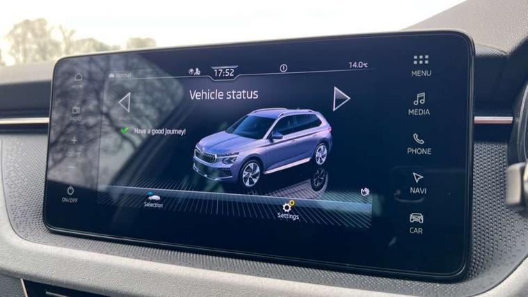 Advanced driver attention and drowsiness monitor, Bluetooth system, E-call, Front assist system, PAS, Rear parking sensors, Rear view camera, Service indicator, Speed limiter, Traffic sign recognition, Virtual cockpit with 10.25" display, Voice control system, Wireless smartlink, 4 USB C ports, 8 Speakers, 9.2" Skoda navigation display, DAB Digital radio, Auto dimming rear view mirror, Automatic headlight control with coming home and leaving home feature, Body colour bumpers, Body colour door mirrors and handles, Chrome grille surround, Chrome roof rails with chrome window surround, Front and rear electric windows, Heated rear window, LED daytime running lights, LED high beam, LED low beam, LED third brake light, Light sensors, Privacy glass, Rear side wing doors, Rear wiper, Ticket holder inside windscreen, 12V socket in luggage compartment, 3 seat bench in 2nd row, Accent black door inserts, Ambient lighting in white/red, Cargo elements, Chrome inner door handles, Copper hotstamping, Driver and passenger sun visors with vanity mirror, Dual zone climate control, Front and rear roof lights, Front centre armrest, Front head restraints, Glove compartment with illumination, Height adjustable driver seat, Height adjustable front passenger seat, Ice scraper, Inner circulation control with pollen filter, ISOFIX on front passenger seat, Isofix preparation for back seats, Leather gearknob and handbrake lever, Lodge cloth upholstery, Manual lumbar support for front seats, Net package and top tether hooks in boot space, Net under rear shelf, Overhead glasses storage compartment, Pocket on the back of both front seats include mobile phone pockets, Rake/reach adjustable steering wheel, Reading lights, Rear centre armrests, Single front passenger seat, Suedia grey decor inserts, Textile floor mats, Third rear headrest, Top tether for front passenger seat, Umbrella in driver's door, Convenience pack - Kamiq, 3x3 point rear seatbelts, Airbags - driver and front passenger, Disc brakes, ESP, Extended and predictive pedestrian/cyclist protection, Front passenger airbag deactivation switch, Front side airbags with curtain airbags, Hill hold control, Manual leather parking brake, Manual rear child locks, One tone horn, Seatbelt reminder for driver an co-driver, Traction control, Tyre pressure monitor, Anti-theft alarm system with interior monitoring, backup horn, towing protection and remote central locking with SAFE system, Anti-theft wheel bolts, Electronic engine immobilizer,