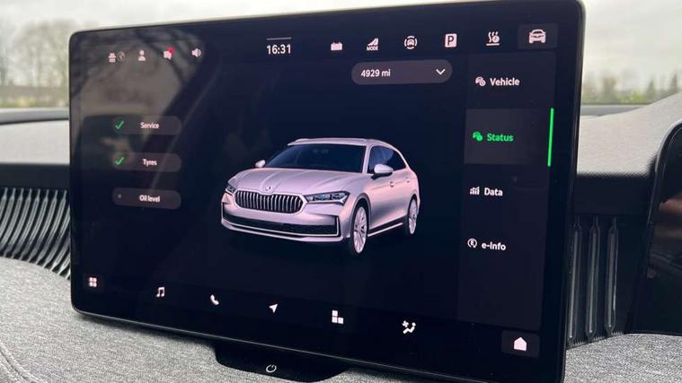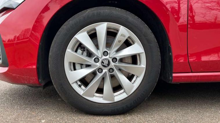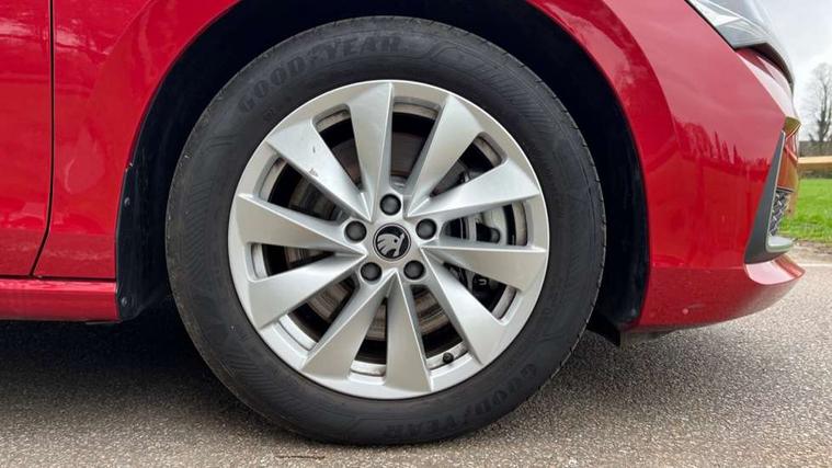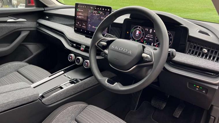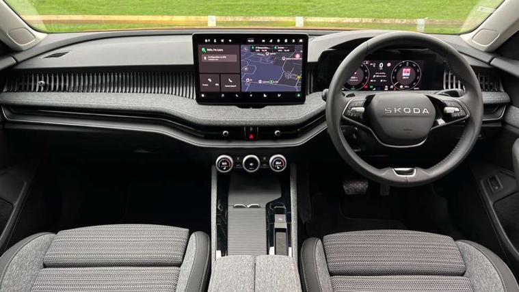 13" touchscreen display with satellite navigation, 4x USB-C ports (2x in front centre console and 2x in rear) (45W), Adaptive cruise control with speed assist, lane assist plus and traffic tram assist, Blind spot detection with door exit warning, Bluetooth system, CareConnect and Emergency Call, ChatGPT functionality, Drive mode selection, Driver fatigue sensor, Front assist with extended predictive pedestrian protection, Front cross traffic assist, PAS, Quick start all heating software functionality, Stop/start engine system, Traffic sign recognition, Turn assist with evasive assistance, Virtual Cockpit - 10.25" digital display, Voice control system, Washer for rear camera, Wireless charging for one smartphone (15W) with cooling function, Wireless smartlink apple carplay, SmartLink+ android auto, Mode 3 charging cable, 8 Speakers, DAB Digital radio, Display cleaner, FM radio connection, Web radio connection, Acoustic side windows and interior noise suppression, Backdrop lighting, Body colour door handles, Body coloured door mirrors, Chrome roof rails, Chrome window surround, Dark chrome grille surround, Frameless auto-dimming rear view mirror with USB-C, Ice scraper in fuel tank cap, LED 3rd brake light, Light assist with High beam control, Light assistant (coming/leaving home/tunnel light), Privacy glass, Rear fog light (x1), Rear roof spoiler, Rear side wing doors, Rear windscreen wiper, Unique dark chrome design logo on alloy wheels, Windscreen wipers with rain sensor, 12V socket 1x centre console 1x boot, 2x cargo elements in boot, 2x light in boot, 3 seat bench in 2nd row, 4x foldable bag hooks in boot, 60:40 Split folding rear seats, Bottle holders in the front doors 1.5 litre bottle and rear 1.5 litre bottle, Cup holder in front with easy open mat, Front armrest with storage box, Heated front seats, Height adjustable front and rear head restraints, Illuminated glovebox, Interior lights with control switches, Isofix child seat fittings in outer rear and front passenger seats, LED front and rear reading lights, Single front passenger seat, Skoda lettering on steering wheel, Standard front seats, Storage compartment with cover, Storage pockets on back of front seats, Sun visors with illuminated vanity mirrors, Ticket holder on A Pillar, Tri zone climate control, Umbrella in driver's door, 3 rear seatbelts, 8 Airbags - Front driver and passenger, front side driver and passenger, centre, curtain front and rear, drivers knee, Crew protect assist, Driver and passenger seatbelts with warning light, Electronic parking brake, ESC including ABS, EBV, MSR, ASR, EDS, HBA, DSR, RBS, CBC, multi-collision brake (MKB) and Auto hold, Hill hold assist, Power operated child lock in rear doors, Alarm with interior monitoring tilt sensor and back up horn, Backrest remote release from trunk, Electronic engine immobiliser, Keyless start/stop, Remote central locking with SAFE system, Third key, Decorative front door sills, Tyre repair kit,