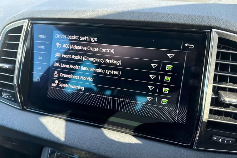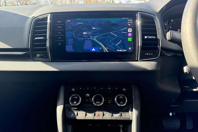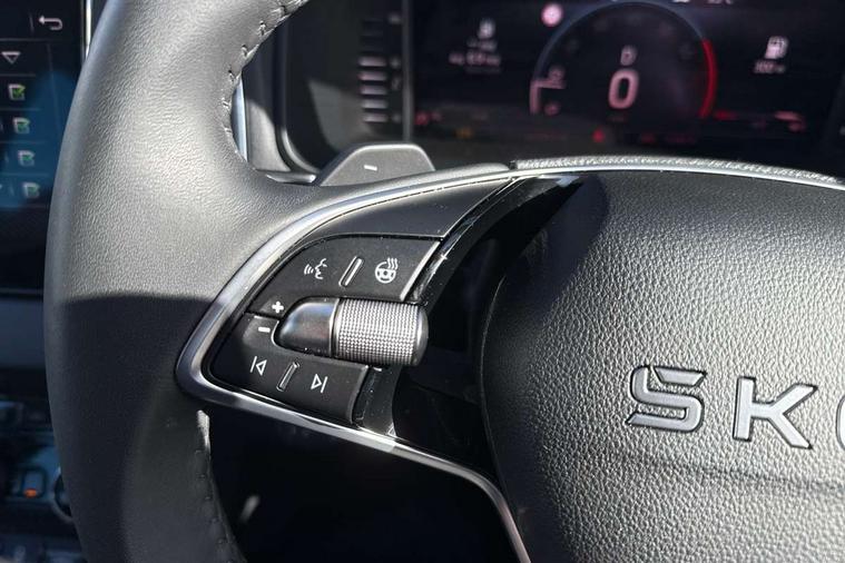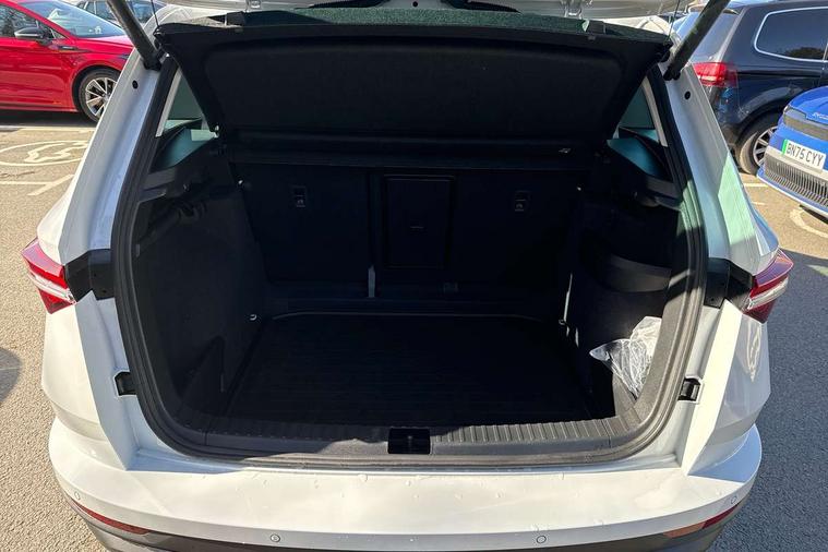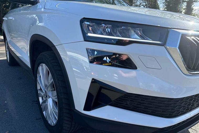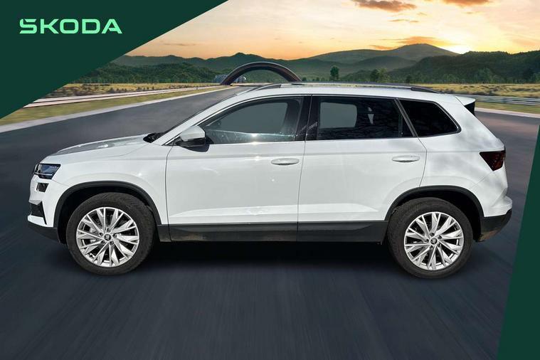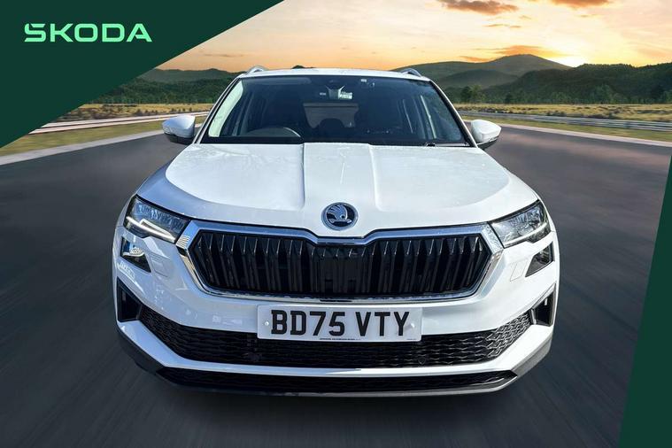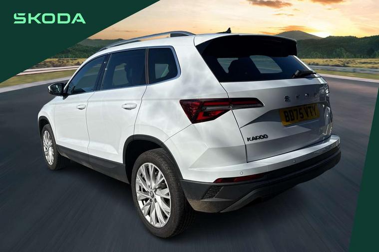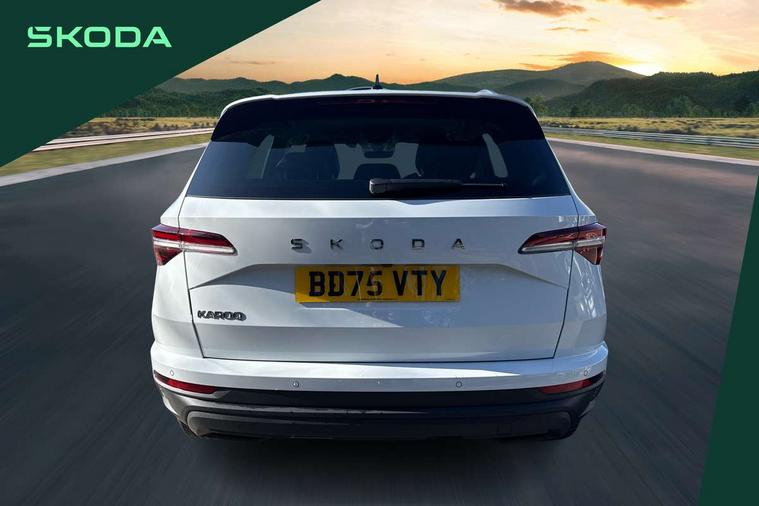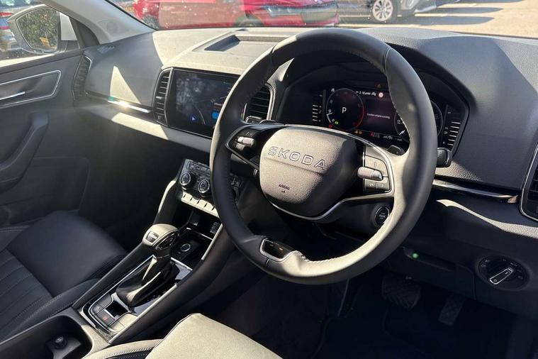 Advanced driver attention and drowsiness monitor, Drive Mode Selection including ECO function, Electro-mechanical PAS, Emergency services call system, Outside temperature gauge, Sensor for driver assistance systems, Service interval indicator, SmartLink wireless for Apple and wired for Android, Start/stop system with regenerative braking, Traffic sign recognition, USB C Port x 2 in front centre console, Virtual Cockpit - 10.25" digital display, Virtual pedal with electrically operated boot door, Wireless smartphone charging, DAB radio with Bluetooth, USB connection, Acoustic glass, Aero front windscreen wipers with intermittent function, Auto dimming rear view mirror with light and rain sensors, Black electric window control buttons, Body colour door mirrors and handles, Electric front and rear windows with child proof lock, Extended rear roof spoiler, Heated rear windscreen, LED daytime running lights, LED rear lights with high functionality welcome effect and dynamic indicators, Light assistant (coming/leaving home/tunnel light), Plastic scuff plates in door apertures, Privacy glass, Rear side wing doors, Rear window wiper with washer system and intermittent control, Safety reflectors on front doors, Third brake light, Unique dark chrome design logo on alloy wheels, 1.5 litre bottle holders in driver and front passenger door panels, 12V socket in boot, 12v socket in front centre armrest with storage compartment and rear air vents, 2 spoke leather heated multifunction steering wheel with DSG paddles, 2 x Tablet holder, 3 rear height adjustable headrests, 3 seat bench in 2nd row, 4 foldable roof handles with rear coat hooks, Black floor carpet, Cargo elements in boot, Chrome inner door handles, Decorative door sills with KAROQ badging, Foldable hooks in the boot, Front head restraints, Height adjustable front three point seats belts with tensioners, Height/reach adjust steering wheel, Ice scraper, Illuminated glovebox, Illuminated luggage compartment, Interior noise suppression, Isofix child seat preparation for front passenger seat, Isofix child seat preparation outer rear, Manual lumbar support for front seats, Pearl grey interior ceiling, Pen holder, Pollen filter, Rear boot cover, Rear package tray, Rear reading lights, Rubbish bin door, Safety vest holder, Single front passenger seat, Skoda lettering on steering wheel, Storage box in upper central dashboard closed, Sunvisors with illuminated vanity mirrors, Textile floor mats, Ticket holder, Columbus pack - Karoq, Design Pack - Karoq, Non Smokers pack, Parking pack - Karoq, Automatic door unlocking in case of crash, Automatic fuel cut off in case of crash, Driver airbag, Electronic parking brake with auto hold function, Emergency rear braking signal, ESC (incl. ABS+MSR+ASR+EDS+HBA+DSR+RBS+MKB), Front side airbags, Head airbags, Hill hold control, Knee airbags, Passenger airbag with switch-off function, Pedestrian monitor, Power operated child safety locks, Seatbelt reminder signalisation and pretensioner for all seats, Three point seatbelts rear, Two tone horn, Tyre pressure monitor, Alarm with interior monitoring, back up horn and tilt sensor with safe function, Electronic engine immobiliser, Keyless entry and start/stop, Remote central locking with 2 remote folding keys, Black centre console, Chrome framed air vents, Satin black dashboard, Anti-theft wheel bolts protection, Breakdown and tool kit,
