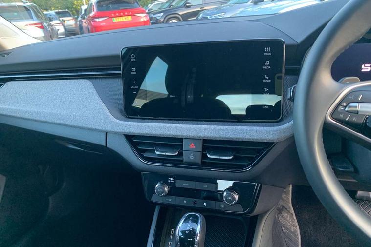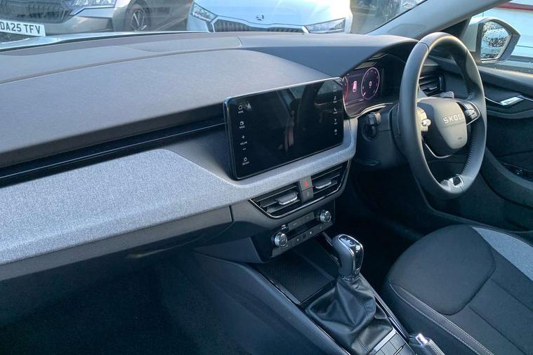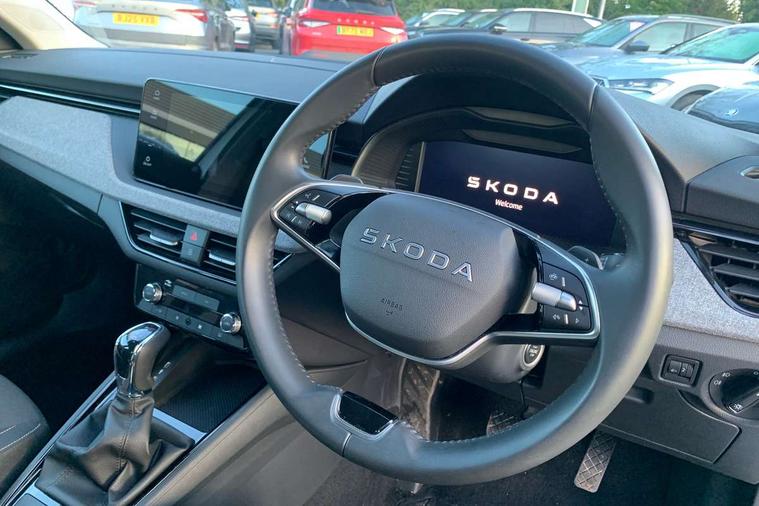 Advanced driver attention and drowsiness monitor, Bluetooth, e-Call (emergency call), Front assist system, PAS, Rear parking sensors, Rear view camera, Speed limiter, Tailgate, Traffic sign recognition, Virtual Cockpit - 10.25" digital display, Voice control system, Wireless smartlink, 4 USB C ports, 8 Speakers, 9.2" Skoda navigation display, DAB radio, Auto dimming rear view mirror, Automatic headlamp activation with Coming home and Leaving home feature, Automatic high/low beam, Body colour bumpers, Body colour door mirrors and handles, Chrome moulding around grille, Front and rear electric windows, Full LED headlights, Heated rear window, LED 3rd brake light, LED brake lights, LED daytime running lights, LED front turning lights, LED high beam, LED low beam, LED taillights, Rear LED fog light, Rear side wing doors, Rear wiper, Tinted windows, Unique dark chrome design logo on alloy wheels, 12V socket in luggage compartment, 3 seat bench in 2nd row, Black / Grey armrest stitching, Black hotstamping, Cargo elements, Chrome inner door handles, Door inserts in satin black, Driver and passenger sun visors with vanity mirror, Dual zone climate control, Front and rear roof lights, Front centre armrest, Front head restraints, Glasses storage in roof liner, Height adjustable driver seat, Height adjustable passenger seat, Ice scraper, Illuminated glove compartment, Inner circulation control with pollen filter, ISOFIX for front passenger seat, Isofix preparation for back seats, Leather gearknob and handbrake lever, Loft cloth upholstery, Luggage net under rear parcel shelf, Manual lumbar support for front seats, Net package and top tether hooks in boot space, Pearl grey ceiling, Pocket on the back of both front seats, incl. mobile phone pockets, Single front passenger seat, Skoda lettering on steering wheel, Textile floor mats, Third rear headrest, Ticket holder, Top tether for front passenger seat, Umbrella in driver's door, 3x3 point rear seatbelts, ABS, Child locks, Curtain airbags and front side airbags, Disc brakes, Driver and front passenger airbags, ESP, Hill hold control, Manual leather parking brake, One tone horn, Passenger airbag switch off function, Seatbelt reminder for driver and front passenger, Tyre pressure monitoring system, Anti theft alarm system with interior monitoring, backup horn and towing protection, Anti-theft wheel bolts, Remote central locking with 2 remote folding keys, SAFE function for remote central locking, Decord pad, door inserts Kota uni,