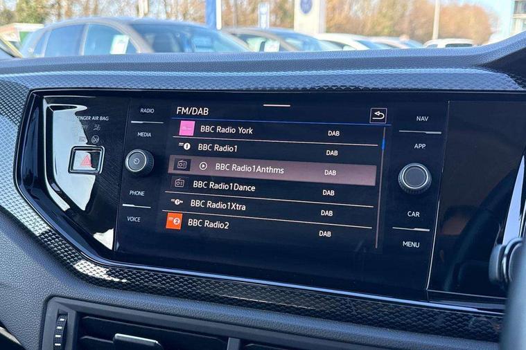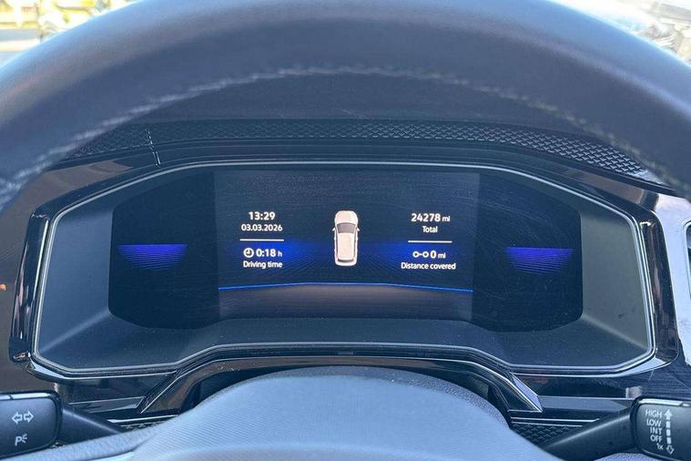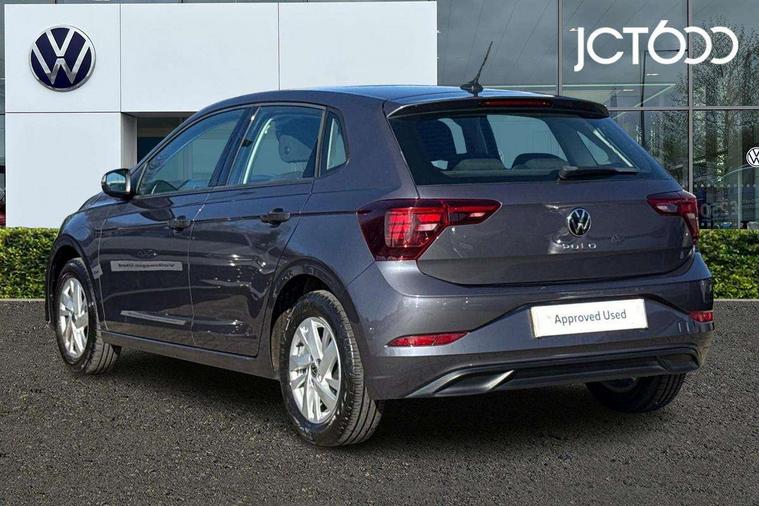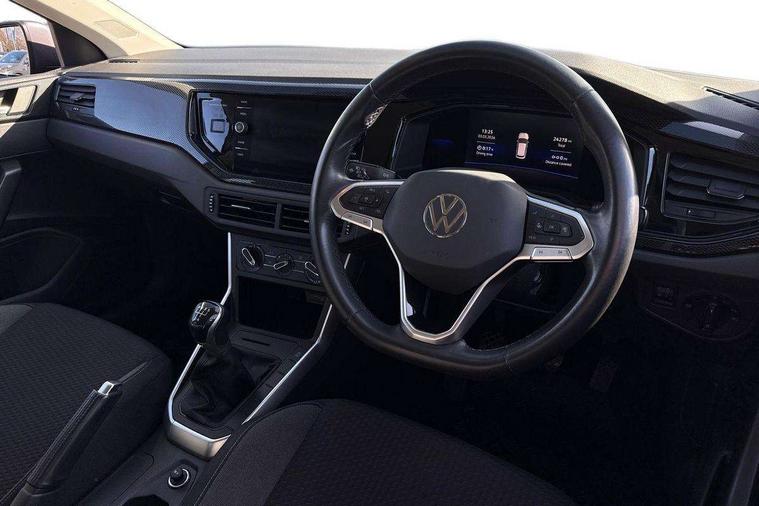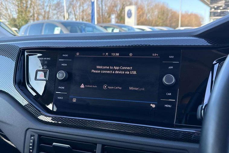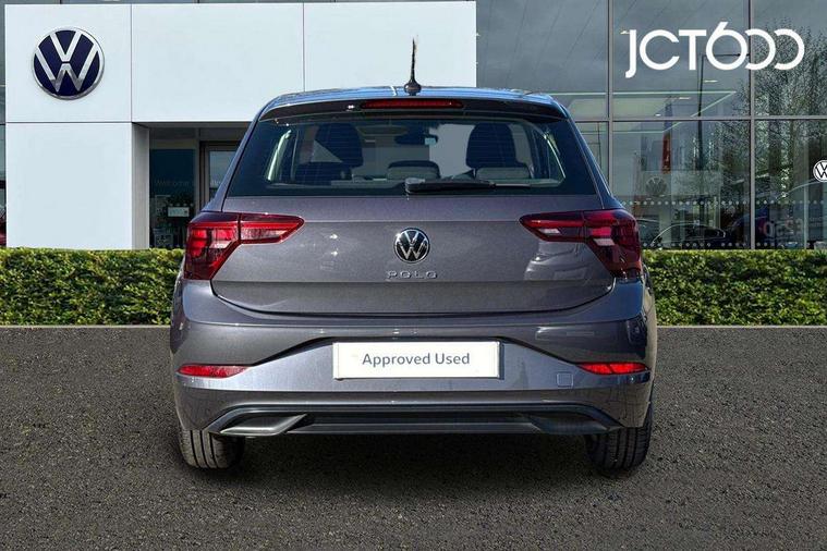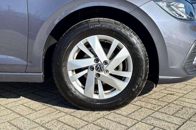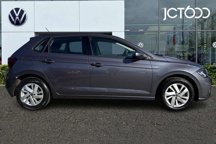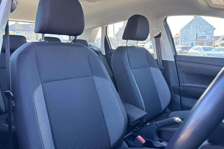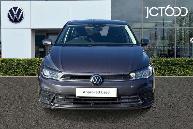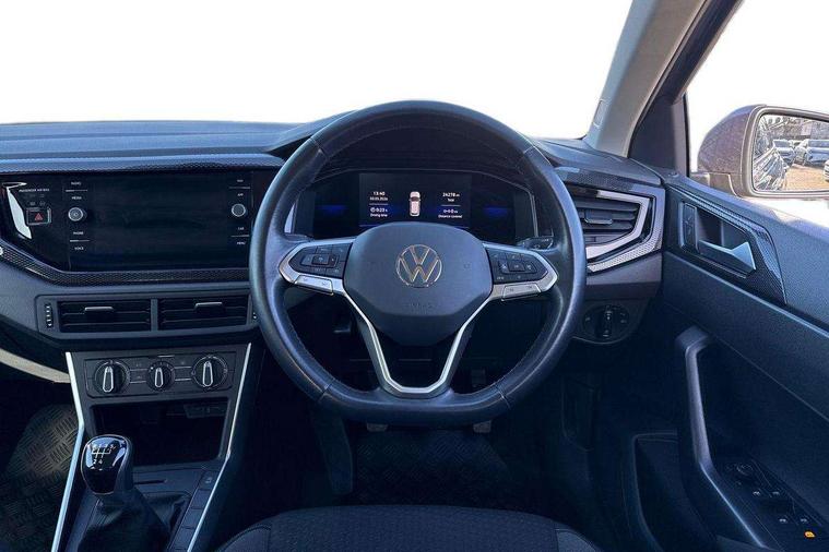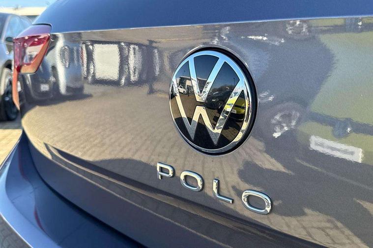 Adaptive cruise control without follow-to-stop and speed limiter, Bluetooth mobile phone interface, Driver alert system, Emergency call service, Front assist system, Power assisted speed sensitive steering, Preparation for We connect and We connect plus, Speedo and rev counter, electronic odometer, trip, service interval display and fuel gauge, Standard rear axle, Travel Assist - Lane keeping system and traffic jam assist, Travel assist including emergency assist, Trip computer, Warning signal and warning light for front and rear seatbelts not fastened, Washer fluid level indicator, Wireless app connect, Front wheel drive, Rear shock absorpion, Start-stop system with battery regeneration (recuperation - energy recovery during braking), DAB Digital radio, Diversity antenna for FM reception, Automatic dimming interior rear view mirror, Body colour bumpers, Body colour door handles, Body colour door mirrors, Electric front windows, Heat insulating darkened glass in side and rear windows, Heat insulating glass windscreen, Power folding adjustable/heated exterior mirrors and front passenger exterior mirror lowering function, Rain sensor, Rear electric windows, Rear fog light, Rear side wing doors, Rear windscreen washer and wiper with interval delay, Third brake light, 12V power socket in centre console, 2 front and 2 rear reading lights, 2 USB-C ports in the front, 2 USB-C charging sockets on the center console in the rear, 3 rear head restraints, 60/40 split folding rear seat and rear seat bench not split, Ceramique headliner, Chrome plated radiator grille inserts, air vent surrounds and light switch surrounds, Door and side trim panel, Driver and front passenger seat height adjustment, Driver/passenger sunvisors with illuminated vanity mirrors, Front centre armrest, Front seat backrest storage pockets, Front standard seats, Handbrake lever handle in leather, Hartley/Thomas cloth upholstery, Isofix child seat preparation easy-fit (for two outer rear seats, and front passenger seat) compatible with I-size, Leather trimmed gear knob, Luggage compartment cover, Luggage compartment floor, Luggage compartment lighting, Multifunction steering wheel, Single front passenger seat, Standard pedal cluster, Light and vision pack - Polo, 3 point height adj front seatbelts + pretensioners, 3x3 point rear seatbelts, ABS, Driver and front passenger airbag with front passenger airbag deactivation, Drivers and front passengers safety optimised head restraints, ESC (Electronic stability control) + EDL (Electronic Differntial lock) and ASR (Traction control), Extended and predictive pedestrian/ cyclist protection, Front curtain and side airbags with center airbag, Front disc brakes, Hill hold control, Manual child lock in rear doors, Rear drum brakes, Single tone horn, Tyre pressure loss indicator, Alarm with interior protection, Anti-theft alarm system with interior monitoring, backup horn, and towing protection, Anti-theft wheel bolts, Electronic engine immobiliser, Lava stone black gloss/matt decorative inserts in dash and front door panels, Low rolling resistance tyres,