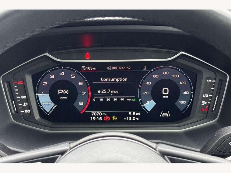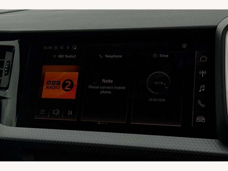 10.25" Digital instrument cluster display classis style instrument dials + speed, odometer, time, outside temperature, telephone menu + fuel level warning, Audi drive select - power steering assistance + engine + gear shift 3 preset modes (auto, dynamic, efficiency and an Individual mode), Audi smartphone interface with connect compatible smartphone via USB directly MMI display + Nav, music, third party apps controlled via MMI controller, Automatic start/stop system, Bluetooth interface, Cruise control, Driver's information system, Electromechanical power steering, Emergency e-call, Lane departure warning system, Rear parking sensor, Service interval indicator, Speed limiter, Voice control system, Washer fluid level indicator, Dynamic suspension, 2 x USB type C connection points, 6 passive loudspeakers, DAB Digital radio, MMI radio plus with 10.1" colour MMI display screen and MMI touch, Auto dimming rear view mirror, Body coloured bumpers, Body coloured door mirrors, Electric front and rear windows, Electrically adjustable, heated, folding door mirrors with integrated LED side indicator, Front side air inlets in grained matt black and C frame in anthracite black, Heat insulating glass windscreen and side windows, Heated rear windscreen, High level LED brake light, LED headlights with LED rear lights + dynamic rear indicators + headlight adjustment and high beam, turning light + LED daytime running lights, Radiator grille and rear diffuser in matt anthracite black, Radiator protective grille frame in matt aluminium silver, Rain and light sensors, Rear fog lights, Rear side wing doors, Rear wiper, Side front spoiler lips in grained matt black, 12V socket in centre console with two cup holders, 3 rear seats with headrests, 3 seat bench in 2nd row, 3 spoke leather multifunction plus steering wheel, 40:60 Split folding rear seat or folded fully, Black front and rear floor mats, Door sill trims with aluminium inlay, Driver and passenger seat with manual height adjust with forward and backwards adjustment, Front head restraints, Front passenger seat, Grey cloth headlining, Height and reach adjustable steering wheel, ISOFIX child seat mounting for front passenger and outer rear seats including top tether attachment point of outer rear seats, Leather gear knob with aluminium trim, Leatherette handbrake grip, Luggage compartment light with front and rear reading lights, Manual air conditioning, Manually adjustable lumbar support in front seats, Novum cloth upholstery with front sport seats, Luggage compartment pack - A1, 3x3 point rear seatbelts, Audi pre-sense front with pedestrain and cyclist recognition, Brake assist function, Driver and front passenger airbag with front side and head airbags, Electronic Stability Control including ABS, EBD, ASR and EDL, Front passenger airbag deactivation switch, Hill hold assist, Manual rear child locks, Seatbelt height adjustment for front seats, Seatbelt monitoring, Tyre pressure warning light, Warning triangle and first aid kit, Anti theft alarm, Anti theft wheel bolts and loose wheel warning, Immobiliser, Remote central locking with 2 foldaway keys, Aluminium trim for control switches, air vents and digital instrument cluster, Black dashboard, Silver grey accent areas including air vents, door handle recesses and centre console in diamond paint finish, Slate grey inlays polygon structure in fine paint finish,