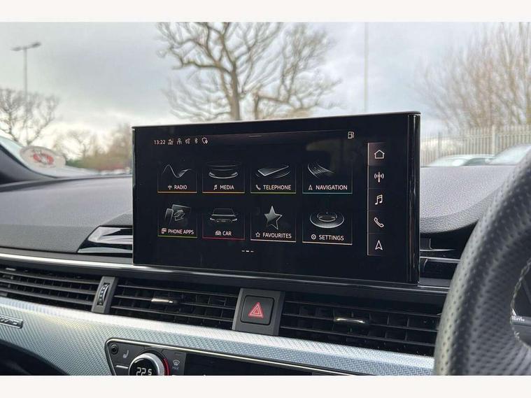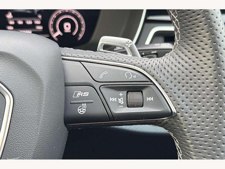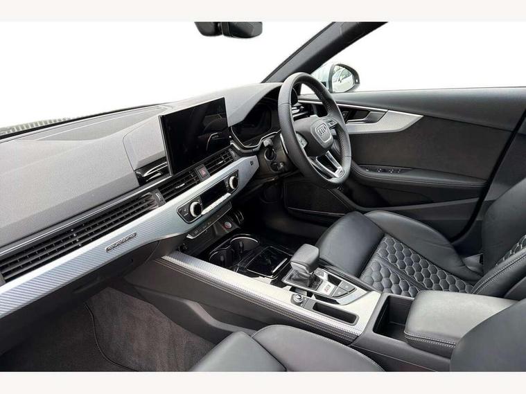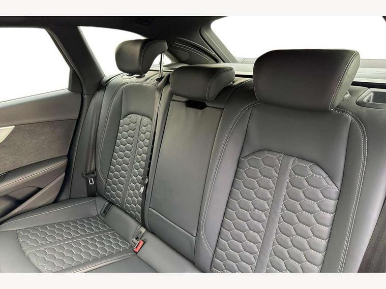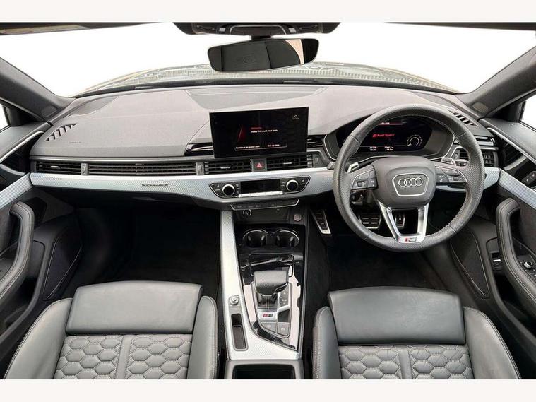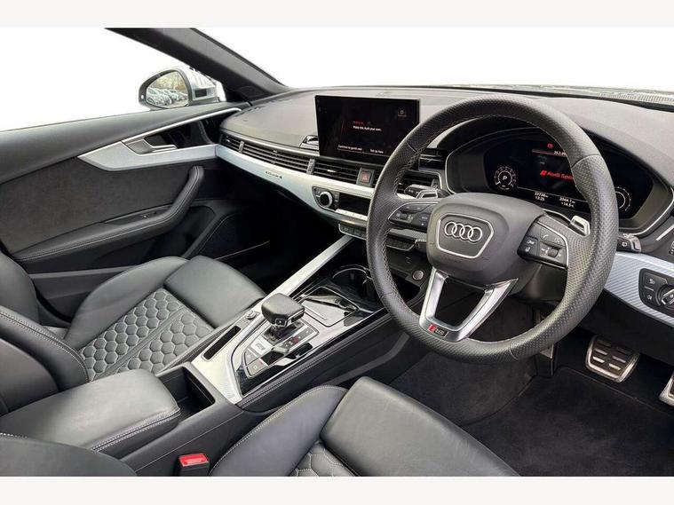 7" Colour driver information system, Audi connect safety and service (e-call), Audi drive select, Audi side assist, Audi smartphone interface, Audi virtual cockpit with RS specific display, Automatic start-stop system with coasting functionality and efficiency programme, Bluetooth interface, Camera based traffic sign recognition, Electromechanical power steering, Email, calendar and text messages displayed via MMI, Lane departure warning, MMI Navigation plus with MMI touch includes 10.1" high resolution colour MMI display, 3D map, Power opening/closing tailgate, Service interval indicator, Voice control system, 58 Litre fuel tank, Quattro sports differential, 2 USB charging ports, Audi sound system, DAB digital radio module, 3rd brake light, Acoustic windscreen, Audi Beam uses LEDs to project the RS logo onto ground as you exit your RS4, Audi matrix LED headlights with LED rear lights + dynamic front and rear indicators, Auto dimming rear view mirror, Automatic headlights + automatic windscreen wipers, Blue tinted glass, Body colour door handles, Electric front windows, Electric rear windows, Electrically folding auto dimming/adjustable/heated door mirrors with memory function, LED side indicators and kerb view function for passenger side, Flared front and rear wheel arches, Front bumper with enlarged air inlets, Front spoiler in matt aluminium look finish, Headlight range control, High beam assistant, High gloss black triangular aperture at rear door, Honeycomb design grille with quattro logo, Lateral air inlets next to front headlights, LED daytime running lights, LED indicators in door mirrors, Matt aluminium door mirrors, Privacy glass with rear acoustic glazing, Rain and light sensors, Rear side wing doors, Rear wiper, Roof rails in aluminium matt look finish, Roof spoiler, RS 4 badges on grille and rear, RS4 dual branch chrome tailpipes with left and right oval pipes, Side sill extensions in body colour with high gloss black inserts, 3 seat bench in 2nd row, 3 spoke multifunction plus leather steering wheel with heating and RS badging, 40/20/40 split folding rear seats with rear centre armrest, Black cloth headlining, Deluxe 3 zone electronic climate control, Electric load area cover, Electrically adjustable front seats, Fine nappa leather with contrast honey comb stitching + super sports seats with pneumatic massage function, Front centre armrest, Front headrests, Front/rear floor mats, Heated front seats, Height and reach adjustable steering wheel with full size airbag, Illuminated door sill trims with RS4 logo, ISOFIX child seat mounting and top tether, Leather door armrests and knee pad, Luggage compartment carpet, Perforated leather gear lever knob with contrast stitching, Rear headrests, Retractable load area cover, Single front passenger seat, Stainless steel pedals, Sunvisors with vanity mirrors, Tool kit, LED Interior light pack - RS4, Non Smokers pack, 3 point seatbelts on all rear seats, Adaptive driver and front passenger airbags, Attention and drowsiness assist, Electromechanical parking brake, Electronic stabilisation control including ABS, ASR and EDL, Enhanced braking system, Front head airbags, Front seatbelt pretensioners + load limiters, Front side airbags, Hill hold assist, Manual child lock in rear doors, Multi-Collision braking, Pop-up bonnet for pedestrian protection, Pre sense city, Rear side airbags, Seatbelt monitoring, Traction control, Tyre pressure warning, Variable restraint system, Warning triangle and first aid kit, Anti theft alarm, Anti-theft wheel bolts, Immobiliser, Keyless Go, Remote central locking, Remote control key with RS emblem, Antracite aluminium race inlays, Tyre repair kit,