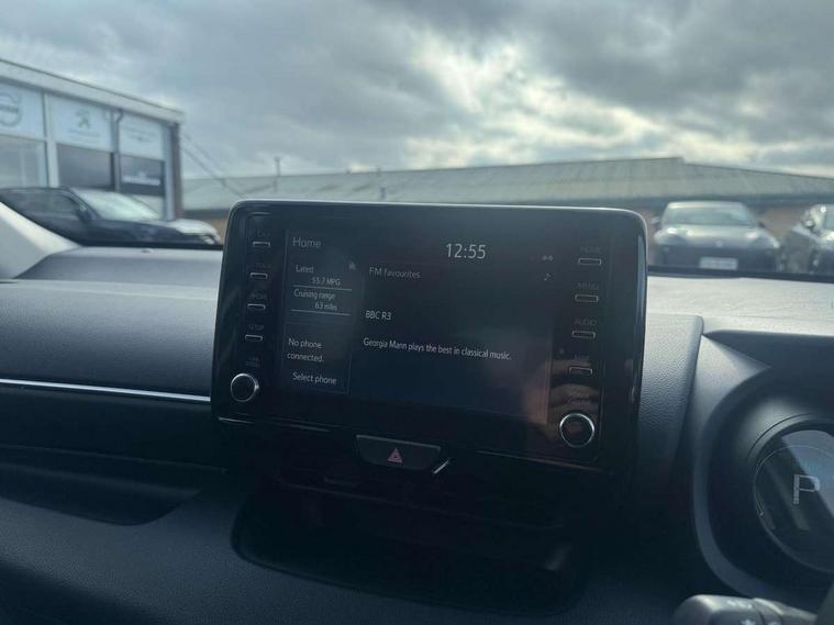 Adaptive cruise control, Adjustable speed limit with speed warning, Bluetooth connectivity, Colour binocular inspired displays with digital speedometer, E-call, Electric power steering, Hybrid energy display, Multi information display switches on steering wheel, Reversing camera, Smartphone integration with Apple CarPlay and Android auto, Tailgate, Voice recognition, Vehicle Stability Control (VSC), 4 speakers, 8" Multimedia display touch screen, USB connection, Acoustic windscreen glass, Auto windscreen wipers, Automatic headlights, Body coloured door mirrors, Electric adjustable heated door mirrors, Follow me home headlights, Front auto power windows with anti jam protection, Full LED rear lights, LED daytime running lights, LED front fog lights, LED front light guide, LED Headlights, LED High mounted stop lamp, LED Indicators, LED rear light guide, Manual headlight levelling, Painted chequered front grille, Rain sensor, Rear auto power windows with anti jam protection, Rear privacy glass, Rear side wing doors, Rear spoiler, Rear wiper, Shark fin antenna, Turning signal integrated indicators in door mirrors, Variable front intermittent wipers, 3 adjustable rear headrests, 3 spoke leather steering wheel, 60/40 split folding rear seat, Active headrests, Adjustable boot height, Auto air conditioning, Coat hooks in rear grab handles, Cup holders (2 front & door), Data Communication Module (DCM) connected services, Fabric upholstery, Front armrest, Glovebox, Grey roof lining, Height adjustable driver's seat, Isofix seat fixing, Leather gearshift, Pollen filter, Shopping bag hooks, Single front passenger seat, Tilt/telescopic steering column, 3 point seatbelts on all rear seats, ABS+EBD+Brake assist, Electronic parking brake, Emergency brake light system (EBS), Front passenger airbag on/off switch, Front seatbelt reminder, Hill start assist control (HAC), Rear child proof door locks, Rear seat belt reminder, Supplemental Restraint System (SRS) 8 airbags: Driver & passenger's airbags, dual side curtain airbags, side impact airbags, front centre airbag, Toyota Safety Sense 2, Precollison + Night time Pedestrian & Cyclist Detection, Lane Trace Assist, Auto High Beam, Intelligent ACC & Road Sign Assist, Tyre pressure warning system, 2x Master key, Alarm/immobiliser, Remote powered central double locking doors, Soft touch instrument panel, Space saver spare wheel,