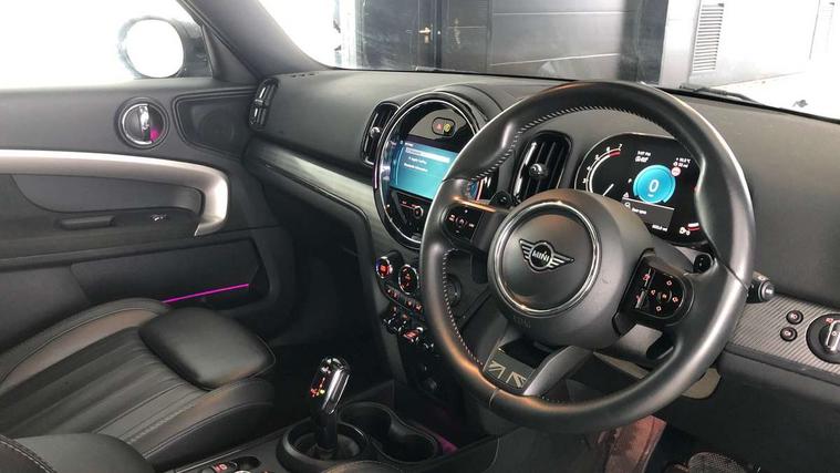 Active Guard incl speed limiting and lane departure functions with auto steering, and front collision warning with brake intervention, Automatic start/stop function with brake energy recuperation, Electro-mechanical speed dependant steering assistance, Instrument cluster, MINI Driving Modes - centre toggle switch to control driving setting (sport, mid and green), Mini E-call, MINI TeleServices, On board computer, Double Vanos system, Fully variable valve control, High precision injection, Performance Control, Steptronic sport transmission with double clutch and steering wheel paddles, FM tuner and DAB digital radio, 3rd brake light, Bonnet scoop, Chrome fuel filler cap, Day time driving lights, Dynamic brake lights, Electric windows, Heated rear window, Heated windscreen washer jets, LED fog lights, Metal door sill strips with Cooper S imprint, MINI yours exterior badge in C-Pillar, driver and passenger side, Model logo, Model logo on Tailgate, Rain sensor with auto headlights, Rear fog lights, Rear side wing doors, Rear window wiper, Side scuttle panel with integrated indicator, Split rear doors, Sun/heat protection glass, White indicator lenses, 12V socket in centre console, 3 seat bench in 2nd row, 360L luggage compartment capacity, 4 lashing eyes in luggage compartment, 40:20:40 split folding rear seats, Anthracite headlining with grab handles and clothes hooks, Chrome interior highlights, Colour line - Carbon black, Cupholders, English handbook, Front headrests, Glove compartment, Height and length steering column adjustment, Interior lighting with 12 basic colours selectable via toggle switch in roof, Isofix rear child seat preparation, Leather gearshift lever and handbrake gaiters, LED reading lights, vanity mirror lights, front foot well light and spotlight on front seats, MINI Yours fine walk nappa leather steering wheel with contrast stitching in silver and MINI Yours badge, Multifunction steering wheel, Rear headrests, Single front passenger seat, Storage compartments in doors, Sunvisors with vanity mirrors, Excitement pack - Countryman, Navigation plus pack - Countryman, 2 tone horn, 3 point seatbelts on all seats, 6 Airbags - front, side, head and seat belt tensioners, Anti-lock braking system (ABS), DSC - Dynamic Stability Control, Electronic handbrake, Front and rear disc brakes, Hill start assist, Manual rear child locks, Tyre pressure monitoring system, Alarm system with tilt sensor, monitoring doors, bonnet interior and tailgate, Auto drive away locking, Deadlocking function, Electronic vehicle immobiliser, Locking wheel bolts, Start/stop toggle with keyless go, Tool kit,