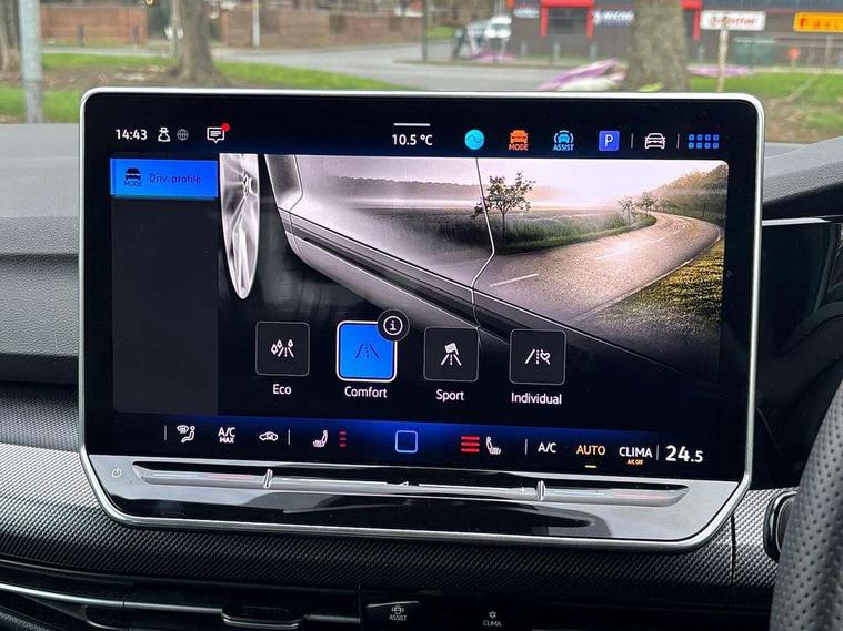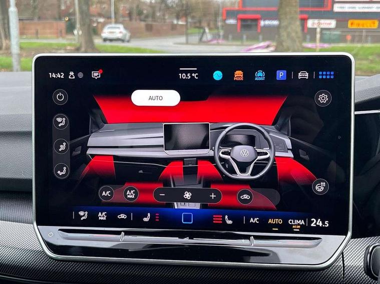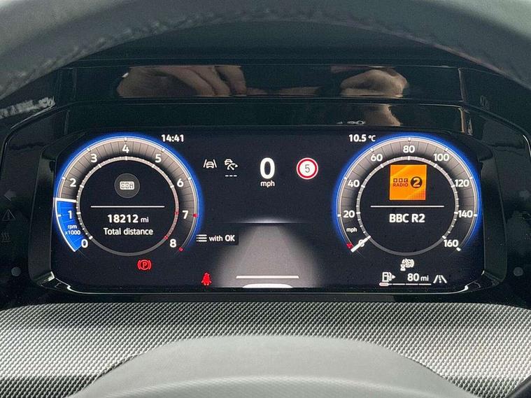Activated carbon canister, Adaptive cruise control (ACC), Advanced driver attention and drowsiness monitor, Dynamic road sign display, Dynamic steering, E-Sim card for online connectivity, eCall emergency call system, Multi-color Digital cockpit pro, selection of different info profile possible, Multifunction front facing camera for distance control, Navigation system, Oncoming vehicle braking when turning including swerve support, Preparation for light assist system, Speed limiter, Speedo, rev counter, electronic odometer, trip, service interval display, exterior temperature and fuel gauge, Traffic jam assist, Voice enhancer and voice control, Warning signal and warning light for front and rear seatbelts not fastened, We connect plus preparation, We connect preparation, Wireless app connect, Petrol Particulate Filter, Start-stop system with battery regeneration (recuperation - energy recovery during braking), XDS electronic differential lock for improved traction and handling, 2 USB C ports in front, 2 USB charging sockets on the centre console in the rear charging capacity upto 45W, Comfort telephony + wireless charging, without wireless aerial connection, Digital radio reception (DAB), Diversity antenna for FM reception, Gaming platform via car app, Infotainment system with 12.9" display, Mobile phone interface with inductive charging feature, 3rd brake light, Auto headlights, Automatic headlamp activation with Coming home and Leaving home feature, Body colored bumpers in R-Line style, Body colour door handles, Exterior ambient lighting with illuminated door handles, Exterior mirrors convex on the left and aspherical on the right, Front and rear electric windows, Heat insulating windshield made of laminated glass, LED daytime running lights, Rear exhaust tailpipe, Rear fog light on one side and reversing lights on both sides, Rear side wing doors, Rear windscreen washer and wiper with interval delay, Remote electrically foldable door mirrors, puddle lights and reverse activated passenger's door mirror, Welcome light with surround lighting, 12V socket in front centre console, 12V socket in luggage compartment, 3 rear head restraints, 3 seat bench in 2nd row, Ambient lighting with 30 colour including LED light unit in front footwell with selectable light colour, Brushed stainless steel pedals, Carpet mats, front and rear, Chrome plated radiator grille inserts, air vent surrounds and light switch surrounds, Front centre armrest, Integrated front head restraints, ISOFIX anchors for child seats on outer rear bench seats and on front passanger seat compatible for i-Size, Leather gearshift handle, Luggage compartment lighting, Premium sports seats in front, Rear cupholder and loadthough, Single front passenger seat, Soul black instrument panel, Split folding backrest with centre armrest and unsplit rear seat bench, Storm grey roof lining, Sun visors with illuminated vanity mirrors, 3 point height adj front seatbelts + pretensioners, 3 rear three point seatbelts, ABS, Autonomous emergency braking front assist with pedestrian and cyclist monitoring, Child locks on rear doors, Driver and front passenger airbag with front passenger airbag deactivation, Electronic parking brake with auto hold, ESC (Electronic Stability Control), Extended pedestrian protection measures, Rear disc brakes, Two tone horn, Tyre pressure loss indicator, Volkswagen roadside assistance, Anti theft wheel bolts, Preparation for alcohol interlock, Decorative inserts carbon grey for dashboard and front door trim panels,