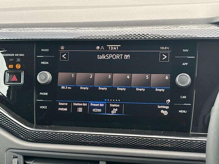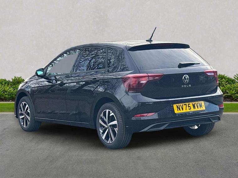 Advanced driver attention and drowsiness monitor, Bluetooth mobile phone interface, Dynamic road sign display, Emergency call service, Mobile phone preparation with inductive charging function, Multifunction front facing camera for distance control, Power assisted speed sensitive steering, Predictive adaptive cruise control without follow-to-stop and speed limiter, Preparation for navigation system with media and internet package, Preparation for We connect and We connect plus, Rear view camera, Speedo and rev counter, electronic odometer, trip, service interval display and exterior temperature gauge, Standard rear axle, Travel Assist - Lane keeping system and traffic jam assist, Travel assist including emergency assist, Trip computer, Warning signal and warning light for front and rear seatbelts not fastened, Washer fluid level indicator, Wireless app connect, Front wheel drive, Rear shock absorpion, Start-stop system with battery regeneration (recuperation - energy recovery during braking), DAB Digital radio, Diversity antenna for FM reception, Automatic dimming interior rear view mirror, Automatic headlight control with LED separate daytime running lights with coming/leaving home function, Body colour bumpers with chrome inserts, Body colour door handles, Body colour door mirrors, Electric front windows, Engine badge deletion, Headlight range adjustment, Heat insulating and laminated safety glass windshield, LED Headlights, LED rear combination lamps, Power folding adjustable/heated exterior mirrors and front passenger exterior mirror lowering function, Rain sensor, Rear electric windows, Rear fog light, Rear side wing doors, Rear tinted glass from B-pillar backwards approx 65% tinted, Rear windscreen washer and wiper with interval delay, Third brake light, 12V power socket in centre console, 2 front and 2 rear reading lights with switch off delay and dimmer, 2 USB-C ports in the front, 2 USB-C charging sockets on the center console in the rear, 3 rear head restraints, 60/40 split folding rear seat and rear seat bench not split, Carpet mats, front and rear, Ceramique roof lining, Chrome plated radiator grille inserts, air vent surrounds and light switch surrounds, Door and side trim panel, Driver and front passenger seat height adjustment, Driver/passenger sunvisors with illuminated vanity mirrors, Front centre armrest, Front seat backrest storage pockets, Front standard seats, Handbrake lever handle in leather, Hartley/Thomas cloth upholstery, Headliner in recycled material, Isofix child seat preparation easy-fit (for two outer rear seats, and front passenger seat) compatible with I-size, Leather trimmed gear knob, Luggage compartment cover, Luggage compartment lighting, Removable luggage compartment floor, Single front passenger seat, Standard climatic zones, Standard pedal cluster, Three spoke leather wrapped multifunction steering wheel with shifting paddles, Light and vision pack - Polo, 3 point height adj front seatbelts + pretensioners, 3 point seat belt for centre rear seat, 3 point seatbelts, outer rear with ECE lable, ABS, Driver and front passenger airbag with front passenger airbag deactivation, Drivers and front passengers safety optimised head restraints, ESC (Electronic stability control) + EDL (Electronic Differntial lock) and ASR (Traction control), Extended and predictive pedestrian/ cyclist protection, Front assist with autonomous emergency braking (for Adaptive Cruise Control ACC up to 130 mph), Front curtain and side airbags with center airbag, Front disc brakes, Hill hold control, Manual child lock in rear doors, Rear drum brakes, Single tone horn, Tyre pressure loss indicator, Alarm with interior protection, Anti-theft alarm system with interior monitoring, backup horn, and towing protection, Anti-theft wheel bolts, Electronic engine immobiliser, Lava stone black gloss/matt decorative inserts in dash and front door panels, 16" Torsby alloy wheels, Low rolling resistance tyres,