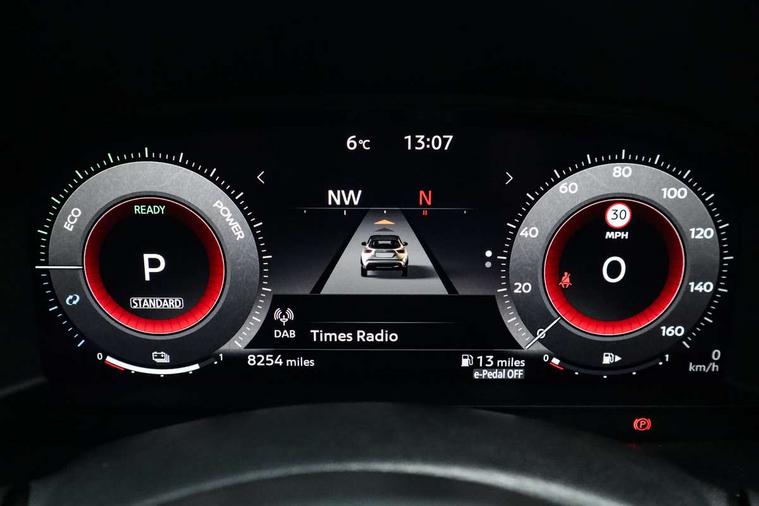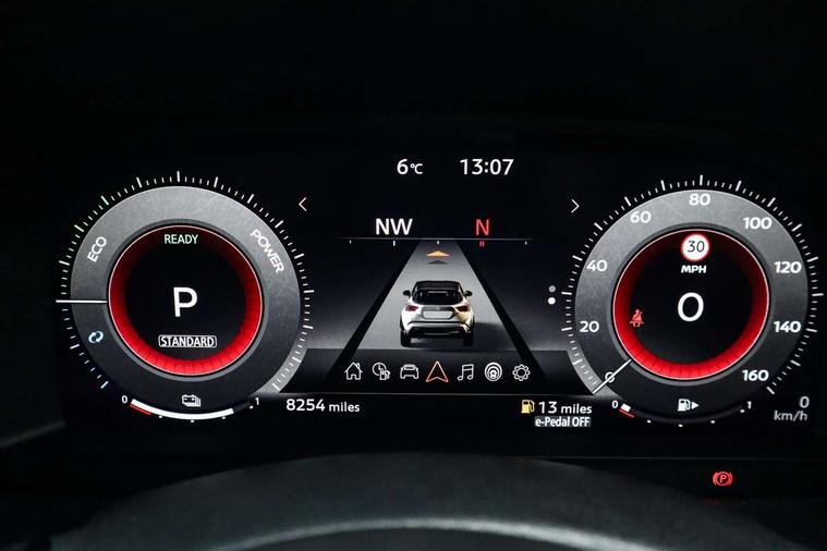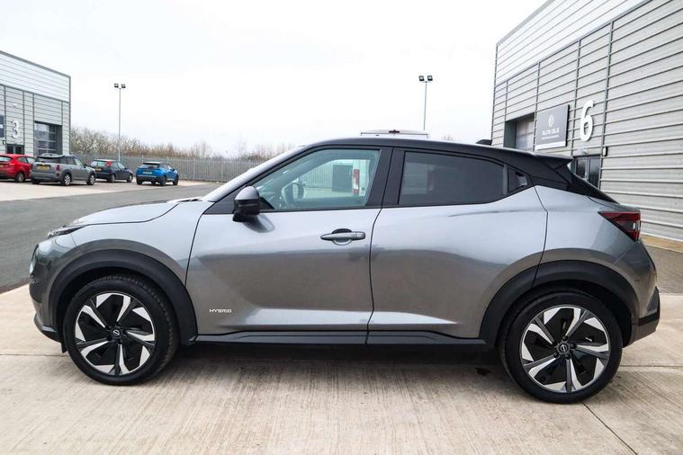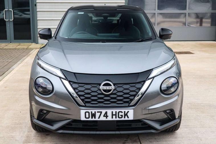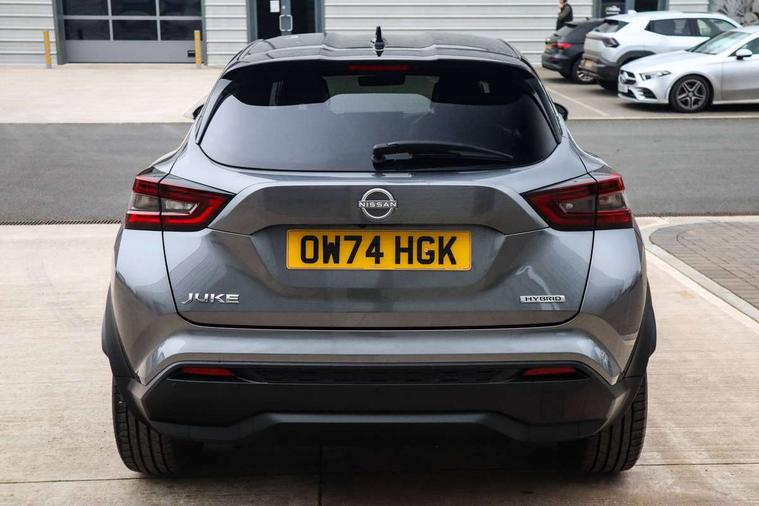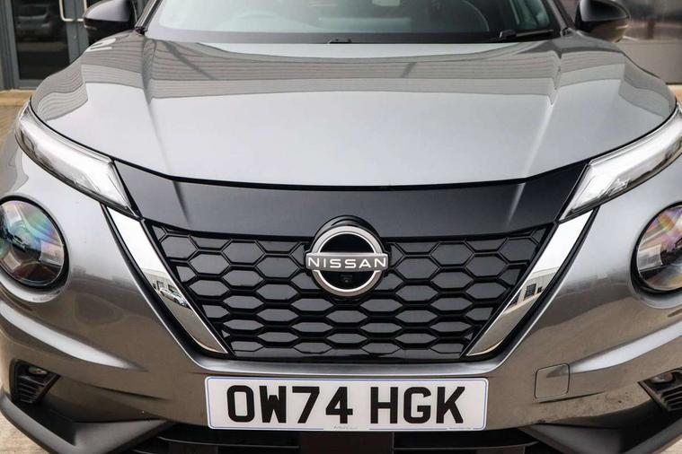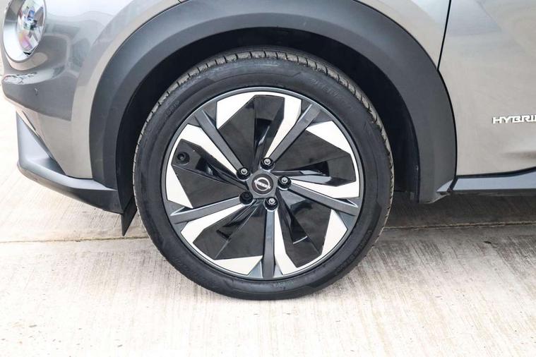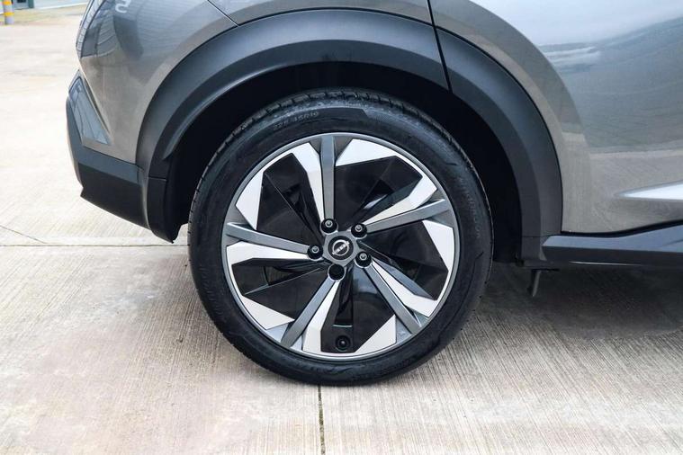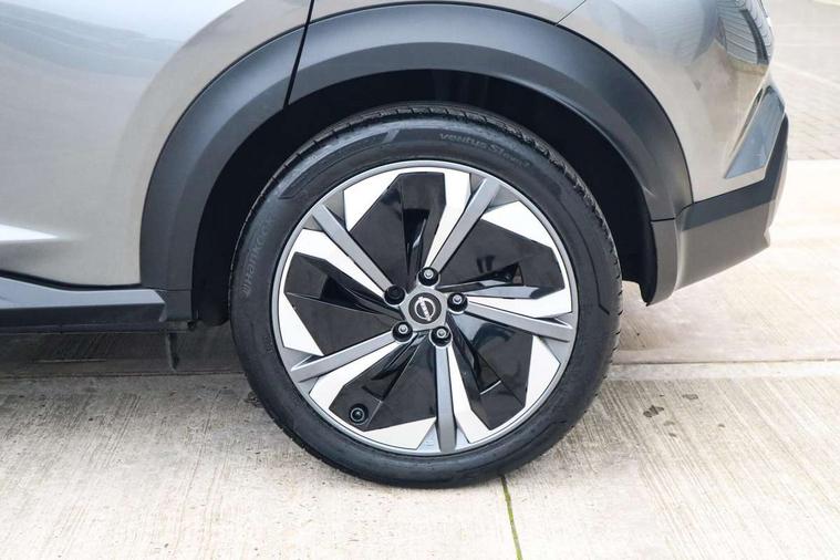 12.3" full colour TFT screen combimeter, Drive modes select (Eco, normal and sport), e-Pedal step, Emergency and breakdown call, EV mode switch, Front parking sensor, Intelligent driver alert system, Intelligent lane intervention, Lane departure warning system, Nissan connect 12.3" touch screen entertainment system, Nissan connect nav with TomTom traffic, Nissan connect services, Outside temperature sensor, Power Steering, Rear parking sensor, Stop/start button, Traffic sign recognition, Trip computer, Voice recognition, WiFi connectivity, Wireless Apple CarPlay and Google Android auto, Wireless Smartphone charger, 10 Bose speakers 6 speakers and 2 headrest speakers for driver/passenger seats, 2 X Rear console USB port, Bluetooth system, USB, Aux-in and 12V socket, Bose personal sound stage control, DAB Digital radio, Auto dimming frameless rear view mirror, Automatic hazard signal with emergency stop signal, Body colour door handles, Electrically adjustable door mirrors with integrated indicators, Follow me home headlights, Front and rear electric window with one touch driver window, Heated and auto folding door mirrors, High beam assist, LED 3rd brake light, LED daytime running lights, LED front fog lights, LED headlamps, LED rear fog lamp, LED rear lamps, One touch passenger window, Rain sensor windscreen wipers, Rear privacy glass, Rear side wing doors, Rear wiper, Roof spoiler, Shark fin roof antenna in solid Black, Three blink turn signal, 3 height adjustable rear headrests, 3 seat bench in 2nd row, 60/40 split folding rear seat, Automatic climate control, Card holder on driver sunvisor, Door ambient lighting, Driver seat back pocket, Driver side rear coat hanger, Driver/passenger sunvisors and vanity mirrors, Front and rear cabin lights, Front armrest, Front door pockets with bottle holders, Front head restraints, Front/rear passenger grab handles, Gear console ambient circle lighting, Height adjustable driver's seat, Internal chrome door handles, Leather gearshift knob, Luggage board, Luggage space lighting, Monoform sporty seats, Multifunction steering wheel, Passenger seat back pocket, Rear door bottle holders, Single front passenger seat, Smooth synthetic leather steering wheel, Synthetic leather kneepad, Telescopic steering wheel adjustment, Two cupholders in front centre console, Two rear isofix child seat anchorage points with top tether, Welcome light and console tray ambient lighting, Heat pack with height adjustable passenger seats - Juke, Interior personalisation pack - Juke, ProPilot pack - Juke Auto, Satin grey exterior personalisation pack - Juke, ABS with EBD and brake assist, Active ride control, Active Trace Control, Driver and passenger airbags, Driver and passenger side airbags, Electric handbrake with auto hold function, Electronic Stability Programme (ESP), Front and rear curtain airbags, Height adjustable seatbelts, Hill start assist, Intelligent emergency braking with pedestrian and cyclist recognition, Rear door child safety locks, Seatbelt reminder for driver/front passenger and rear seats, Three 3 point rear seatbelts, Traction control, Tyre pressure monitoring system, VDC Dynamic Vehicle Control, Alarm, Immobiliser, Intelligent key and start push button with walk away lock and approach unlock functions, Remote central locking, 19" Aero alloy wheels, Tyre puncture repair kit,