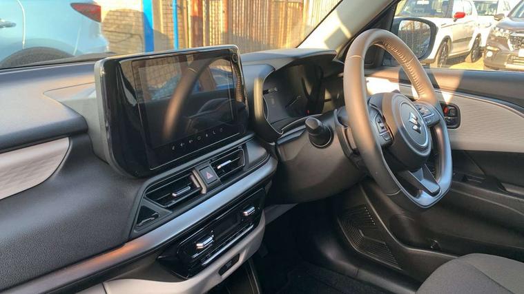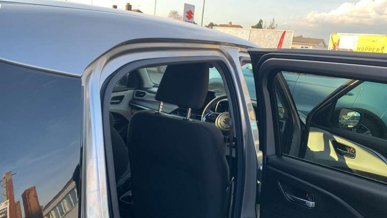 Adaptive cruise control with Stop and Go, Automatic start/stop system, Blind spot monitoring, Colour LCD information display, Digital clock, Driver monitoring system, eCall, Fuel consumption display (average/instantaneous) and range display, Intelligent speed control support, Lane departure prevention, Lane departure warning system, Lane keeping assist (LKA), Low fuel level warning light, Navigation system, Outside temperature display, PAS, Rear cross traffic alert, Rear parking camera, Rear parking sensors, Remote fuel cap release, Smartphone integration with Apple CarPlay and Android auto, Suzuki connect, Tailgate, Traffic sign recognition, Weaving alert, 4 speakers + 2 tweeters, 9-inch infotainment display, Auxiliary input socket, Bluetooth audio streaming, DAB Digital radio, Steering wheel audio controls, USB Type A and C, 'Guide me home' headlamps, 1 speed with intermittent rear wiper + washer, 2 speeds front wiper with intermittent + washer, Automatic headlights, Black coloured A & B pillars, Black Upper and lower front grille, Body colour door mirrors and handles, C pillar trim moulding, Door mirrors with built-in turn signal lamp, Electric door mirrors, Electric folding door mirrors, Electric front windows, Electric rear windows, Green tinted glass, Heated door mirrors, High beam assist, LED daytime running lights, LED High mounted stop light, LED number plate light, LED position lamps, LED projector headlamps, LED rear combination lamp, Manual headlamp level control, Rain sensor, Rear fog lights, Rear privacy glass, Rear side wing doors, Rear spoiler, Side spoiler, 1 cup holder in rear, 12V Accessory socket in front console, 2 cup holders in front, 2 Isofix seat anchors, 3 bench rear seats in 2nd row, 3 rear head restraints, 3 spoke leather covered steering wheel, 60/40 split rear seats, Accessory socket, Automatic air conditioning, Centre console storage, Centre lower box, Child seat tether anchorages x 2, Chrome handbrake release button, Chrome interior door handles, Cloth upholstery, Door pockets with bottle holder, Driver/passenger sunvisors with ticket holders + vanity mirrors, Front cabin lights, Front headrests, Front map light, Front passenger side assist grip, Gearshift paddles, Glovebox, Heated front seats, Heater, Height adjustable driver's seat, Luggage area lamp, Painted interior door trim ornament, Parcel shelf, Passenger seat back pocket, Pollen filter, Rear assist grips x2, Rear heater duct, Single front passenger seat, Tilt adjustable steering wheel, Tilt/telescopic adjustable steering wheel, 3 point ELR seatbelts for centre seat, 3 point ELR seatbelts front and rear, ABS+EBD+Brake assist, Curtain airbags, Driver airbag, Dual sensor brake support, ESP + traction control, Front and rear seatbelt reminder, Front passenger airbag, Front passenger airbag deactivation, Front seat seatbelts shoulder height adjuster, Front seatbelt pretensioners with force limiters, Hill hold control, Rear child proof door locks, Rear seatbelts with pre-tensioners and load limiters, Side airbags with incorporated into front seats, Tyre pressure indicator, Deadlocks, Freewheeling key cylinders, Immobiliser, Keyless entry and start, Light - on and Key in reminder, Locking wheel nuts, Remote central locking, Painted instrument panel ornament, 16" Polished alloy wheels, Emergency flat tyre repair kit,
