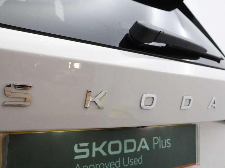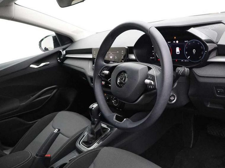 Advanced driver attention and drowsiness monitor, Bluetooth connection, Electromechanical power steering, Exterior temperature gauge, Service interval indicator, Traffic sign recognition, Virtual cockpit with 10.25" colour display, Wireless SmartLink for Apple CarPlay and Android Auto, 6 Speakers (4 in front and 2 in rear), Auxiliary socket for external MP3 player, DAB digital radio reception, Body coloured bumpers, Dimming rear view mirror with black frame, Door mirror integrated indicators, Front and rear electric windows, Front window wiper intermittent control, Headlight range control - Automatic, Ice scraper in fuel cap, LED daytime running lights with coming and leaving home feature, LED rear lights, Privacy glass, Rear LED fog light, Rear side wing doors, Rear window wiper with washing nozzles, Roof mounted spoiler, SKODA tailgate lettering in chrome, Third brake light, 2 reading lights in front and 2 reading lights in rear, 3 rear headrests, Backrest split and folding, Central console with removable cup holder and storage box, Chrome handbrake release button, Fabric upholstery, Front centre armrest, Gearshift knob/handle in leather, Grain satin black interior door handles, Hand brake lever handle in leather, Height adjustable front headrests, Height adjustable front seats, Height adjustable steering wheel, ISOFIX and TopTether anchorage points to the outer rear seats, ISOFIX and TopTether on the front passenger seat, Luggage compartment lighting, Manually adjustable lumbar support in front seats, Pollen filter, Rear seat bench unsplit, Single front passenger seat, Storm grey headlining, Sun visors with mirror and airbag label on passenger side, Textile floor mats, Ticket holder, Umbrella in drivers door, 3-point height adjustable front seats belts with pretensioner and force limiter, Automatic warning lights in case of crash, Driver and passengers airbag with switch off function, e-Call+, ESC including ABS, MSR, ASR, EDS, HBA and XDS, Front and rear seat belt warning, FRONT ASSIST (AEB City and AEB Inter Urban), Front side airbags, Head airbags, Hill hold control, One tone horn, Pedestrian protection, Three rear 3-points safety seat belts with pretensioner and force limiter including stop function for outer rear seat belts, Tyre pressure monitoring system, Anti-theft alarm system including immobiliser, interior monitoring, backup horn, and towing protection, Central locking with radio remote control, interior controls, SAFE function and 2 foldable keys, Colour Edition air vents, Grain satin black central console cover, Metallic grey upper decorative trim, Satin black door and side trim panel in front, Textile Kota grey lower decorative inserts, Anti-theft wheel bolts protection, Super-low rolling resistance tyres,