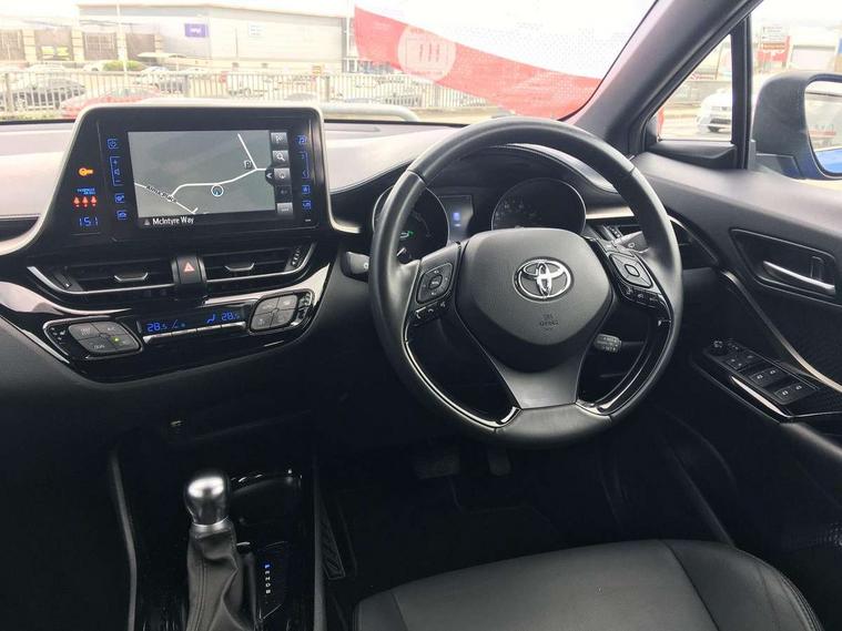7" Coloured TFT multi informational display, 8" touch screen, Adaptive cruise control, Adjustable speed limiter, Bluetooth connectivity, Electric power steering, Intelligent parking assist with front & rear parking sensors, Lane change assist and blind spot monitor, Lane departure alert with steering control, Lights on warning, Push button starter, Rear cross traffic alert, Reversing camera, Reversing camera display in audio screen, Road sign assist - RSA, Touch 2 Go navigation system, Trip computer, Voice recognition, Vehicle Stability Control (VSC), 6 speakers, DAB Radio (Digital Audio Broadcasting), Steering wheel mounted controls, USB and Aux in connectors + 12V front outlet, Wi-fi connectivity, Auto high beam, Automatic headlight levelling, Automatic headlights, Automatic retractable door mirrors, Bi-tone black roof, Body colour door handles, Body colour door mirrors, Body coloured bumpers, Boot door release with push button, Door mirror puddle lights, Electric folding/heated door mirrors with integrated indicators, Electrochromatic rear view mirror, Follow me home headlights, Front and rear electric windows, Heated rear windscreen, Intermittent wipe, LED daytime running lights, LED front fog lights, LED headlights with sequential LED indicators, LED High mounted stop lamp, LED rear brake lights, LED rear lights, Rain sensitive windscreen wipers, Rear privacy glass, Rear spoiler, Rear wiper, Shark fin antenna, Trailer sway control, 12V Accessory socket, 3 spoke leather steering wheel with multimedia switches, Ambient lighting, Chrome interior door handles, Clean air filter, Cloth upholstery, Driver + front passenger electric lumbar support, Driver and front passenger personal light, Driver and front passenger Whiplash Injury Lessening seats, Driver/passenger sunvisors and illuminated vanity mirrors, Dual zone automatic air conditioning, Folding rear seats, Front and rear door pockets, Front console box and front cupholders, Front cupholders x 2, Front head restraints, Gear shift indicator, Glovebox with internal light, Hard tonneau cover, Heated driver and front passenger seats, Illuminated door sills, Illuminated entry system, Isofix seat fixing, Leather effect padded armrest on front console box, Leather gearshift, Light blue ambient lighting on front doors, Pollen filter, Rear headrests, Tilt/telescopic steering column, 3x3 point rear seatbelts, ABS+EBD+Brake assist, Electronic parking brake, ESP + traction control, Front and rear seatbelt reminder, Front passenger airbag on/off switch, Hill start assist control (HAC), Pre collision system with pedestrian detection, Rear child proof door locks, Road sign information display, Supplemental restraint system (SRS) airbags - 7 airbags including driver, front passenger, curtain, side and knee airbags, Toyota safety sense, Tyre pressure monitoring system, Immobiliser, Intrusion alarm, Motion sensor alarm, Remote central locking, Smart entry + Smart start, Silver dash inserts, 18" 5 double spoke matt black alloy wheels, Tyre repair kit,