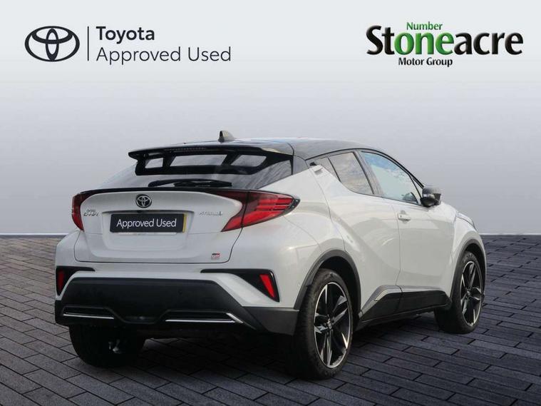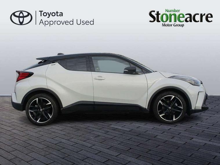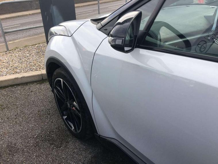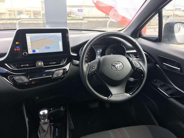 4.2" coloured TFT screen for multi-information display, Adaptive cruise control, Apple car play and Android auto, Bluetooth connectivity, E-call, Electric power steering, Hybrid system indicator, Lane departure alert with steering control, Lane trace assist, Push button tailgate release, Remote boot door release in cabin, Remote boot door release in key, Reversing camera, Road sign assist - RSA, Simple Intelligent parking assist, Smart voice assist, Touch 2 Go navigation system, Trip computer, Voice recognition, Wireless smartphone integration, Vehicle Stability Control (VSC), 6 speakers, AM/FM radio, DAB Radio (Digital Audio Broadcasting), Toyota touch 2 multimedia system with 8" display, USB connector, Wi-fi connectivity, Adaptive front light system, Adaptive LED Headlights, Anti-jam protection on power windows, Auto high beam, Auto up and down function on all power windows, Automatic headlight levelling, Automatic headlights, Automatic headlights cut-off, Black and body coloured rear bumper, Black upper front grille, Body colour door handles, Body colour door mirrors, Body coloured front bumper, Boot door release with push button, Chrome front lower bumper, Electric heated door mirrors, Follow me home headlights, Front and rear power windows, Front spoiler lip in black, Headlight cut off reminder, Honeycomb lower front grille, LED daytime running lights, LED fog lights, LED front light guide, LED High mounted stop light, LED rear brake lights, LED rear combination lights, Noise reduction layer on front windows and windscreen, Power adjustable door mirrors, Privacy glass, Rain sensor, Rear sequential indicators, Rear side wing doors, Rear spoiler, Rear tailgate, Rear window defogger, Rear window wiper, Shark fin antenna, UV-filter on driver and passenger windows, UV-filter on rear windows, Variable front intermittent wipers, 12v power outlet - front, 3 rear headrests, 3 seat bench in 2nd row, 3 spoke perforated leather steering wheel, 60/40 split folding rear seat, Adjustable rear headrests, Adjustable speed limiter switch on steering wheel, Assist grips front and centre pillar, Audio and telephone switches on steering wheel, Black front door assist grips, Blue ambient lighting on front cup holders, Blue ambient lighting on front doors, Boot light, Chrome interior door handles, Cloth upholstery, Driver and front passenger personal light, Driver and front passenger Whiplash Injury Lessening seats, Driver and passenger seatback pockets, Dual zone automatic air conditioning, Floor mats, Front cupholders, Front head restraints, Front sports seats, Glovebox with internal light, Hard tonneau cover, Heated driver and front passenger seats, Hooks for luggage holding net, Humidifying Nanoe air purifier, Illuminated entry system, Isofix attachments on outer rear seats, Leather gearshift, Light on driver sun visor, Light on passenger sun visor, Manual telescopic steering wheel, Manual tilt steering wheel, Manually height adjustable driver seat, Manually height adjustable front passenger seat, Manually reclining driver seat, Manually reclining front passenger seat, Manually sliding driver seat, Manually sliding front passenger seat, Microphone on front personal light, Mirror on driver sun visor, Mirror on passenger sun visor, Multimedia switches on steering wheel, Pollen filter, Power adjustable lumbar support on driver seat, Shopping bag hooks, Single front passenger seat, Slow opening on lower glovebox, Voice recognition switch on steering wheel, Tech with parking sensor pack - C-HR, 16 Disk front wheel brake, 3x3 point rear seatbelts, ABS+EBD+Brake assist, Electronic parking brake, Front and rear seatbelt reminder, Front passenger airbag on/off switch, Hill start assist control (HAC), Pre collision system with pedestrian detection, Pre-tensioners and force limiters, Rear door child safety locks, SRS Airbags - Driver + Front passenger, front side, front and rear curtain and driver's knee airbags, Toyota safety sense, Tyre pressure monitoring system, Tyre pressure warning system, Acoustic vehicle alert system (AVAS), Glass-breaking alarm sensors, Immobiliser, Intrusion alarm, Intrusion sensor, Motion sensor alarm, Power door locks, Power passenger window lock, Remote central locking, Black lower dashboard, Black upper dashboard, Piano black console, Silver deco line on upper dashboard, 19" Black machined alloy wheels, Tyre repair kit,