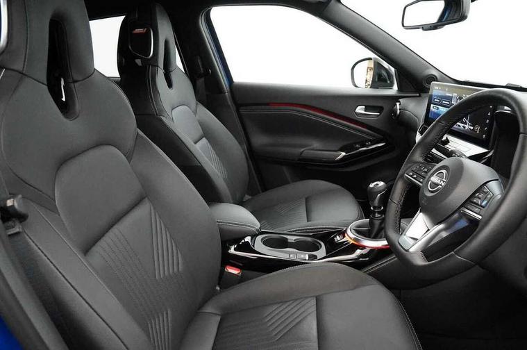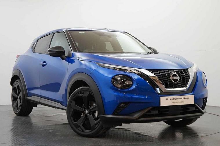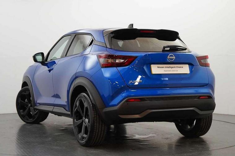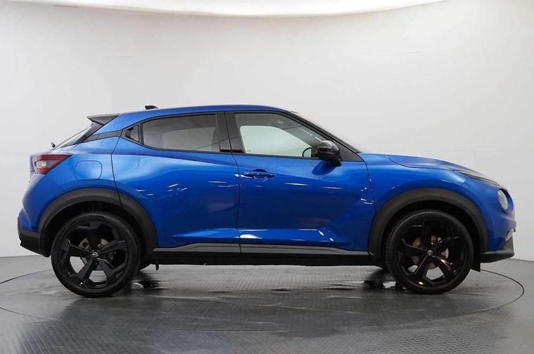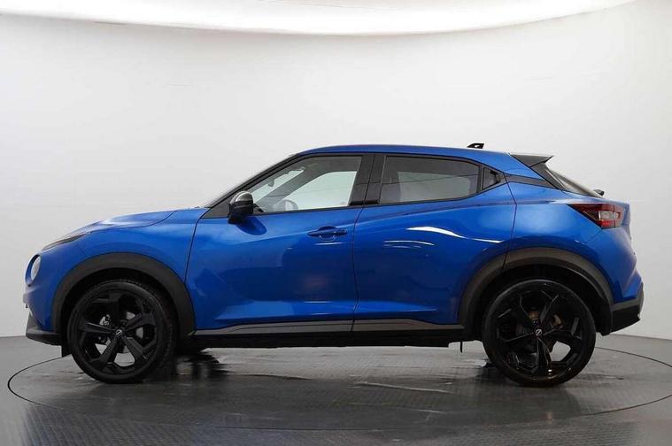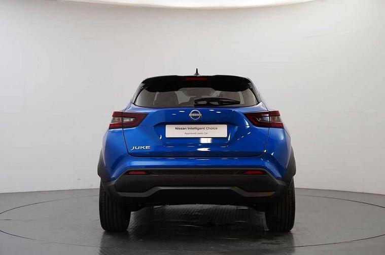 12.3" full colour TFT screen combimeter, Drive modes select (Eco, normal and sport), Emergency and breakdown call, Front parking sensor, Idle start/stop system, Intelligent driver alert system, Intelligent lane intervention, Lane departure warning system, Nissan connect 12.3" touch screen entertainment system, Nissan connect nav with TomTom traffic, Nissan connect services, Outside temperature sensor, Power Steering, Rear parking sensor, Stop/start button, Traffic sign recognition, Trip computer, Voice recognition, WiFi connectivity, Wireless Apple CarPlay and Google Android auto, Wireless Smartphone charger, 10 Bose speakers 8 speakers and 2 headrest speakers for driver/passenger seats, 2 X Rear console USB port, Bluetooth system, USB, Aux-in and 12V socket, Bose personal plus audio system, DAB Digital radio, Auto dimming frameless rear view mirror, Automatic hazard signal with emergency stop signal, Body colour door handles, Electrically adjustable door mirrors with integrated indicators, Follow me home headlights, Front and rear electric window with one touch driver window, High beam assist, LED 3rd brake light, LED daytime running lights, LED front fog lights, LED headlamps, LED rear fog lamp, LED rear lamps, One touch passenger window, Rear privacy glass, Rear side wing doors, Rear wiper, Roof spoiler, Shark fin roof antenna in solid Black, Solid black door mirrors, Three blink turn signal, 3 height adjustable rear headrests, 3 seat bench in 2nd row, 60/40 split folding rear seat, Card holder on driver sunvisor, Door ambient lighting, Driver seat back pocket, Driver side rear coat hanger, Driver/passenger sunvisors and vanity mirrors, Front and rear cabin lights, Front armrest, Front door pockets with bottle holders, Front head restraints, Front/rear passenger grab handles, Gear console ambient circle lighting, Height adjustable driver's seat, Internal chrome door handles, Luggage board, Luggage space lighting, Monoform sporty seats, Multifunction steering wheel, Passenger seat back pocket, Rear door bottle holders, Single front passenger seat, Smooth synthetic leather steering wheel, Synthetic leather kneepad, Synthetic leather shift knob, Synthetic leather upholstery, Telescopic steering wheel adjustment, Two cupholders in front centre console, Two rear isofix child seat anchorage points with top tether, Welcome light and console tray ambient lighting, Advanced safety shield pack - Juke Manual, Comfort pack - Juke, Heat pack with height adjustable passenger seats - Juke, ABS with EBD and brake assist, Active ride control, Active Trace Control, Driver and passenger airbags, Driver and passenger side airbags, Electric handbrake with auto hold function, Electronic Stability Programme (ESP), Front and rear curtain airbags, Height adjustable seatbelts, Hill start assist, Intelligent emergency braking with pedestrian and cyclist recognition, Rear door child safety locks, Seatbelt reminder for driver/front passenger and rear seats, Three 3 point rear seatbelts, Traction control, Tyre pressure monitoring system, VDC Dynamic Vehicle Control, Alarm, Immobiliser, Intelligent key and start push button with walk away lock and approach unlock functions, Remote central locking, 19" Alloy wheels, Tyre puncture repair kit,
