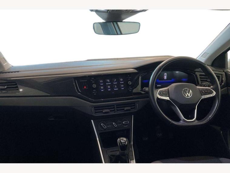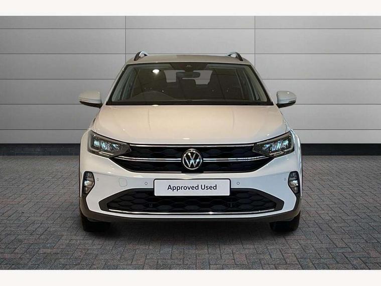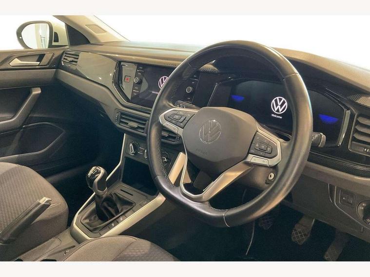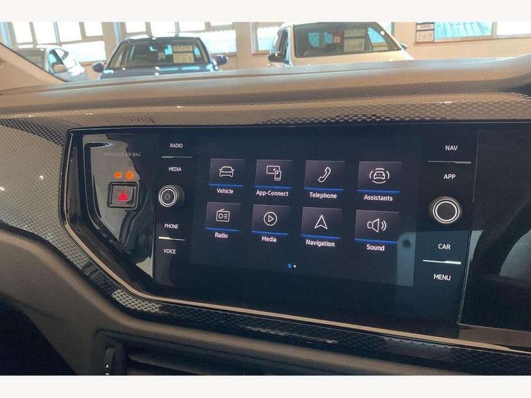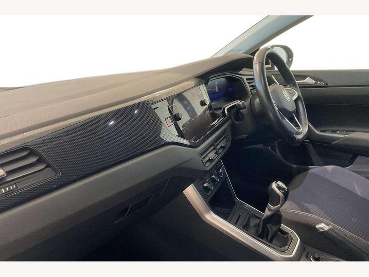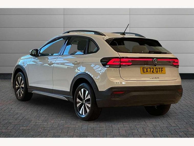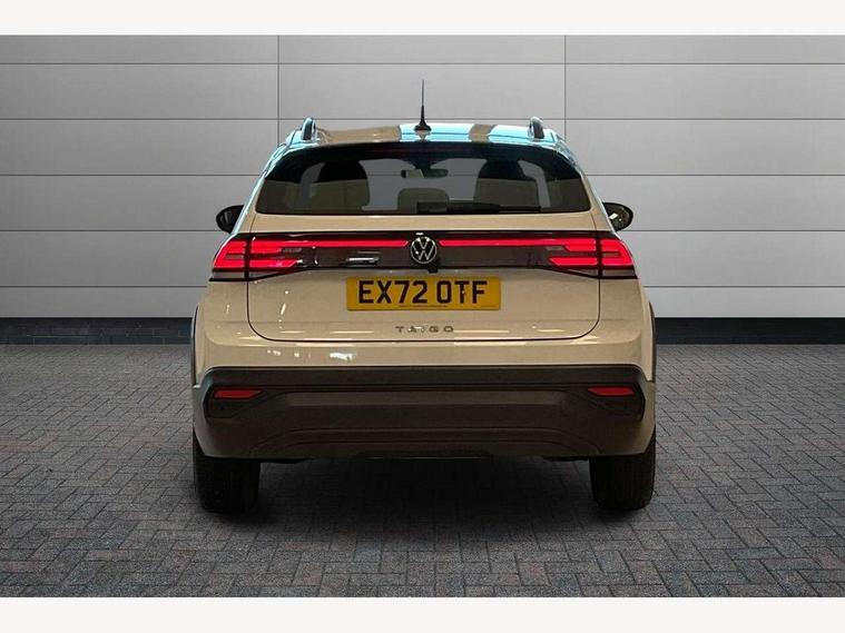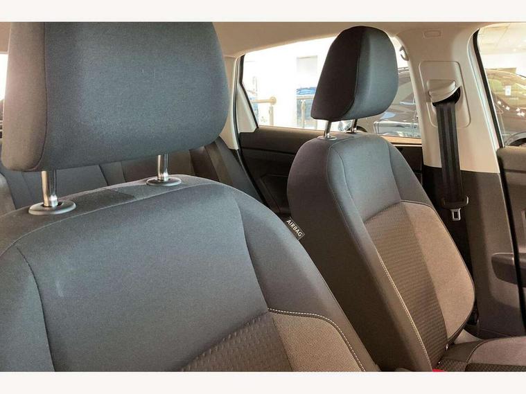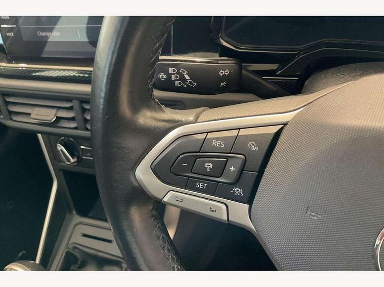 Driver alert system, e-Call (emergency call), Power Steering, Travel assist including emergency assist, Washer fluid level indicator, Wireless Charging including Bluetooth, Start-stop system with battery regeneration (recuperation - energy recovery during braking), WeConnect plus, Ambient lighting with logo projection, Aspherical driver's exterior mirror, Auto headlights, Body coloured bumpers, Body coloured exterior mirror housings and door handles, Electric windows, External USB type C socket and charging sockets, Front fog lamps with cornering function, Headlight range control, Heat insulating glass windscreen, LED headlamps, LED rear combination lamp, LED third brake light, Left convex exterior mirror, Power folding adjustable/heated exterior mirrors and front passenger exterior mirror lowering function, Rear fog light on one side, reversing light on both sides, Rear side wing doors, Rear wash/wipe with intermittent wipe setting, 'Slash/ Austin' Cloth upholstery, 12V socket in centre console, 2 front reading lights, 3 rear head restraints, 3 seat bench in 2nd row, Black carpets, Child seat anchor for child seat system i-Size, 2x top tether and child seat anchor in front on front passenger side, Door and side trim panels in titan black, Driver and front passenger seat height adjustment, Front centre armrest, Handbrake lever handle in leather, Height and reach adjustable steering wheel, Leather trimmed gear knob, Leather wrapped multifunction steering wheel, Luggage compartment floor, Luggage compartment light, Lumbar support for driver's and front passengers seat, Seat covers in titanium black, Single front passenger seat, Split folding backrest with centre armrest and unsplit rear seat bench, Storage compartment under front seats, Sun visors with illuminated vanity mirrors, Chrome Package - Taigo, Drivers assistance pack - Taigo, Light and Sight pack including High beam assist - Taigo, 2 x 3-point seatbelts/outer rear seats with ECE label, 3-point seat belts in front with pretensioner and height adjustment, 3-point seatbelt for centre rear seat, Driver and front passenger airbags with front passenger airbag de-activation, front side and curtain airbags, Driver and front passenger safety-optimised head restraints, Electronic stability control, Extended and predictive pedestrian/ cyclist protection, Front and rear disc brakes, Front curtain and side airbags with center airbag, Hill start assist, Manual rear child locks, Single tone horn, Tyre pressure loss indicator, Anti-theft alarm system with interior monitoring, backup horn, and towing protection, Anti-theft wheel bolts, Lava stone black gloss/matt decorative inserts in dash and front door panels, Low rolling resistance tyres,
