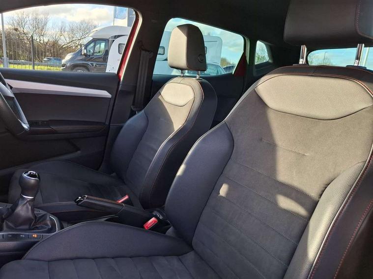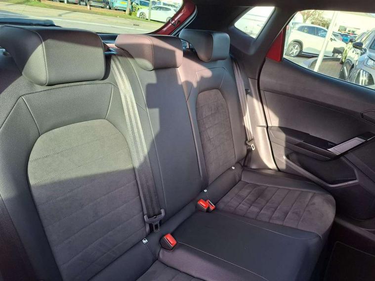 'Lights On' Reminder warning buzzer, 9.2" touchscreen navigation system with type C USB socket, Voice control and DAB/AM/FM radio, Auto start and stop system, Bluetooth audio streaming with handsfree system, Digital clock, Digital cockpit, E-call, Full link smartphone integration with mirror link, wireless apple carplay, Google android auto + USB Type C cable for apple and android devices, Lane assist, Low fuel warning light, Outside temperature gauge, Power Steering, Seat connect with safety, service, remote and online, SEAT drive profiles and ECO function, SEAT logo boot release, Speed limiter, Trip computer, Sports suspension, Auxiliary input socket, Radio/MP3 player, SD card slot, Steering wheel mounted controls, Anti theft roof antenna, Auto dimming rear view mirror, Automatic rain sensing wipers, Black door mirrors, Body colour bumpers, Body colour door handles, Brilliant black window surrounds, Dark tinted rear windows, Electric adjustable/heated/folding door mirrors, Electric front windows, Electric headlight adjustment, Electric rear windows, Front/rear fog lights, FULL LED automatic headlights with dynamic headlight range control, coming and leaving home, LED daytime running lights, LED tail lights, Rear side wing doors, Rear spoiler with FR twin exhausts, Rear wiper, Third brake light, 3 seat bench in 2nd row, 60/40 split folding rear seat, Ambient interior lighting, Chrome detailing and black headlining, Comfort seats, Dual zone climate control with combination filter, Front courtesy lights, Front cupholders x 2, Front reading lights, Gear shift indicator, Glovebox, Height adjustable front and rear headrests (five), Height adjustable front seats, Height/reach adjust steering wheel, Illuminated air vent surrounds, Illuminated boot, Instrument lighting with brightness control, Isofix, Leather multifunction flat bottomed sports steering wheel, Microsuede cloth upholstery, Passenger sunvisor, Single front passenger seat, Storage pockets on back of front seats, Sunvisors with mirror and driver side card holder, 3 point seatbelts on all 3 rear seats, ABS, Active front headrests, Child locks on rear doors, Electronic stability control, Energy recovery system, Front assist forward collision warning and autonomous emergency braking, Front driver and passenger side airbags with curtain airbag and front passenger airbag deactivation, Hill hold control, Multi-Collision braking, Seat belt reminder for front and rear seats, Tiredness recognition system, Tyre pressure monitoring system, Electronic engine immobiliser, Locking wheel bolts, Perimeter alarm and interior monitoring with backup horn and tow away protection, Remote central locking + deadlocks, 18" Performance machined alloy wheels in black and grey,