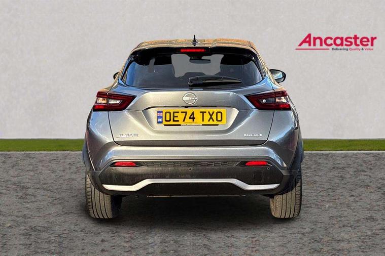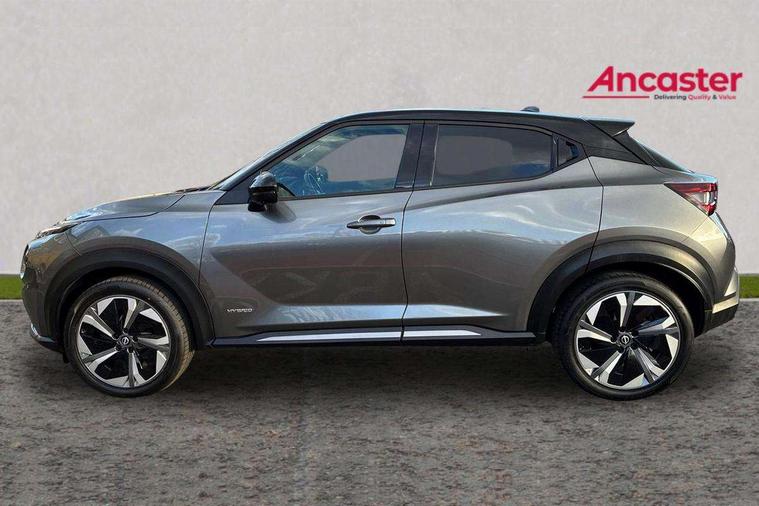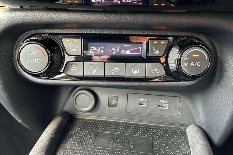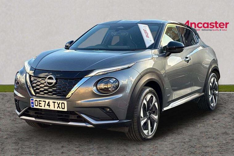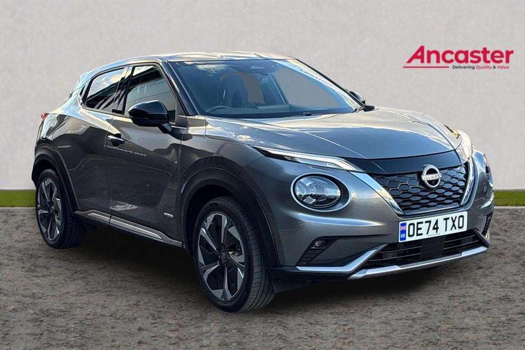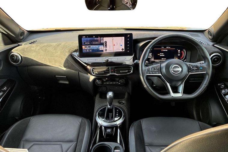 12.3" full colour TFT screen combimeter, Drive modes select (Eco, normal and sport), e-Pedal step, Emergency and breakdown call, EV mode switch, Front parking sensor, Intelligent driver alert system, Intelligent lane intervention, Lane departure warning system, Nissan connect 12.3" touch screen entertainment system, Nissan connect nav with TomTom traffic, Nissan connect services, Outside temperature sensor, Power Steering, Rear parking sensor, Stop/start button, Traffic sign recognition, Trip computer, Voice recognition, WiFi connectivity, Wireless Apple CarPlay and Google Android auto, Wireless Smartphone charger, 10 Bose speakers 6 speakers and 2 headrest speakers for driver/passenger seats, 2 X Rear console USB port, Bluetooth system, USB, Aux-in and 12V socket, Bose personal sound stage control, DAB Digital radio, Auto dimming frameless rear view mirror, Automatic hazard signal with emergency stop signal, Body colour door handles, Electrically adjustable door mirrors with integrated indicators, Follow me home headlights, Front and rear electric window with one touch driver window, Heated and auto folding door mirrors, High beam assist, LED 3rd brake light, LED daytime running lights, LED front fog lights, LED headlamps, LED rear fog lamp, LED rear lamps, One touch passenger window, Rain sensor windscreen wipers, Rear privacy glass, Rear side wing doors, Rear wiper, Roof spoiler, Shark fin roof antenna in solid Black, Three blink turn signal, 3 height adjustable rear headrests, 3 seat bench in 2nd row, 60/40 split folding rear seat, Automatic climate control, Card holder on driver sunvisor, Door ambient lighting, Driver seat back pocket, Driver side rear coat hanger, Driver/passenger sunvisors and vanity mirrors, Front and rear cabin lights, Front armrest, Front door pockets with bottle holders, Front head restraints, Front/rear passenger grab handles, Gear console ambient circle lighting, Height adjustable driver's seat, Internal chrome door handles, Leather gearshift knob, Luggage board, Luggage space lighting, Monoform sporty seats, Multifunction steering wheel, Passenger seat back pocket, Rear door bottle holders, Single front passenger seat, Smooth synthetic leather steering wheel, Synthetic leather kneepad, Telescopic steering wheel adjustment, Two cupholders in front centre console, Two rear isofix child seat anchorage points with top tether, Welcome light and console tray ambient lighting, Heat pack with height adjustable passenger seats - Juke, Interior personalisation pack - Juke, ProPilot pack - Juke Auto, Satin grey exterior personalisation pack - Juke, ABS with EBD and brake assist, Active ride control, Active Trace Control, Driver and passenger airbags, Driver and passenger side airbags, Electric handbrake with auto hold function, Electronic Stability Programme (ESP), Front and rear curtain airbags, Height adjustable seatbelts, Hill start assist, Intelligent emergency braking with pedestrian and cyclist recognition, Rear door child safety locks, Seatbelt reminder for driver/front passenger and rear seats, Three 3 point rear seatbelts, Traction control, Tyre pressure monitoring system, VDC Dynamic Vehicle Control, Alarm, Immobiliser, Intelligent key and start push button with walk away lock and approach unlock functions, Remote central locking, 19" Aero alloy wheels, Tyre puncture repair kit,