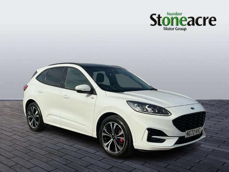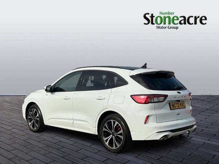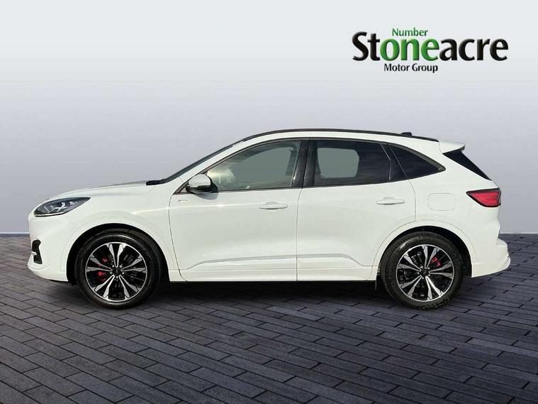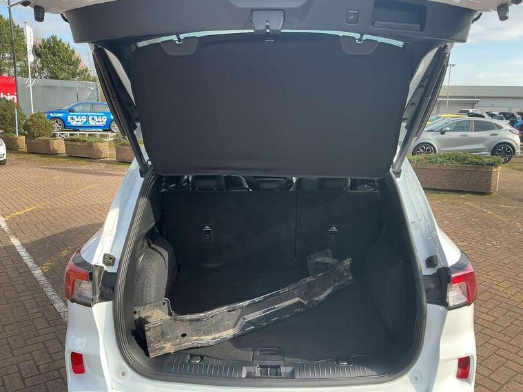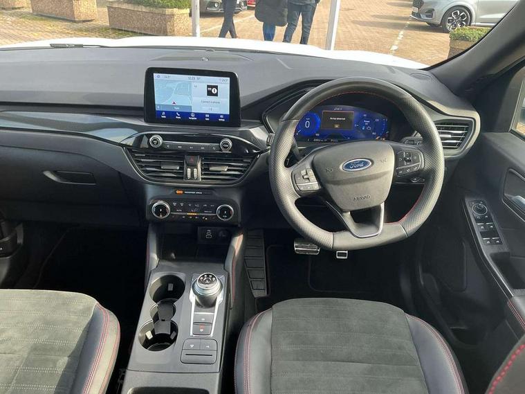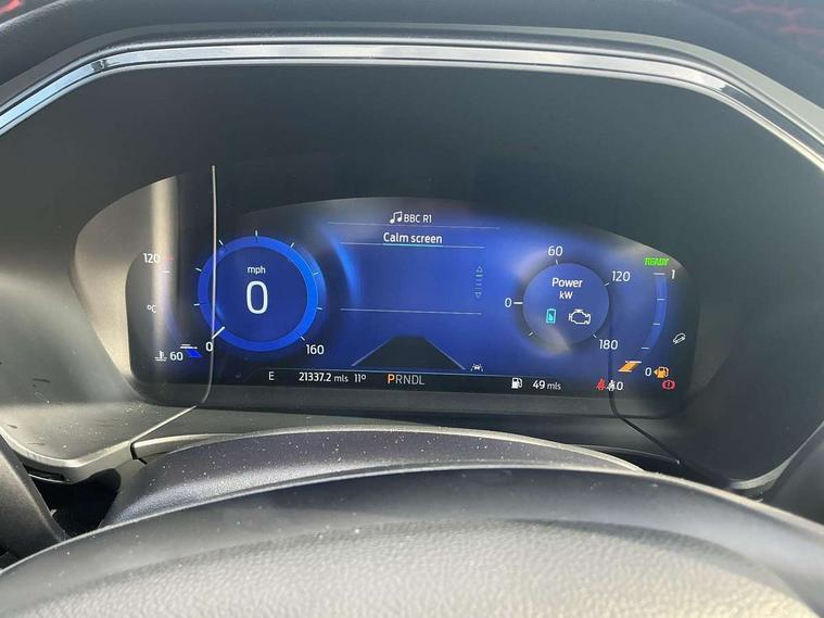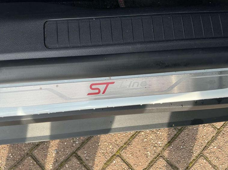 12.3" digital colour instrument cluster, Ford easy fuel, Ford SYNC 3 with 8" TFT LCD touchscreen, App Link, andriod auto/apple carPlay, emergency assistance and navigation with Ford pass connect, Front and rear parking sensors, Hands free power tailgate, Lane keeping aid with lane departure warning, Power assist steering, Rear view camera, Selectable drive modes, Service interval indicator, Sports suspension, Twist beam rear suspension, B&O premium audio system with 10 speakers and subwoofer, 2 USB ports, DAB radio/CD, Auto headlamps with high and low beam, Black roof rails, Day/night rear view mirror, Front LED fog lamps, Large rear spoiler, LED daytime running lights, LED rear lights, Power folding heated door mirrors with puddle lights, Power front/rear windows with global close, Power opening panoramic roof, Privacy glass, Quickclear heated windscreen, Rear side wing doors, Rear wiper, ST Line body styling kit with unique front and rear fascia and bumper, rear painted diffuser, front painted skid plates, dark mesh upper grille, ST Line front scuff plates, Third brake light, Twin exhausts, 10 way power adjustable drivers seat, 2nd row sliding seats with 60:40 split, 8 way manual passenger seat including lumbar support and height adjust, Alloy pedals, Centre console with electronic parking brake, Dark headlining and pillars, Electronic automatic temperature control (EATC), Flat bottomed leather steering wheel in sensico with red stitching, Front and rear head restraints, Heated passenger and driver seats, Heated rear seats, Heated steering wheel, Partial premium touch sensico leather upholstery with black cloth inserts and red stitching, Rear charging point, Single front passenger seat, Sports seats, ST Line front and rear floor mats, 3x3 point rear seatbelts, Airbags - front driver/passenger, front and rear curtain, Drivers knee airbag, Electronic stability control (ESC) and ABS, Ford MyKey Gen 2 safety system, Manual child proof rear door locks, Post collision braking, Pre collision assist with autonomous emergency braking, Rear seat Occupancy alert, Red brake calipers, Tyre pressure monitoring system, Engine immobiliser, Keyless entry and Ford power start button (Keyless start), Locking wheel nuts, Remote powered central double locking doors, Thatcham category 1 alarm,