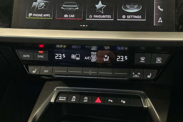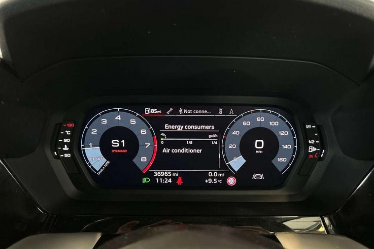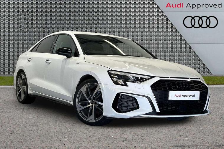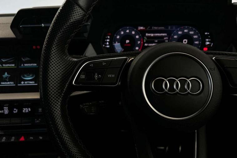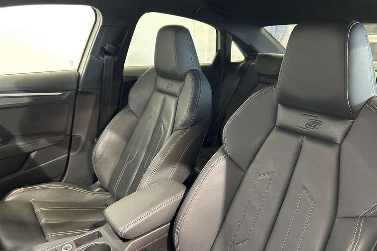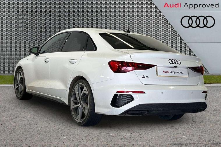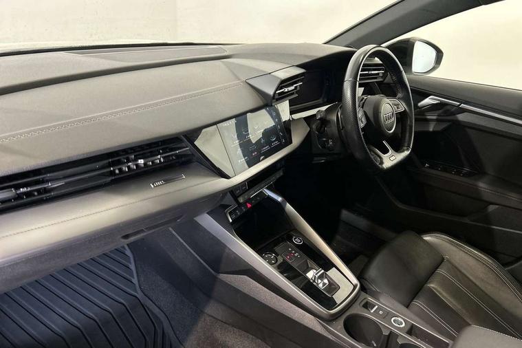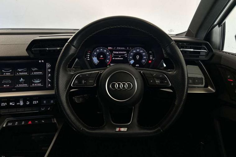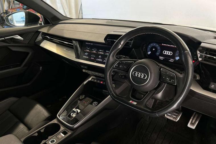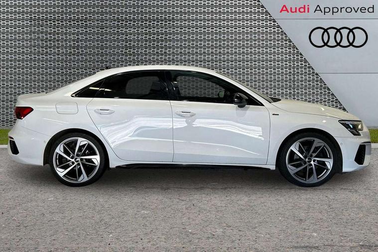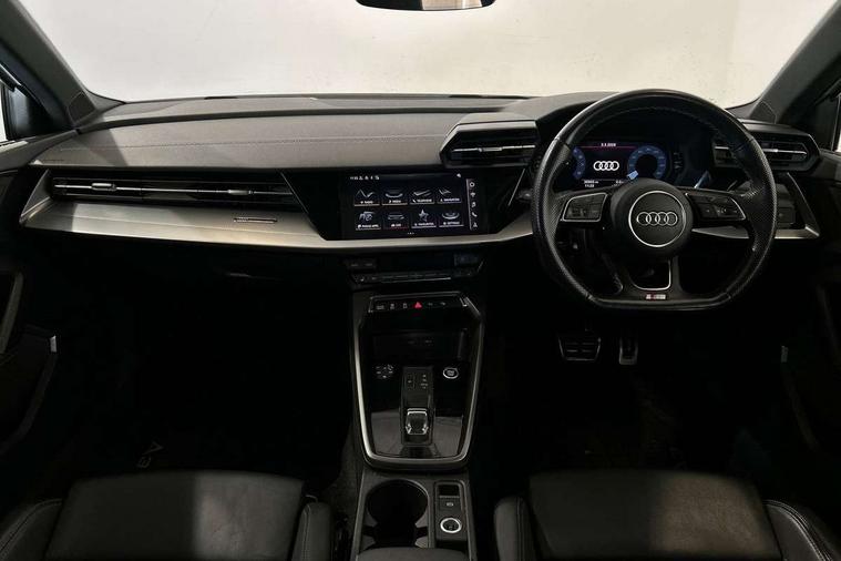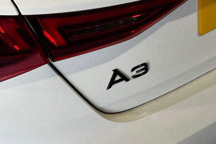 Audi drive select (Auto, Comfort, Dynamic, Efficiency and Individual), Audi smartphone interface, Audi Virtual Cockpit - 10.25" digital and colour instrument cluster, Automatic start/stop system with recuperation, Bluetooth interface, Camera based traffic sign recognition, Collision avoidance assistant, e-Call (emergency call), Electromechanical power speed sensitive steering, Lane departure warning system, MMI Navigation Plus with high resolution 10.1" colour touch screen display, Service indicator, Trip computer, Voice control system with natural language interaction, Sports suspension, 2xUSB-C connection with data and charging functions, 6 passive loudspeakers, CD player, DAB Digital radio, 3rd brake light, Acoustic glass windscreen, Audi beam uses LEDs to project the Audi logo onto the ground as you exit your A3, Auto dimming frameless rear view mirror, Electrically adjustable/heated/folding/auto dimming door mirrors with integrated LED indications + kerb view function for passenger side, Front electric windows, Illuminated door sills with aluminium inserts at the front with S logo, LED daytime running lights, LED headlights with LED rear lights and dynamic rear indicators, Light and rain sensors, Model and engine designation badges at rear, Privacy glass - dark tinted rear window, rear door and side windows, Rear boot, Rear electric windows, Rear side wing doors, S roof spoiler, 12V socket and storage compartment in front centre console, 3 seat bench in 2nd row, 3 spoke flat bottomed leather multifunction sport steering wheel with gear shift paddles, 4 way electrically adjustable lumbar support for driver and front passenger, 60/40 split folding rear seat bench, Black cloth headlining, Dual zone electronic climate control, Front and rear centre armrest in artificial leather, Front and rear headrests, Front/rear floor mats, Height and reach adjustable steering wheel, Interior lighting - glove compartment light and right hand side, Luggage compartment floor covering, Manual boot compartment lid, Single front passenger seat, Stainless steel pedals and front footrest in black, Twin leather upholstery with front sports seats S embossed logo, Aluminium interior elements pack - A3, Black styling pack - A3 Saloon/Black edition, LED interior lighting pack - A3 Saloon, 3x3 point rear seat belts, Driver and front passenger airbag with passenger airbag deactivation, Electronic Stabilisation Control (ESC) including ABS, ASR and EDL, First aid kit with warning triangle and 2 safety vests, Front side airbags with head airbags and interaction airbag, Pre-sense front with pedestrian and cyclist detection, Seatbelt monitoring, Tyre pressure loss indicator, Anti theft alarm, Anti-theft wheel bolts, Electronically operated child locks, Immobiliser, Remote control central locking, Aluminium air vent surrounds, Dark spectrum aluminium inlays, accent surfaces in the dashboard and centre console in platinum grey silk effect paint finish, 19" 5 arm trapezoid design alloy wheels in matt grey with diamond cut finish,