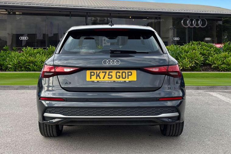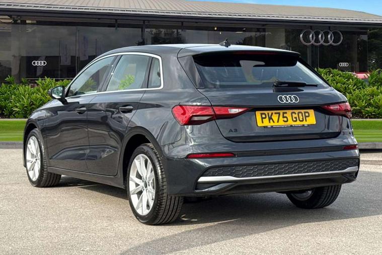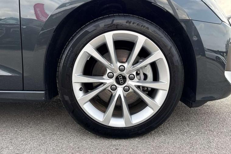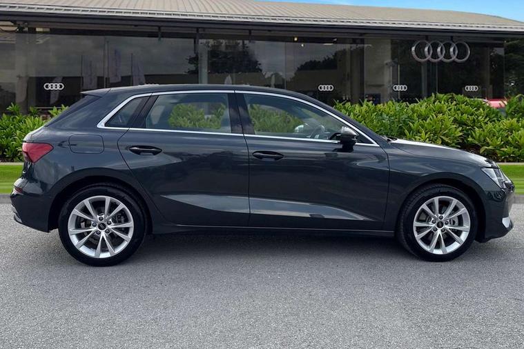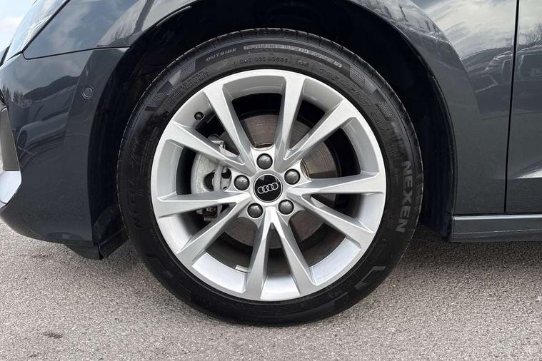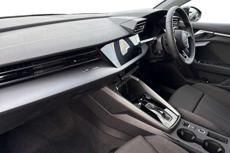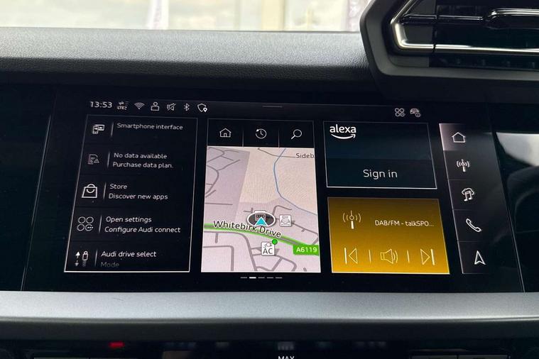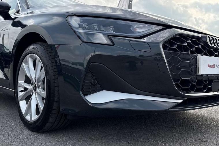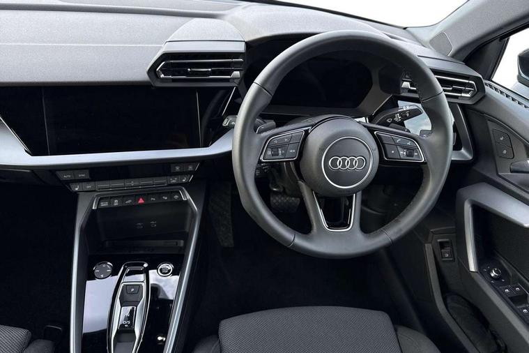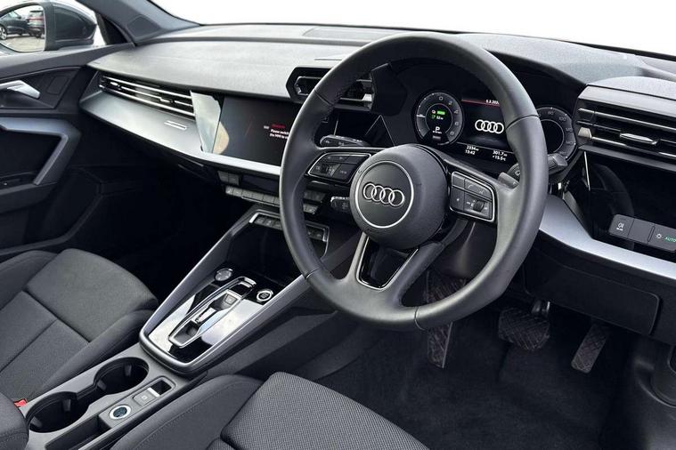 Adjustable speed limiter, Audi drive select, Audi smartphone interface with app store includes wireless Apple carplay, Android auto and Amazon alexa integration, Audi virtual cockpit plus - 12.3" full HD resolution dynamic digital instrument cluster, Automatic start/stop system with recuperation, Bluetooth interface, Camera based traffic sign recognition, Collision avoidance assistant, Cruise control, Distraction and Fatigue warning, e-Call (emergency call), Electromechanical power speed sensitive steering, Emergency assist, Lane departure warning system, MMI Navigation Plus with high resolution 10.1" colour touch screen display, Park Assist with parking system Plus, Service indicator, Trip computer, Voice control system with natural language interaction, 3 pin 10 amp domestic charging cable, CCS socket for DC charging, Charging cable for public charging, mode 3 (type 2), 32 A, Compact charging system, Industrial connector CEE 32 A, 230 V, length 1.6 m, Standard suspension, Type 2 socket for AC charging, Audi Phonebox light with wireless charging, Audi sound system - 10 loudspeakers including centre loudspeaker and subwoofer, DAB Digital radio, USB ports with charging function in the rear, 3rd brake light, Acoustic glass windscreen, Aluminium window trim, Auto dimming frameless rear view mirror, Body colour exterior mirrors, Body colour roof spoiler, Dipped beam, main beam, position light and turning light, Electrically adjustable/heated/folding/auto dimming door mirrors with integrated LED indications + kerb view function for passenger side, Exterior model badging, Front electric windows, Front radiator grill in high gloss dark chrome, Front side air inlets in grained matt black with silver frame, Heat insulating glass windscreen, LED daytime running lights, LED headlights and halogen rear lights, Light and rain sensors, Rear diffuser and grill in grained matt black with silver frame, Rear electric windows, Rear side wing doors, Rear window, rear door windows and rear side windows in clear glass, Rear wiper, 12V socket and storage compartment in front centre console, 3 seat bench in 2nd row, 3 spoke leather multifunction steering wheel with gear shift paddles, 3-zone deluxe automatic air conditioning, 4 way electrically adjustable lumbar support for driver and front passenger, 60/40 split folding rear seat bench, Black front and rear floor mats, Convenience auxiliary air conditioning, Front and rear headrests, Front centre armrest, Front door sill trims with aluminium inlay, Heated front seats, Height and reach adjustable steering wheel, Manual boot compartment lid, Manually adjustable front seats, Routine cloth upholstery with front sports seats, Seat side bolsters, Single front passenger seat, Steel grey cloth headlining, Aluminium interior elements pack - A3, LED interior lighting pack -A3, 3x3 point rear seat belts, Acoustic vehicle alerting system, Driver and front passenger airbag with passenger airbag deactivation, Electronic Stabilisation Control (ESC) including ABS, ASR and EDL, First aid kit with warning triangle and 2 safety vests, Front side airbags with head airbags and interaction airbag, Hill hold assist, Pre-sense front with pedestrian and cyclist detection, Seatbelt monitoring, Tyre pressure loss indicator, Anti theft alarm, Anti-theft wheel bolts, Electronically operated child locks, Immobiliser, Remote central locking with safelock, Black dashboard, Inlays in volcano grey fine paint finish, Tyre repair kit,
