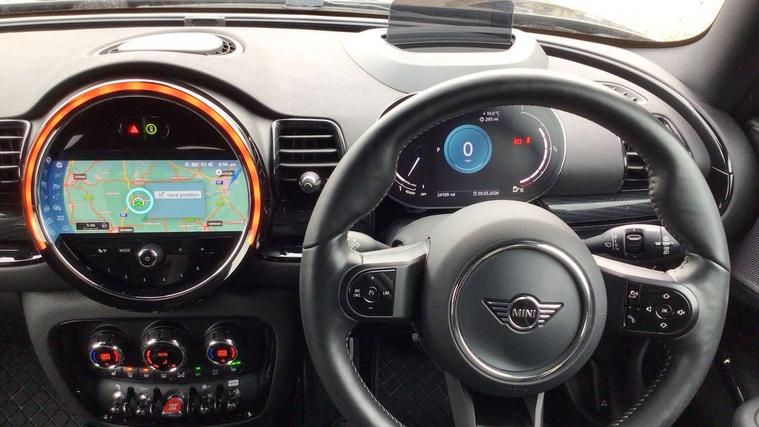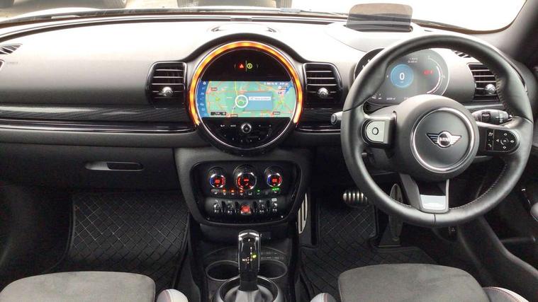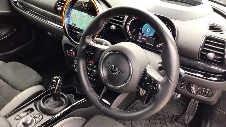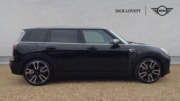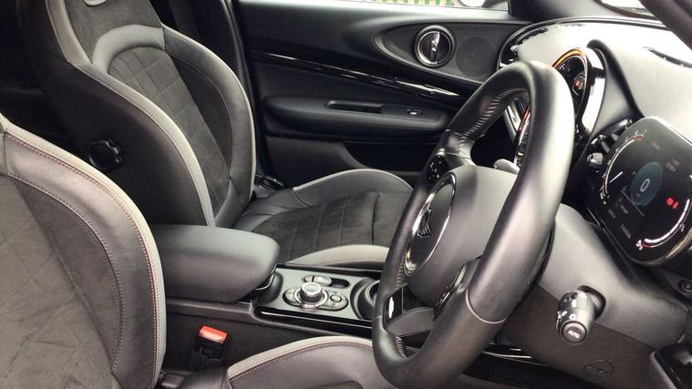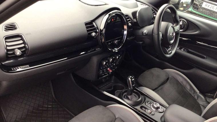 Active Guard incl speed limiting and lane departure functions with auto steering, and front collision warning with brake intervention, Automatic start/stop function with brake energy recuperation, Car sharing preparation, Compatible mobile phone bluetooth with audio streaming, Electro-mechanical speed dependant steering assistance, Instrument cluster, Mini E-call, MINI TeleServices, On board computer, Rear parking distance control, 7 Speed steptronic transmission with double clutch including electronic gear shifter, Double Vanos system, Fully variable valve control, High precision injection, Performance Control, FM tuner and DAB digital radio, A-panel shadow design with integrated scuttle trim, Body colour fuel filler cap, Door sill strips, Dynamic brake lights, Electric windows, Exhaust tailpipe, Heated rear window, Heated windscreen washer jets, John Cooper Works - aerodynamic kit (front and rear apron, spoiler), front and rear sport bumpers and part-painted side sills with door sill finishers, John Cooper Works rear spoiler, LED headlights with closed ring as daytime driving lights, LED rear light with union jack design, Left exhaust tailpipe with chrome finisher, Model logo on rear doors, Piano black exterior, Radiator grille, Rain sensor with auto headlights, Rear fog lights, Rear window wiper, Shadow design bonnet, Silver roof and mirror caps, Special metallic paint, Split rear doors, Sun/heat protection glass, White indicator lenses, 12V Accessory socket in centre console, 360L luggage compartment capacity, 4 lashing eyes in luggage compartment, 60/40 split folding rear seat, Anthracite headlining with grab handles and clothes hooks, Chrome interior highlights, Cupholders, English handbook, Floor mats, Glove compartment, Height and length steering column adjustment, Interior dashboard trim Shadow logo, Interior lighting with 12 basic colours selectable via toggle switch in roof, Interior tread plates in Shadow design, Isofix rear child seat preparation, John Cooper Works leather gearshift lever and handbrake gaiter, John Cooper Works sports seat with integrated headrest, adjustable thigh support and John Cooper Works logo, LED reading lights, vanity mirror lights, front foot well light and spotlight on front seats, Lower roof section Shadow logo, Manual air conditioning, Multifunction steering wheel, Nappa leather steering wheel with JCW badge, Stainless steel pedals, Storage compartments in doors, Sunvisors with vanity mirrors, Toolkit, Excitement pack - Clubman, Extended interior lighting pack - Mini Clubman, Navigation pack - Clubman, 2 tone horn, 3 point seatbelts on all seats, 6 Airbags - front, side, head and seat belt tensioners, Anti-lock braking system (ABS), DSC - Dynamic Stability Control, Electronic handbrake, Front and rear disc brakes, Tyre pressure monitoring system, Alarm system with tilt sensor, monitoring doors, bonnet interior and tailgate, Auto drive away locking, Deadlocking function, Electronic vehicle immobiliser, Locking wheel bolts, Start/stop toggle with keyless go, Piano black interior trim, 19" John Cooper Works circuit spoke alloy wheels, Tyre repair kit,
