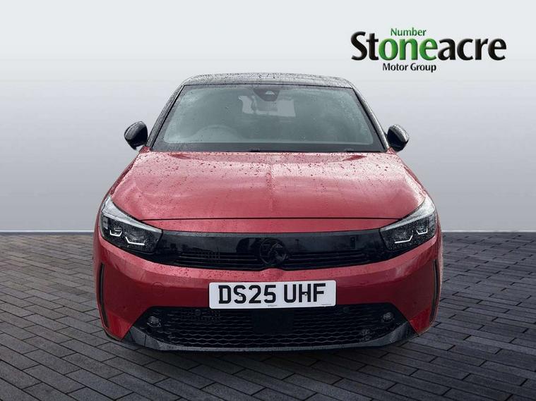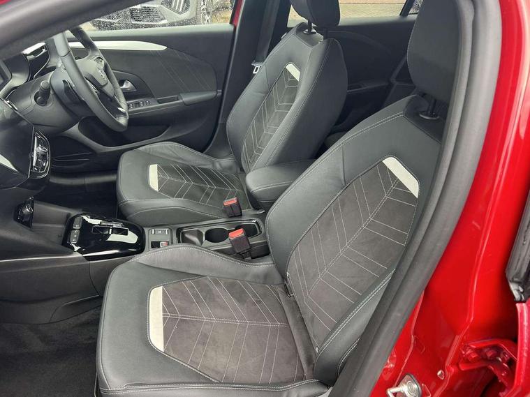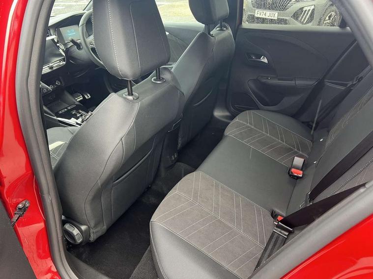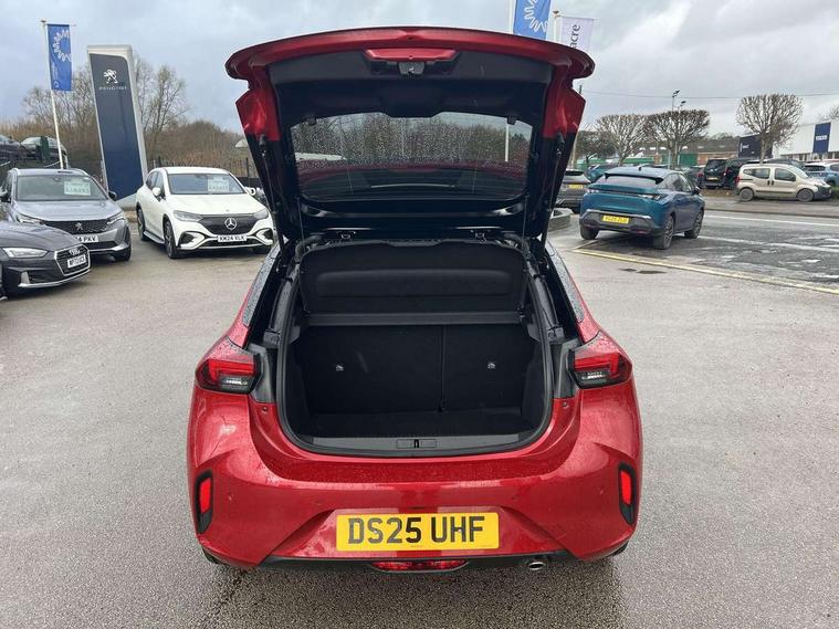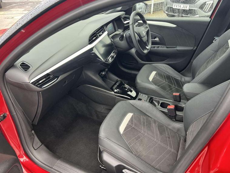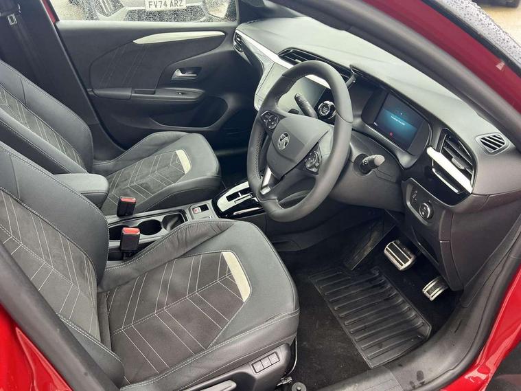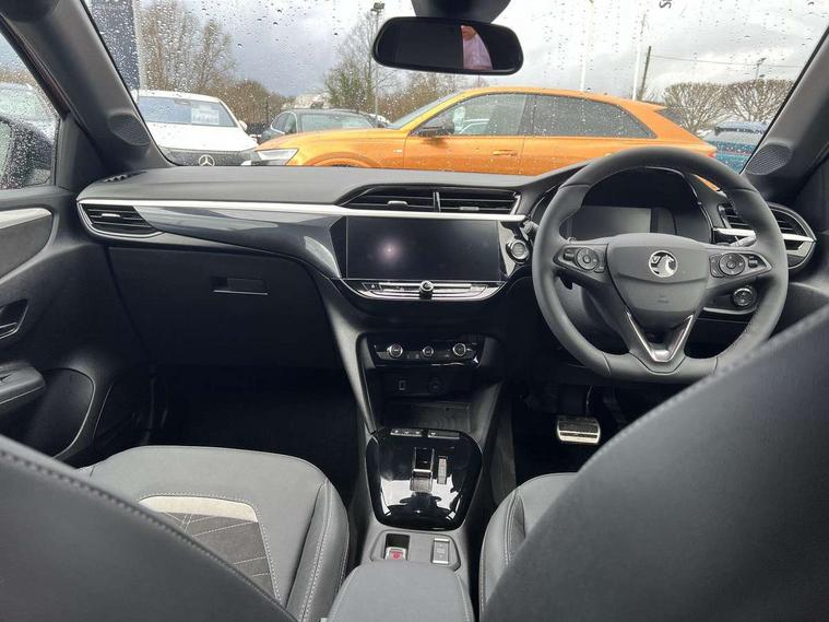 180 degree panoramic rear view camera, 2D/3D street level mapping, 7 inch digital instrument cluster display, Adaptive cruise control with intelligent speed limiter, Auto tele unit 3S vehicle communication system, Breakdown call (b-call), Central facia display with digital clock, outside air temperature and audio information, Drive modes (sport, normal, eco), Driver drowsiness alert system, E-call, Engine oil life indicator, Enhanced traffic sign recognition, European coverage, Extended speed sign recognition, Front and rear parking sensors, Front camera system, Instrumentation - Speedometer, rev counter, low fuel gauge warning light + water temperature gauge warning light, Lane departure warning, Lane keep assist, Lane positioning assist, Lights on audible warning, Live nav plus-Tom Tom, Real time traffic, parking prices, weather forecast, fuel prices, search for changing station, road safety alerts and speedcam alerts, MAP OTA updates, Multi function trip computer, POI (search), Pre conditioning of vehicle temperature, RDS with traffic programme, Remote check of battery level programming and charge management, Service indicator, Side blind spot alert, Smartphone projection, Speed sensitive power steering, Start/stop system, Vauxhall connect box, Vehicle status and information, Voice recognition, Wireless Apple CarPlay/Android Auto, Electronic returnless fuel system, Petrol Particulate Filter, Under body shield for aero, AM/FM stereo radio, Bluetooth A2DP audio streaming function (Advanced audio distribuition profile), DAB Digital radio, Multimedia Navi with 10-inch touchscreen, Rear USB port, Six speakers, Steering wheel audio, phone and cruise controls, USB type C port, 3rd brake light, Automatic headlamp levelling, Automatic headlight control system, Black door mirror housings, Black Griffin logo and vizor frame, Black lower side window mouldings, Body colour door handles, Body colour front and rear bumpers, Bonnet/headlight/wiper structure, Corsa lettering in tailgate, Dark tinted rear side windows + tailgate window, Electrically adjustable and heated door mirrors, Electrically folding door mirrors, Electrically operated front and rear windows with safety auto reverse and one touch up/down facility, Electrochromic automatic anti-dazzle rear view mirror, Glazed tailgate and heated rear window with wash/wipe facility, Hazard warning lights, Headlamps for left side traffic, High beam assist, High gloss black finish B pillar, High gloss black honeycomb lower grille with black badging, Intelli-Lux Matrix LED Headlights, LED daytime running lights, LED front fog lights, LED tail lamp, Rain sensitive windscreen wipers, Rear fog lamp, Rear reversing lights, Rear side wing doors, Rear wiper, Shark fin aerial, Solar heat absorbing windscreen and windows, Sports front and rear body styling for upper and lower bumper design, Two speed windscreen wipers with variable intermittent wipe, Windscreen and side window demist vents, 12V power sockets, 3 bench rear seats in 2nd row, 4 speed fan with illuminated controls, 6 way manual adjustable co-driver seat height up/down, reach fore/aft, backrest upright/recline, 6 way manual adjustable driver seat with massage function height up/down, reach fore/aft, backrest upright/recline, 60/40 split folding rear seat, Alloy effect sport pedals, Black headliner, Cabin particulate filter - removes dust, airborne particles and pollen, Comfort front seats, Driver's seat lumbar support, Driver/passenger sunvisors with vanity mirrors + covers, Electronic climate control (ECC), Flat bottomed steering wheel, Four adjustable facia vents, Front centre armrest with storage, Front cupholder, Front headrests, Height adjustable head restraints, Illuminated glovebox with lid, Interior courtesy light, Internal chrome door handles, LED ambient lighting, LED boot light, Polyurethane gear knob/lever, Reach and rake adjustable steering column, Rear cupholder, Rear headrests, ReNewKnit upholstery, Right hand drive (RHD), Single dome lamp with dual front reading lamps, Single front passenger seat, Standard floor mats, Two litre open door pockets, Vegan leather steering wheel, Winter pack - Corsa, 3 rear 3 point seatbelts, Anti-lock braking system (ABS), Cornering brake control, Deactivation switch for front passenger's airbag, Drag torque control, Driver and front passenger airbags, front seat side impact airbags, full size curtain airbags, EBD - Electronic brakeforce distribution, Electrical child lock system in rear door latch, Electronic parking brake, Electronic Stability Programme (ESP), Emergency brake assist, Enhanced automatic emergency braking, Forward collision alert, Front seatbelt unfastened audible warning and warning light, Front ventilated disc brakes - 381mm, Hill hold and start system, ISOFIX child seat mountings incorporating top tether anchor points located on second row rear seats, Rear disc brakes - 356mm, Seatbelt pretensioners, Single tone horn, Straight line stability control, Traction control, Tyre deflation detection system, 2 keys one folding with integral remote, Electronically protected audio equipment, Engine deadlock and immobiliser, Freewheeling door locks, Keyless entry and start, Locking wheel nuts, Remote control central locking, Remote control security alarm system, Remote locking fuel filler flap, Steering column lock, Visible vehicle identification number, Silent black fascia with blanc banquise insert, 17" Diamond-cut hi-gloss black alloy wheels,