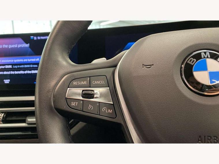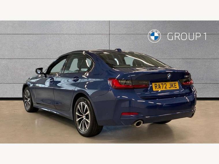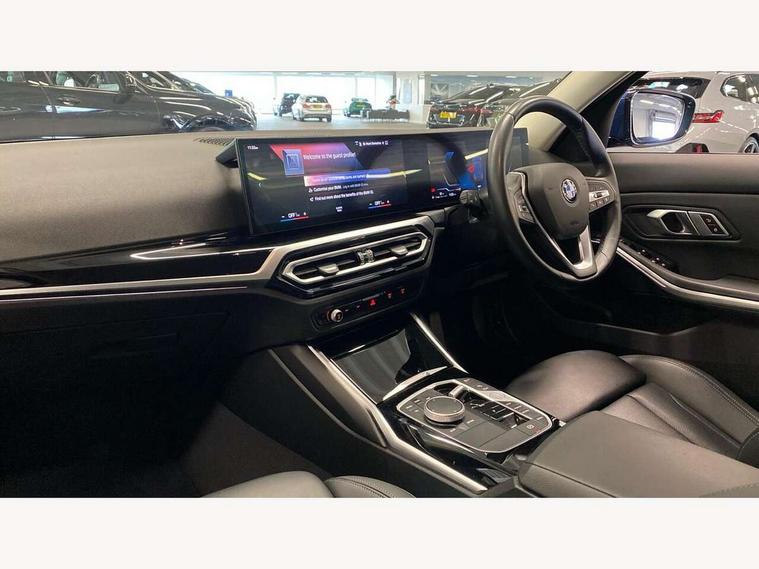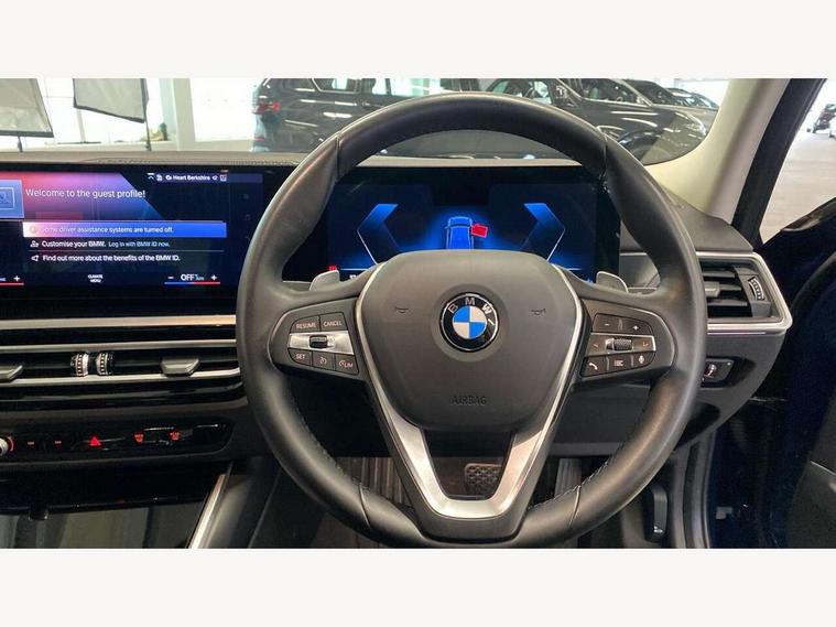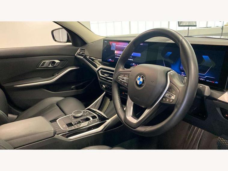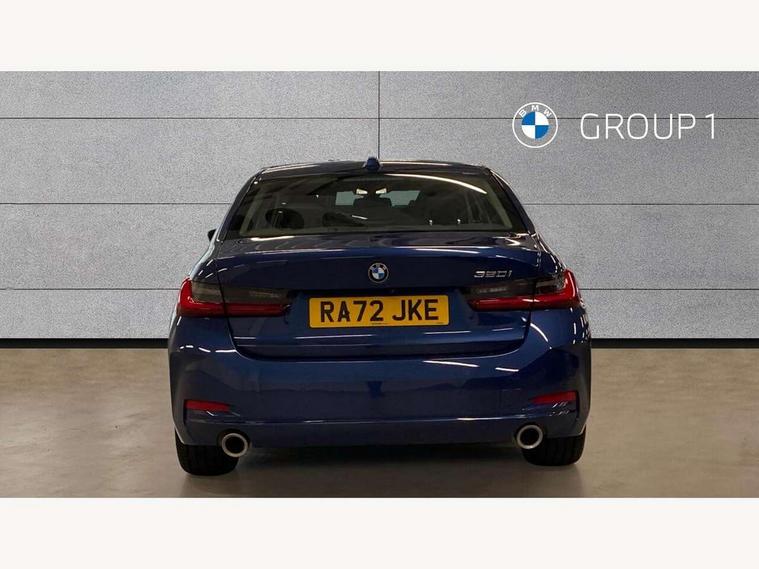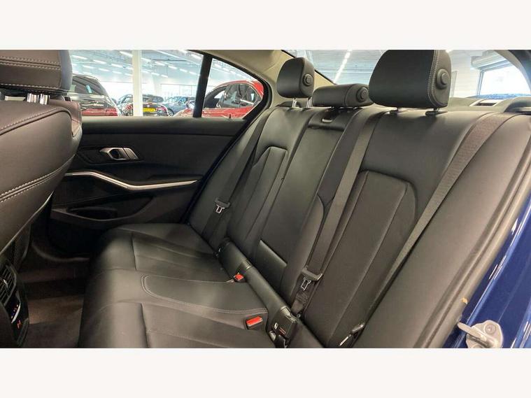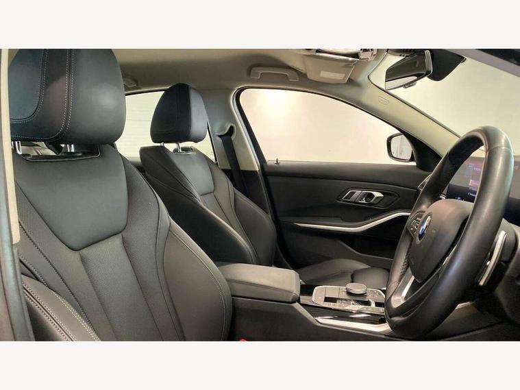 Active guard plus, Attentiveness assist, Automatic Start/stop button, BMW iDrive, BMW Teleservices, Condition based service, ConnectedDrive Services, Driving experience switch, Oil sensor for level and grade, Preparation for driver assistance, Shifting point display, Variable sport steering, Double joint spring strut front axle, Electronic differential lock control (EDLC), Fuel tank breather system, Sport automatic transmission with steering-wheel mounted gearshift paddles and launch control, Standard suspension, DAB tuner, 3rd brake light, Acoustic glazing, Automatic headlight beam throw control with load dependent regulating reaction, dynamic compensation of braking dive and acceleration squat, BMW emblem, engine compartment lid and tailgate, BMW kidney with 8 grille struts per segment in high gloss black and frame in high gloss chrome, Body colour roof fin, Door sill strips, Electric windows - front and rear, with open/close fingertip control, anti-trap facility and comfort closing, Follow me home headlight function, Front and rear bumper system with replaceable deformation elements, Front apron plastic in body colour, Fuel filler flap - right rear in body colour, Heated washer jets, High gloss shadow line exterior trim, Illuminated bow type door handles in body colour drivers side with door lock, Interior rear view electrochromatic mirror with automatic anti dazzle function, LED rear lights, Licence plate panel integrated into front bumper and tailgate, Matt black B-pillar finsher, Matt black window recess cover, Model designation on right side of tailgate, One piece front bumper cover including towing eye cover in body colour, Rain sensor with automatic headlight activation, Rear boot, Rear side wing doors, Reversing lights, Side frame decorative moulding black matt, Visible exhaust tailpipe finisher, Welcome lights in interior and door handle area, 12V power socket in front storage compartment, 2 front cupholder in centre console with clamping elements and matt black inlay, 3 seat bench in 2nd row, 3 zone automatic air conditioning, 40:20:40 split folding rear seat with loading system, Ambient inside door handle light, Ambient light design projected onto the left and right entering and exiting area, Ambient lighting front and rear with 9 selectable colours, Ambient storage compartment lighting in the centre console, Armrest integrated in front and rear door trim + front centre console armrest, BMW ID, Contour lighting in instrument panel and door trim panel, Cruise control operation in steering wheel, Folding rear centre armrest with 2 cupholders, Front and rear ambient footwell lighting, Front and rear door exit lighting (left / right), Front and rear headrests, Front and rear reading lights, Front and rear velour floor mats, Front sport seats, Heated front seats, Height adjustable mechanically and infinitely variable steering column, Illuminated armrest storage compartment, Illuminated glove compartment, Illuminated luggage compartment, Lashing eyelets in luggage compartment, Make-up mirror lights, Sensatec perforated upholstery, Single front passenger seat, Standard seat for driver and passenger with manual adjustment, Sunvisors with vanity mirrors and ticket pocket, Three spoke multifunction sport leather steering wheel, Toolkit located in luggage compartment, Connected pack professional - 3 Series Saloon/Touring, Interior and exterior mirror pack - 3 Series Touring/Saloon, Storage compartment pack - 3 Series Saloon/Touring, 3x3 point rear seatbelts, BMW emergency call, Child locks on rear doors, Crash sensor activating of airbags, Unlocking doors, hazard warning lights, interior light, safety battery terminal, Driver and front passenger with seat occupancy detection for driver's and passenger side, Driver and passenger side airbags, body protection at side and airbags deploy from seat backrests, Dynamic brake control, Dynamic stability control + (DSC+) - Anti-lock Braking System (ABS) with brake assist and cornering brake control + Automatic Stability Control (ASC), Dynamic Traction Control - DTC, Electric parking brake including automatic hold function and automatic release of the parking brake when driving off, Head airbags in 1st and 2nd row, head protection at side, curtain airbags open from headliner above 1st and 2nd row, Plastic fuel tank, Side impact protection, Tyre pressure monitoring with three level warning strategy, Ventilated front and rear disc brakes, Warning triangle and first aid kit, Alarm system, Centre lock switch, Closing system with central locking, Electronic vehicle immobiliser, High gloss black interior trim, 17" V spoke Obrit grey alloy wheels - Style 775 including BMW mobility kit,