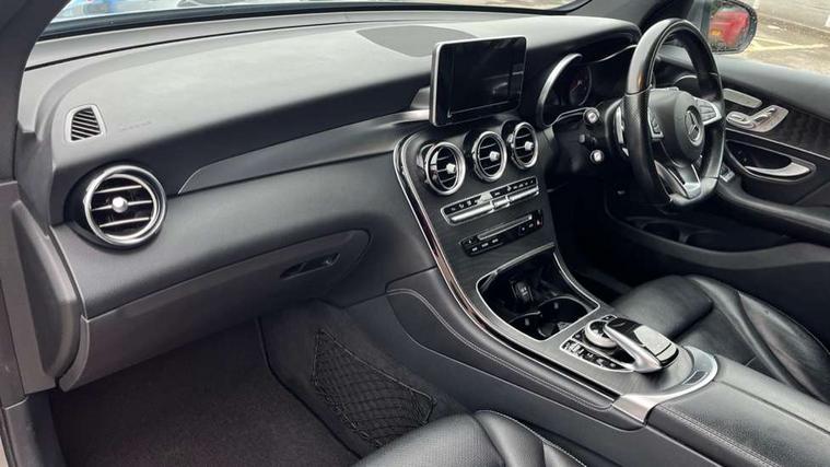 7" colour screen, Active park assist with parktronic system, Attention assist, Bluetooth interface for hands free telephone, Collision prevention assist, Crosswind Assist, Cruise control with speedtronic variable speed limiter, DYNAMIC SELECT with a choice of driving modes (ECO, Comfort, Sport, Sport+ and Individual), Garmin Map Pilot navigation system with SD card, touchpad and voice control, Multi function trip computer, Outside temperature gauge, Power opening/closing tailgate, Remote boot release, Speed sensitive steering, Diesel particulate filter, 5 speakers, DAB Digital radio, Frontbass loudspeakers, Mercedes Audio 20 radio/single CD + telephone keypad, USB connection, Adaptive brake lights, Aerodynamic rear spoiler, AMG bodystyling, Automatic headlights, Body coloured bumpers, Electric panoramic sunroof with sunblind, Electric windows one touch open/close, Electrically adjustable and heated door mirrors, Exhaust tailpipe finisher, Heated windscreen washers, LED daytime running lights, LED rear lamps, Privacy glass (to rear of B post), Rain sensor windscreen wipers, Range adjustable headlights, Rear wiper, Tinted glass all round, 2 cupholders in front centre console, 2 way rear head restraints, 3 spoke flat bottom AMG steering wheel in nappa leather, 4 way adjustable front head restraints, 4 way electric lumbar support for driver and front passenger, 40:20:40 split folding rear seats, AMG floor mats, AMG sports seats, Auto Mercedes-Benz child seat recognition sensor, Automatic climate control, Black roof lining, Dividing net - rear, Electric front seat height adjustment, Front door sills with Mercedes Benz lettering, Gearshift paddles, Heated front seats, Height/reach adjustable steering column, Illuminated glovebox, LED interior illumination, Multifunction steering wheel, Rear top tether child seat ISOFIX attachment, Sports pedals with stainless steel surfaces and rubber studs, Sunvisors with illuminated vanity mirrors, Easy-pack load compartment cover, Interior lighting pack - GLC, Memory pack - GLC, Mirror pack - GLC, Storage pack - GLC, 3 rear 3 point seatbelts, ABS with Brake Assist, Active bonnet, Adaptive brake system, Child proof door locks, Drivers knee airbag, Dual stage driver/passenger airbags, Electronic parking brake, ESP with ASR, Front and rear seatbelt reminder, Front passenger seat occupancy sensor, Front side airbags, Tyre pressure monitoring system, Warning triangle and first aid kit, Window airbags, Alarm system/interior protection/immobiliser, Automatic door locking, Keyless entry and keyless start, Remote central locking, Tyre inflation kit,