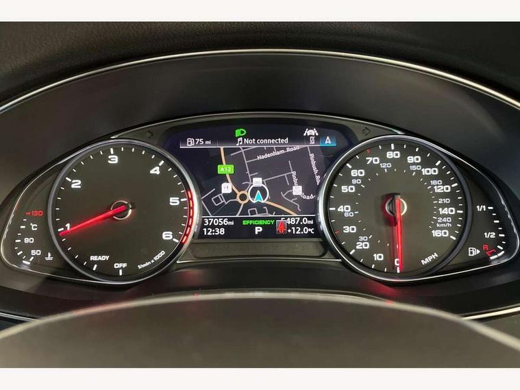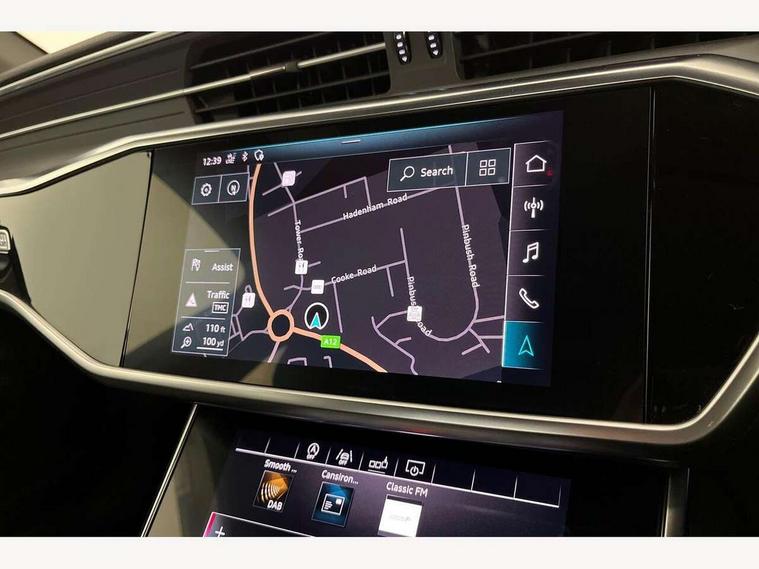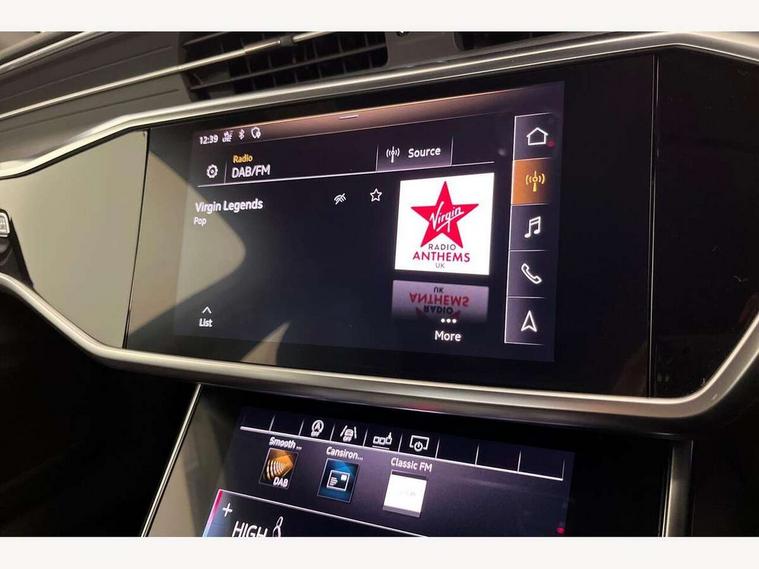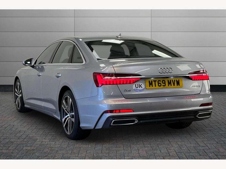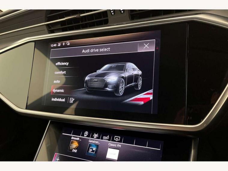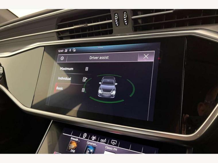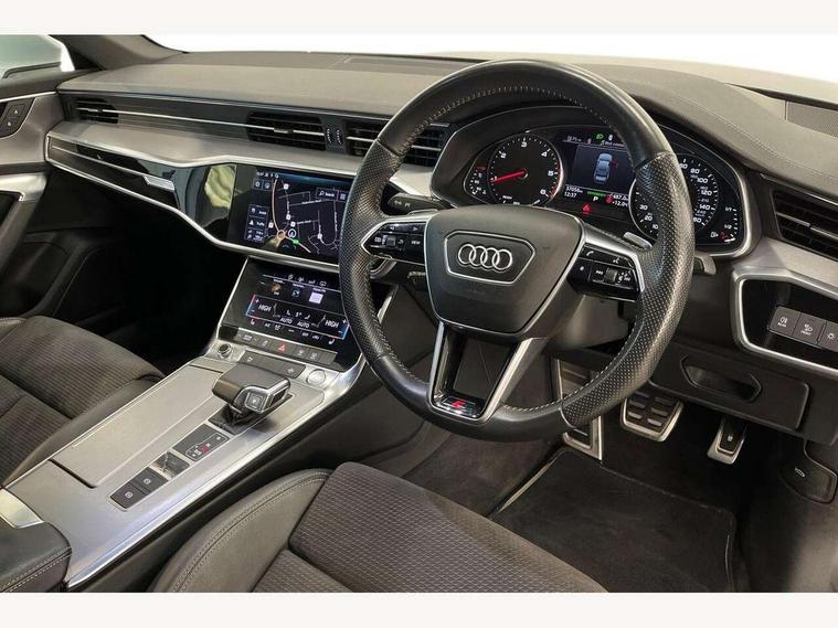 7" high resolution colour driver information display system, Amazon alexa Integration, Audi connect safety and service (e-call), Audi drive select, Audi parking system plus with front and rear sensors, Audi smartphone interface, Automatic start/stop system with coasting functionality, Bluetooth interface, Electric boot lid release, Lane departure warning system, MMI navigation with MMI touch + twin touch screens 8.8" and 8.6" with haptic and acoustic feedback, Progressive steering, Service interval indicator, Voice control system, Diesel particulate filter, Sports suspension, Audi music interface, Auxiliary input socket, DAB Digital radio, USB connection, Body coloured door mirrors, Electric front/rear windows, Electrically adjustable, heated and folding door mirrors with driver memory function and integrated LED indicators, Frameless auto dimming interior rear view mirror, Headlight washers, Heat insulating glass in side and rear windows, LED signature front daytime running light, Matrix LED headlights with dynamic rear indicators, Privacy glass, Radiator grille in titanium black matt, single frame in chrome and horizontal struts in matt aluminium silver, Rain and light sensors, S line air inlet design with inlay in matt aluminium, S Line badge on front fender, S Line front and rear bumpers, S line rear diffuser and grille in matt black with matt aluminium tailpipes, S Line side skirts, Signature rear LED light design, Windscreen with acoustic glazing, 2 zone deluxe electronic climate control, 4 way electric lumbar support for driver and front passenger, 40/20/40 split folding 3 rear seat bench in 3 parts with rear centre armrest, Black cloth headlining, Electrically adjustable front seats with driver memory, Front centre armrest, Front head restraints, Heated front seats, Height/reach adjust steering wheel, Illuminated door sill trims with S logo, Illuminated sun visors with vanity mirrors, ISOFIX child seat mounting and Top Tether with front passenger airbag deactivation, Leather gear knob, Leatherette on upper instrument panel and door shoulders, Rear headrests, S line front and rear floor mats with contrast stitching, Stainless steel pedals and foot rest, Tool kit and car jack, LED Interior Ambient Lighting Pack - A6, Non smoking pack - A6, 3 point seatbelts on all seats, Airbags - Front side, front and rear including head, Audi pre-sense front, EBD - Electronic brakeforce distribution, Electromechanical parking brake, Electronic Stability Control (ESC) including ABS, ASR and EDL, Extended pedestrian protection measures, Seatbelt monitoring, Tyre pressure warning light, Warning triangle and first aid kit, Anti theft alarm with tow away protection, Anti-theft wheel bolts and wheel loosening detection, Immobiliser, Keyless Go, Remote central locking,