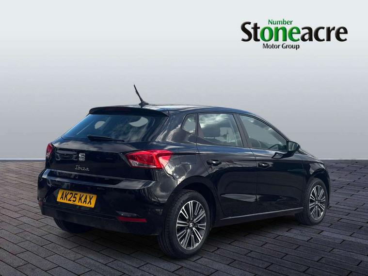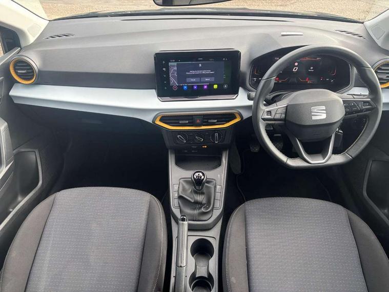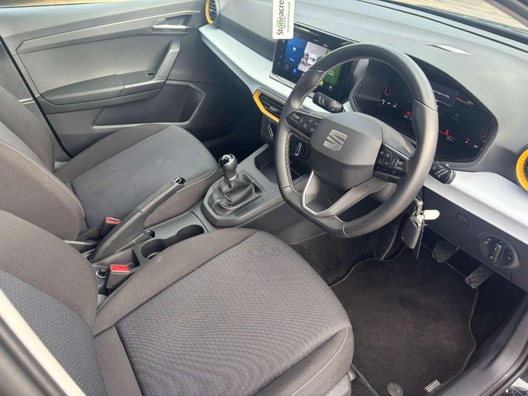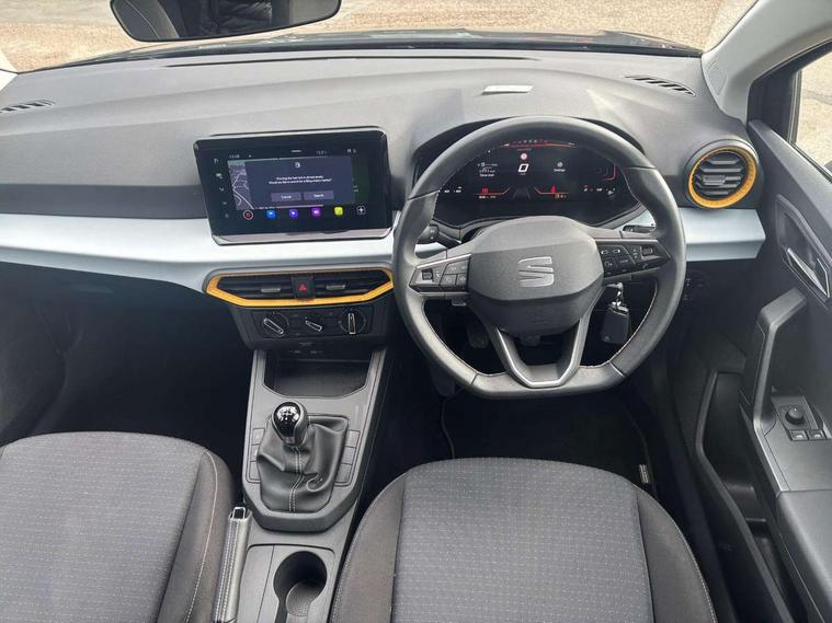 'Lights On' Reminder warning buzzer, 8" Digital cockpit, 9.2" touchscreen navigation system with type C USB socket, Voice control and DAB/AM/FM radio, Auto start and stop system, Bluetooth audio streaming with handsfree system, Cruise control, Digital clock, E-call, Full link smartphone integration with mirror link, wireless apple carplay, Google android auto + USB Type C cable for apple and android devices, Lane assist, Low fuel warning light, Outside temperature gauge, Power Steering, Rear parking sensor, Seat connect plus with safety, service, remote and online, SEAT logo boot release, Speed limiter, Traffic sign recognition, Trip computer, Comfort suspension, 6 speakers, Auxiliary input socket, Radio/MP3 player, SD card slot, Steering wheel mounted controls, Anti theft roof antenna, Body colour bumpers, Body colour door handles, Body colour door mirror caps, Dimming interior rear view mirror, ECO LED automatic headlights and LED daytime running lights, Electric front windows, Electric headlight adjustment, Electrically adjustable door mirrors, Front/rear fog lights, Halogen tailights, Rain sensor, Rear side wing doors, Rear wiper, Third brake light, 3 seat bench in 2nd row, 60/40 split folding rear seat, Air conditioning with dust and pollen filter, Chrome interior detailing and grey headlining, Cloth upholstery, Comfort seats, Front courtesy lights, Front cupholders x 2, Front reading lights, Gear shift indicator, Glovebox, Height adjustable front and rear headrests (five), Height adjustable front seats, Height/reach adjust steering wheel, Illuminated boot, Instrument lighting with brightness control, Isofix, Leather multifunction flat bottomed sports steering wheel, Passenger sunvisor, Single front passenger seat, Sunvisors with mirror and driver side card holder, Safety and driving pack (S) - Ibiza, 3 point seatbelts on all 3 rear seats, ABS, Active front headrests, Child locks on rear doors, Electronic stability control, Energy recovery system, Front assist forward collision warning and autonomous emergency braking, Front driver and passenger side airbags with curtain airbag and front passenger airbag deactivation, Hill hold control, Multi-Collision braking, Seat belt reminder for front and rear seats, Tiredness recognition system, Tyre pressure monitoring system, Electronic engine immobiliser, Locking wheel bolts, Remote central locking + deadlocks, 16" Design machined alloy wheels in Nuclear grey,
