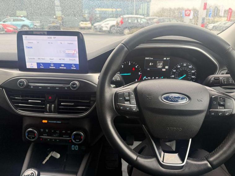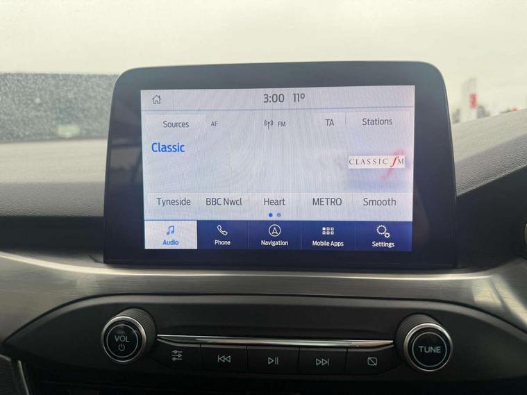 4.2" TFT coloured cluster, Bluetooth system, Digital clock, Easy fuel capless refuelling system, Eco mode, Ford SYNC 3 navigation with 8" TFT touchscreen, DAB radio and app link Android auto/Apple carplay, Intelligent speed assist, Lane keeping system - lane keeping alert and lane keeping aid, PAS, Selectable drive mode, Trip computer, Diesel particulate filter, 2 USB ports, Aux input, Auto dimming rear view mirror, Auto headlamps (on/off), Automatic rain sensing wipers, Body coloured bumpers, Body coloured door handles, Body coloured electrically operated and heated door mirrors with side indicators, Electrically operated front and rear windows with one touch opening and closing, Front fog lamps with cornering function, Front variable intermittent wipers with electric wash, Heated rear window, LED daytime running lamp, LED reflector headlamps, Power folding door mirrors, Quickclear heated windscreen, Tailgate wash/wipe, Upper grille with chrome surround and horizontal bars, 3 spoke Sensico trimmed steering wheel with integrated audio controls, Ambient lighting, Cloth upholstery, Driver's lumbar support, Dual zone electronic air temperature control, Front floor mats, Front passenger seat manual height and lumbar adjust, Height adjustable front headrests, Isofix child seat preparation, Leather gear knob, Reach + rake adjustable steering column, Rear centre headrest, 3x3 point rear seatbelts, ABS+Electronic Brake force Distribution, Auto hold function, Driver airbag, Electronic parking brake, Electronic stability control, Front and rear seatbelt reminder, Front inertia reel height adjustable seatbelts with pre-tensioners, Front passenger airbag, Front side airbags, Hill start assist, Passenger airbag deactivate switch, Post collision braking, Pre collision assist with autonomous emergency braking and pedestrian/cyclist detection, Side curtain airbags, Three rear inertia reel lap/diagonal seatbelts, Tyre pressure monitoring system, Ford keyfree system with Keyless entry and keyless start/sleep mode key fob, MyKey system, Remote central locking & engine immobiliser, Thatcham category 1 alarm, 16" 15 spoke sparkle silver alloy wheels, Mini steel spare wheel,