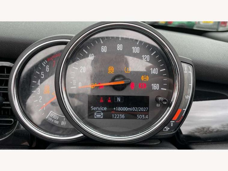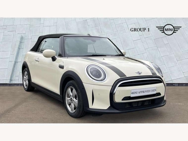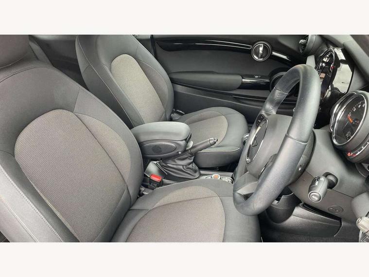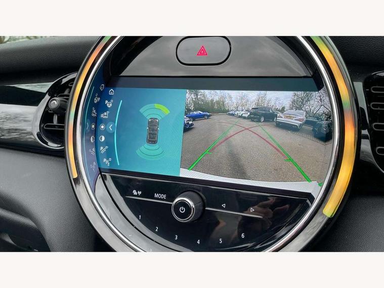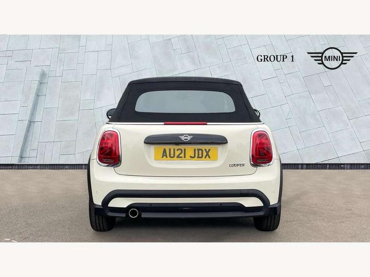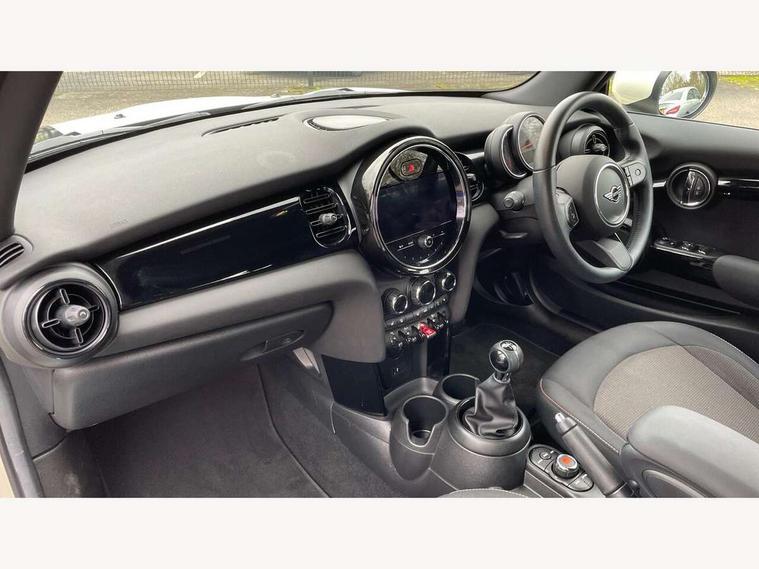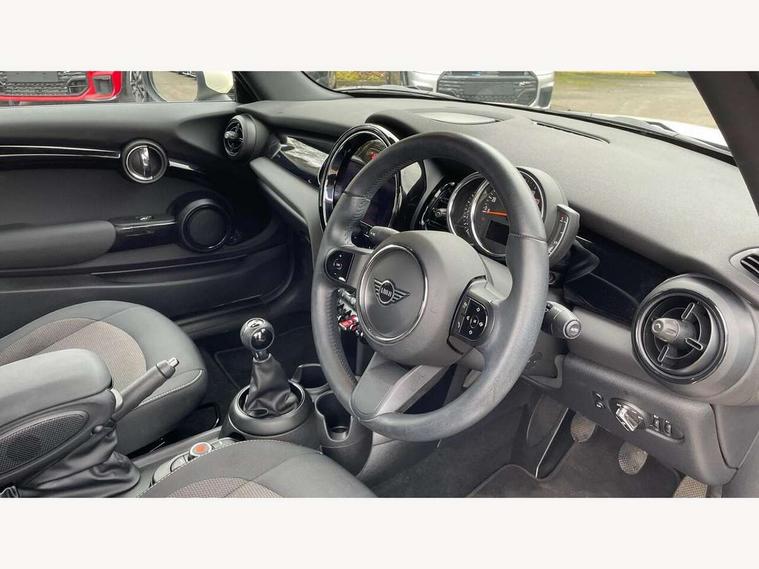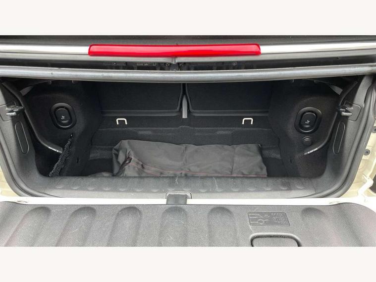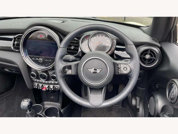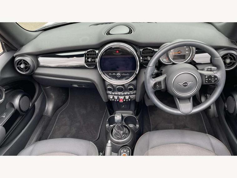 Automatic start/stop function with brake energy recuperation, Compatible mobile phone bluetooth with audio streaming, Cruise control with brake assist, Electro-mechanical speed dependant steering assistance, Instrument cluster, Mini E-call, MINI TeleServices, On board computer, Rear park distance control, Service interval indicator, 6 Speed manual transmission including gear change indicator display, Double Vanos system, Fully variable valve control, High precision injection, Performance Control, 4 speakers, 8.8" touchscreen with LED ring, FM tuner and DAB digital radio, Automatic headlight activation switch, Body colour fuel filler cap, Chrome border high gloss black slats radiator grille, Dynamic brake lights, Electric windows, Fully electric black softtop with integrated sunroof functionality, Heated rear window, Heated windscreen washer jets, LED headlight with closed ring and daytime driving lights, Left exhaust tailpipe with chrome finisher, Metal door sill strips with MINI imprint, Model logo Cooper on right of tailgate, Rain sensor window wipers, Rear fog lights, Rear LED lights with union jack design, Side scuttle panel with integrated indicator, Sun/heat protection glass, White indicator lenses, 12V Accessory socket in centre console, 4 lashing eyes in luggage compartment, 50/50 split folding rear seats, Chrome interior highlights, Colour line - Carbon black, Cupholders, Easy Load boot handles, Front and rear head restraints, Front and rear isofix with front passenger airbag deactivation, Glove compartment, Height and length steering column adjustment, Interior lighting with 12 different colours running across the dashboard, underneath door bezel illuminated laser engraved design on central display, Leather gearshift lever and handbrake gaiters, LED reading lights, vanity mirror lights, front foot well light and spotlight on front seats, Manual air conditioning, Mechanical seat adjustment, driver seat height adjust, forward/back and front seats backrest, Multifunction steering wheel, Storage compartments in doors, Sunvisors with vanity mirrors, Three spoke steering wheel with speed limiter and audio/communication controls, Velour floor mats, Convertible pack with comfort access - Mini Convertible, 3 point seatbelts on all four seats, 6 Airbags - front, side and seat belt tensioners, Active rollover protection, Anti-lock braking system (ABS), DSC - Dynamic Stability Control, Front and rear disc brakes, Hill start assist, Single tone fanfare horn, Tyre pressure monitoring system, Alarm system with tilt sensor, monitoring doors, bonnet interior and tailgate, Electronic vehicle immobiliser, Keyless Go, Piano black interior trim, Tool kit, Tyre repair kit,