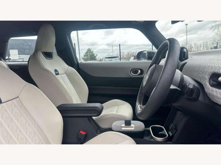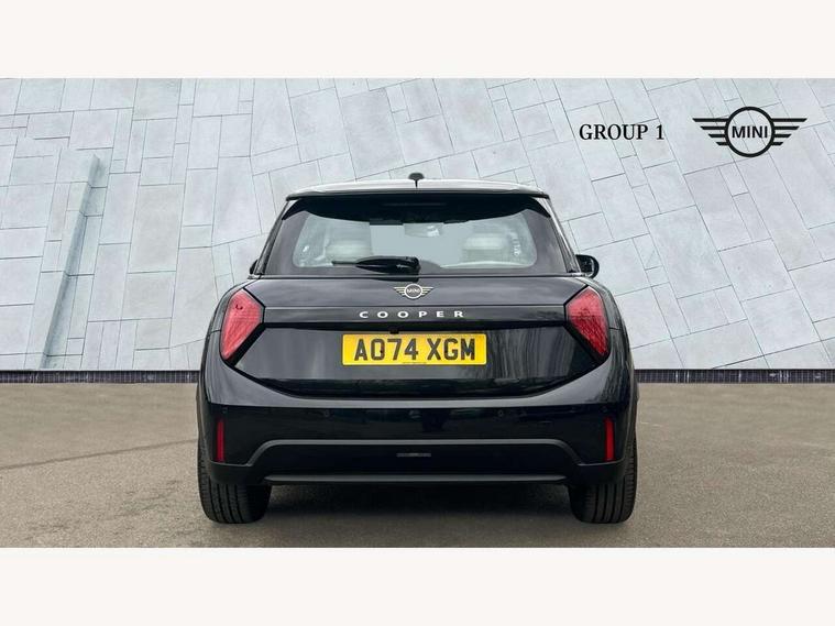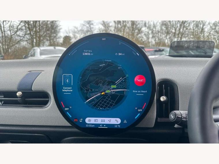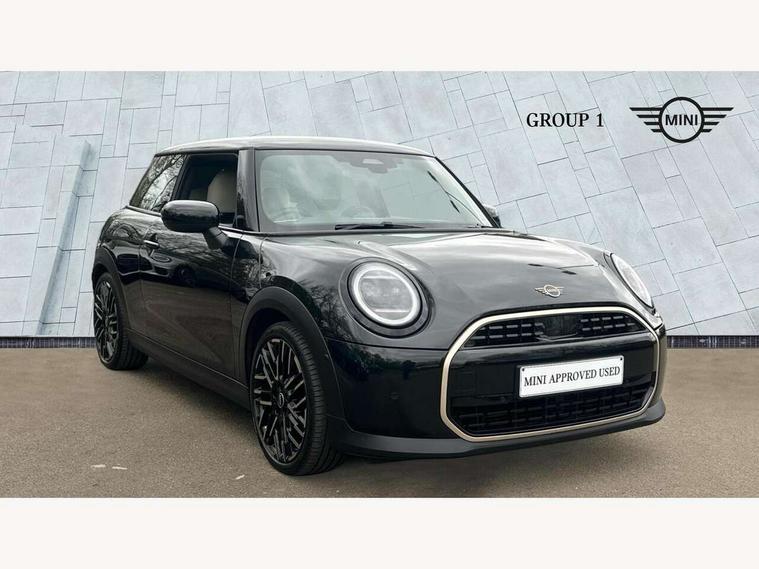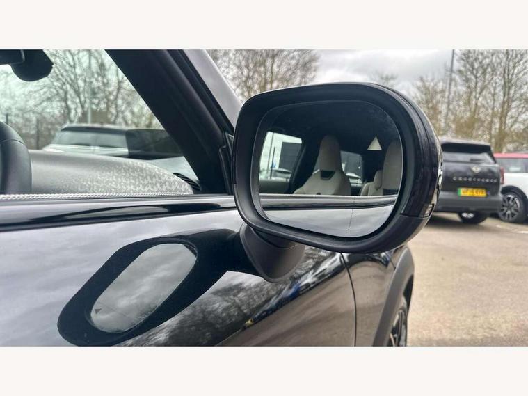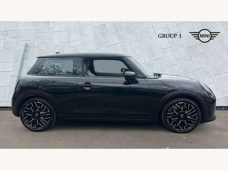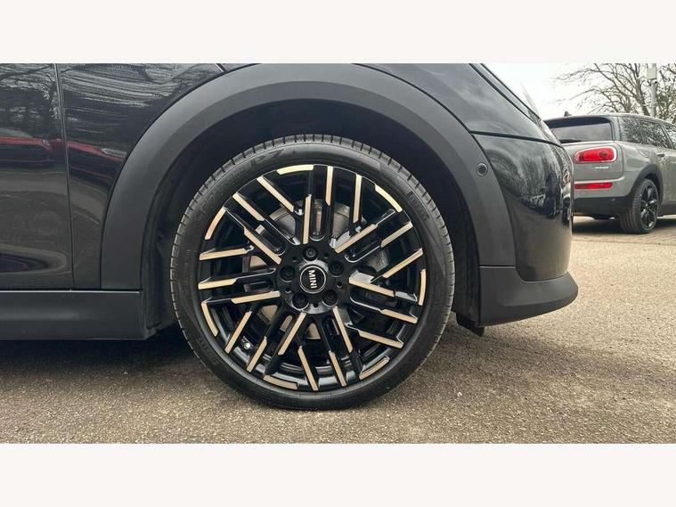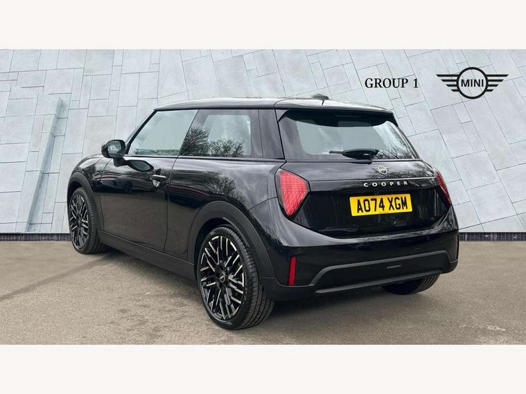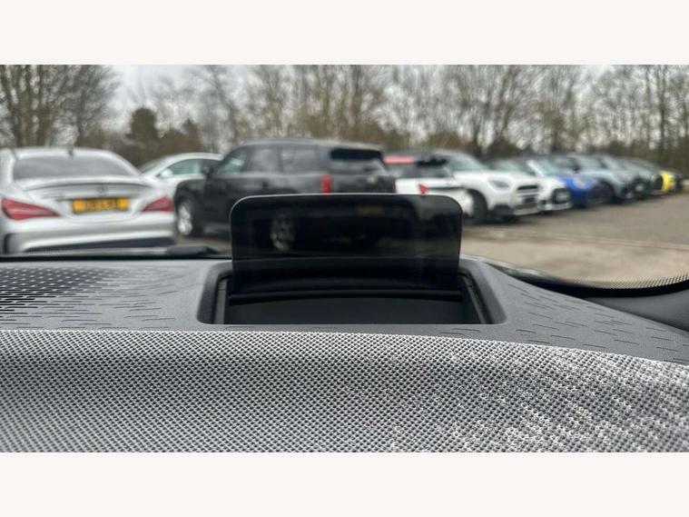 Central toggle bar, Circular OLED Screen, Compatible mobile phone bluetooth with audio streaming, Cruise control, Digital instrument cluster, Electro-mechanical speed dependant steering assistance, Emergency call service, MINI Experience Modes, Mini navigation system, On board computer, Service interval indicator, 7 speed steptronic transmission with double clutch, DAB Digital radio, Personal eSim, Auto headlights, Electric adjustable heated door mirrors, Electric front windows, Heated rear window, Heated windscreen washer jets, LED daytime running lights, LED Headlights, LED indicator lights, LED rear lights, Logos in Vibrant Silver, Rain sensor window wipers, Rear fog lights, Rear window wiper, Vibrant silver grille surround, 2 seat bench in second row, 2 zone automatic air conditioning, 60/40 rear seat bench, Ambient lighting, Cupholders, Dark headliner, Floor mats, Front and rear head restraints, Front compact armrest, Heated steering wheel, Height adjustable passenger seat, Lidded storage box in grey knit, Luggage compartment lighting, Single front passenger seat, Sport Vescin Steering Wheel black with vibrant silver accents, Sunvisors with vanity mirrors, Vescin synthetic leather upholstery, Driving assistant pack - Cooper Hatchback, Park assistant pack - Cooper Hatchback, 3 point seatbelts on all four seats, 6 Airbags - front, side, head and seat belt tensioners, Acoustic pedestrian protection, Anti-lock braking system (ABS), DSC - Dynamic Stability Control, Electronic parking brake, Front and rear disc brakes, Front ISOFIX (iSize), Front passenger airbag deactivation, Traction control, Tyre pressure monitoring system, Alarm, Immobiliser, Remote central locking, Blue decorative dash strap, Light Beige/Grey dash knit, Tyre repair kit,