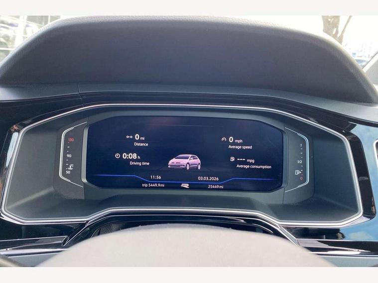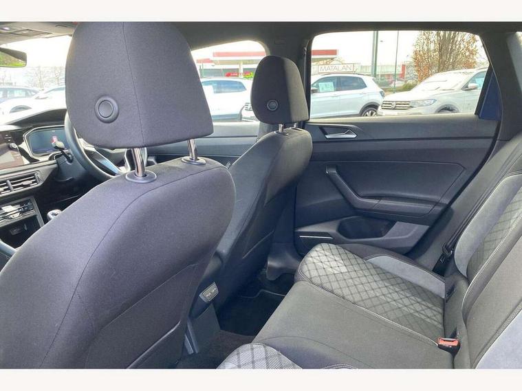 Adaptive cruise control without follow-to-stop and speed limiter, Bluetooth mobile phone interface, Digital Cockpit Pro with 10.25" Display, Driver alert system, Dynamic road sign display, Emergency call service, Power assisted speed sensitive steering, Preparation for We connect and We connect plus, Speedo and rev counter, electronic odometer, trip, service interval display and fuel gauge, Standard rear axle, Travel Assist - Lane keeping system and traffic jam assist, Travel assist including emergency assist, Trip computer, Warning signal and warning light for front and rear seatbelts not fastened, Washer fluid level indicator, Wireless app connect, Front wheel drive, Rear shock absorpion, Start-stop system with battery regeneration (recuperation - energy recovery during braking), DAB Digital radio, Diversity antenna for FM reception, Front and rear 6 speakers, Body colour bumpers, Body colour door handles, Electric front windows, Front scuff plates with R-Line logo, Heat insulating darkened glass in side and rear windows, Heat insulating glass windscreen, Power folding adjustable/heated exterior mirrors and front passenger exterior mirror lowering function, Rear electric windows, Rear fog light, Rear side wing doors, Rear windscreen washer and wiper with interval delay, Third brake light, 12V power socket in centre console, 2 USB-C ports in the front, 2 USB-C charging sockets on the center console in the rear, 3 rear head restraints, 60/40 split folding rear seat and rear seat bench not split, Air care climatronic air conditoning system with active combination filter and 2-zone temperature control, Black roof lining, Chrome plated radiator grille inserts, air vent surrounds and light switch surrounds, Door and side trim panel, Driver and front passenger seat height adjustment, Driver/passenger sunvisors with illuminated vanity mirrors, Front + rear carpet mats in recycled material, Front centre armrest, Front footwell illumination, Front seat backrest storage pockets, Front sports comfort seats, Handbrake lever handle in leather, Headliner in recycled material, Isofix child seat preparation easy-fit (for two outer rear seats, and front passenger seat) compatible with I-size, Karoso artvelours cloth upholstery, Leather trimmed gear knob, LED interior light with switch off delay and dimmer, 2 reading lights front and rear, Luggage compartment cover, Luggage compartment floor, Luggage compartment lighting, Lumbar adjustment for front seats, Multifunction steering wheel, Single front passenger seat, Stainless steel pedals, Standard pedal cluster, Light and sight pack - Polo R-Line/Black Edition, 3 point height adj front seatbelts + pretensioners, 3x3 point rear seatbelts, ABS, Driver and front passenger airbag with front passenger airbag deactivation, Drivers and front passengers safety optimised head restraints, ESC (Electronic stability control) + EDL (Electronic Differntial lock) and ASR (Traction control), Extended and predictive pedestrian/ cyclist protection, Front curtain and side airbags with center airbag, Hill hold control, Manual child lock in rear doors, Single tone horn, Tyre pressure loss indicator, Alarm with interior protection, Anti-theft alarm system with interior monitoring, backup horn, and towing protection, Anti-theft wheel bolts, Electronic engine immobiliser, Chrome applications on rotary light, mirror adjustment, window regulator switches, outlet with frame in black, Dark grey anodised matt decorative inserts in dash and front door panels, Low rolling resistance tyres,