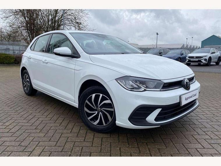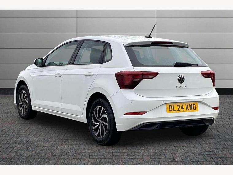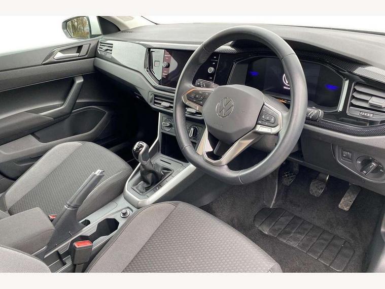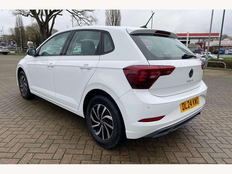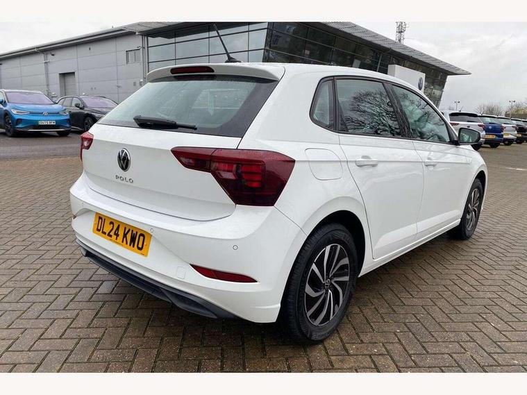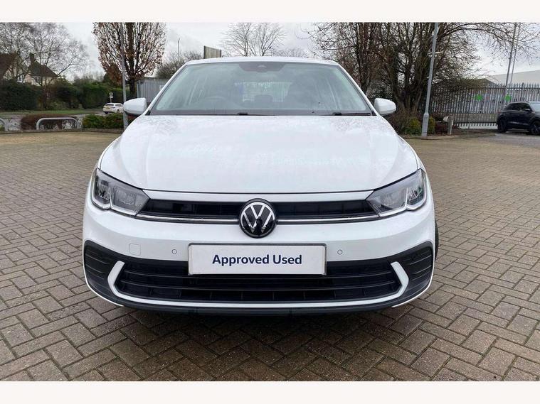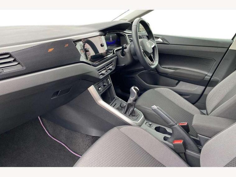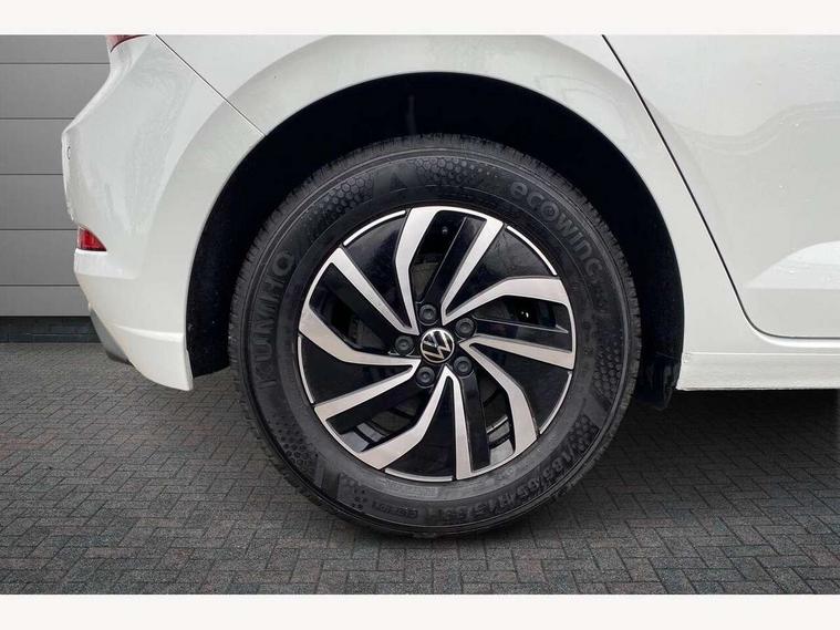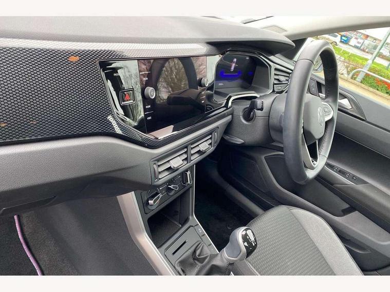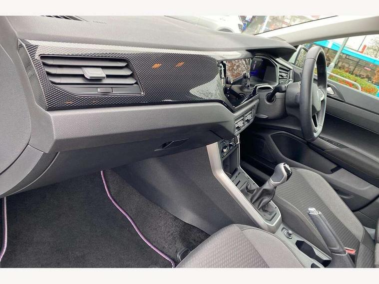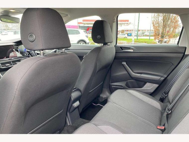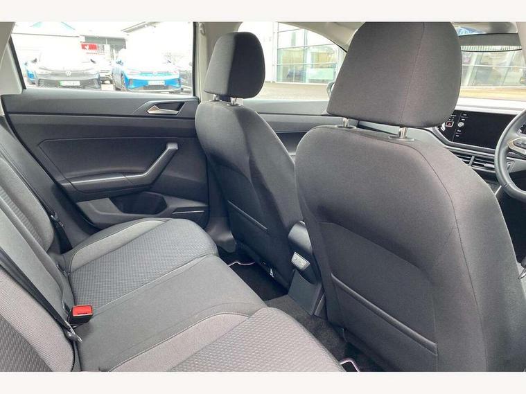 Adaptive cruise control without follow-to-stop and speed limiter, Advanced driver attention and drowsiness monitor, Bluetooth mobile phone interface, Dynamic road sign display, Emergency call service, Power assisted speed sensitive steering, Preparation for navigation system with media and internet package, Preparation for We connect and We connect plus, Speedo and rev counter, electronic odometer, trip, service interval display and exterior temperature gauge, Standard rear axle, Travel Assist - Lane keeping system and traffic jam assist, Travel assist including emergency assist, Trip computer, Warning signal and warning light for front and rear seatbelts not fastened, Washer fluid level indicator, Wireless app connect, Front wheel drive, Rear shock absorpion, Start-stop system with battery regeneration (recuperation - energy recovery during braking), DAB Digital radio, Diversity antenna for FM reception, Automatic dimming interior rear view mirror, Automatic headlight control with LED separate daytime running lights with coming/leaving home function, Body colour bumpers with chrome inserts, Body colour door handles, Body colour door mirrors, Electric front windows, Engine badge deletion, Headlight range adjustment, Heat insulating and laminated safety glass windshield, Heat insulating darkened glass in side and rear windows, Heat insulating glass windscreen, LED Headlights, LED rear combination lamps, Power folding adjustable/heated exterior mirrors and front passenger exterior mirror lowering function, Rain sensor, Rear electric windows, Rear fog light, Rear side wing doors, Rear windscreen washer and wiper with interval delay, Third brake light, 12V power socket in centre console, 2 front and 2 rear reading lights with switch off delay and dimmer, 2 USB-C ports in the front, 2 USB-C charging sockets on the center console in the rear, 3 rear head restraints, 60/40 split folding rear seat and rear seat bench not split, Ceramique roof lining, Chrome plated radiator grille inserts, air vent surrounds and light switch surrounds, Door and side trim panel, Driver and front passenger seat height adjustment, Driver/passenger sunvisors with illuminated vanity mirrors, Front centre armrest, Front seat backrest storage pockets, Front standard seats, Handbrake lever handle in leather, Hartley/Thomas cloth upholstery, Headliner in recycled material, Isofix child seat preparation easy-fit (for two outer rear seats, and front passenger seat) compatible with I-size, Leather trimmed gear knob, Luggage compartment cover, Luggage compartment lighting, Removable luggage compartment floor, Single front passenger seat, Standard climatic zones, Standard pedal cluster, Three spoke leather wrapped multifunction steering wheel, Light and vision pack - Polo, 3 point height adj front seatbelts + pretensioners, 3x3 point rear seatbelts, ABS, Driver and front passenger airbag with front passenger airbag deactivation, Drivers and front passengers safety optimised head restraints, ESC (Electronic stability control) + EDL (Electronic Differntial lock) and ASR (Traction control), Extended and predictive pedestrian/ cyclist protection, Front assist with autonomous emergency braking (for Adaptive Cruise Control ACC up to 130 mph), Front curtain and side airbags with center airbag, Front disc brakes, Hill hold control, Manual child lock in rear doors, Rear drum brakes, Single tone horn, Tyre pressure loss indicator, Alarm with interior protection, Anti-theft alarm system with interior monitoring, backup horn, and towing protection, Anti-theft wheel bolts, Electronic engine immobiliser, Lava stone black gloss/matt decorative inserts in dash and front door panels, Low rolling resistance tyres,