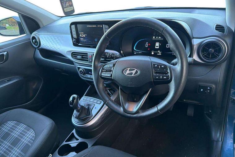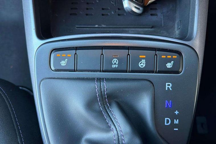 Apple car play/Android Auto, Bluelink mobile remote connectivity, Bluetooth connectivity with voice recognition, Cruise control, Driver attention alert system, eCall emergency call system, Forward Collision-Avoidance Assist (FCA) - Pedestrian/Cyclist, Front USB-C charging and USB-A data, Full-width 4.2" LCD instrument cluster, Intelligent speed limit assist, Lane departure warning system with lane keep assist - LKAS, Lane follow assist, PAS, Rear parking sensors, Rear view camera with guidelines, Roadside assistance, Start/Stop function, Tailgate, Trip computer, Wireless charging pad, 2 front/2 rear speakers, Rear USB-C device charger, Steering wheel audio, phone and cruise controls, 1 speed non intermittent rear windscreen wiper, Black finish on B pillars, Body colour door handles, Body coloured bumpers, Body coloured door mirrors, Electric folding door mirrors, Electric front windows, Electric rear windows, Electrically adjustable and heated door mirrors, Flat metal emblem, Front fog lights, Front grille in glossy black, Front intermittent wipers, Halogen bi-function headlights, Headlights inner with Black Blade design, Heated rear window, High beam assist, Indicator light on door mirrors, LED DRLs diamond mesh design, Privacy glass - Rear windows and tailgate, Rear roof spoiler with integrated LED brake light, Rear side wing doors, 12v power outlet - front, 3 seat bench in 2nd row, 60/40 split folding flat to floor rear seats, Air conditioning, Auto light control, Bottle holders in front/rear doors + front centre console, Cabin and luggage compartment interior lighting, Cloth upholstery, Driver + passenger vanity mirrors, Driver's seat height adjustment, Driver/passenger sunvisors with ticket holders, Floor mats, Front door pockets, Front Head Restraints - Vertical and Horizontal Adjustment, Front LED blue mood lighting, Glove compartment, Heated front seats, Heated steering wheel, Height adjustable steering column, Isofix child seat preparation, Leather multifunction steering wheel, Rear door pockets, Single front passenger seat, Vertical adjustment rear head restraints, 3x3 point rear seatbelts, Airbags - front, front side and curtain airbags, Anti-lock brake system (ABS), Autonomous emergency braking (AEB) with forward collision warning system, Brake assist function, Childproof rear door locks, Electronic stability control, Front and rear seatbelt reminder, Front seatbelt pretensioners, Hill start assist control (HAC), Passenger airbag deactivate switch, Traction control, Tyre pressure monitoring system, Immobiliser, Perimeter alarm, Rear occupant alert, Remote central locking, Second remote key, Smart key with motion sensor, Speed sensitive auto door locking, 16" alloy wheels, Tyre repair kit,