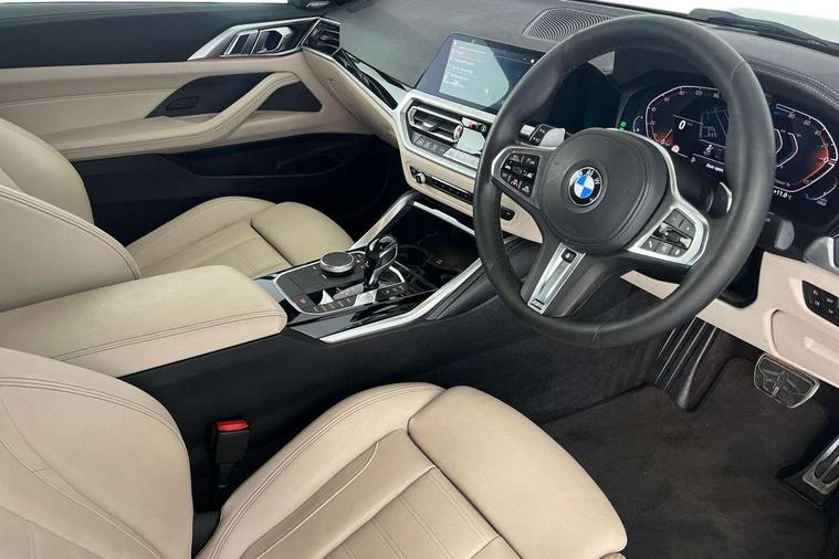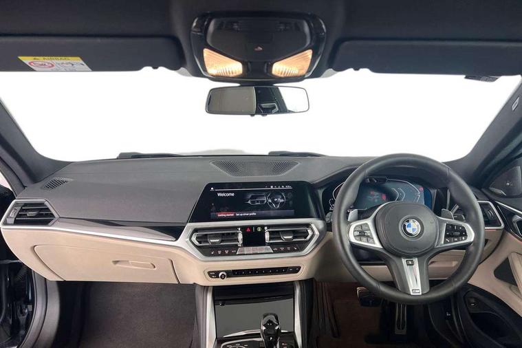 Active guard plus, Attentiveness assist, Auto start-stop, BMW ConnectedDrive online services, BMW iDrive controller on centre console, BMW Live Cockpit Professional Nav with 12.3" instrument display + 10.25" display, Intelligent Voice Assist, BMW OS 7, HDD, 2USB, 4G LTE connect, BMW service history, BMW Teleservices, Brake pad wear indicator in front and rear, Check Control warning system for monitoring of lights and door/luggage compartment open warning, Condition based service, Cruise control with brake assist, Electric power steering, Electric power steering with Servotronic steering optimised at all speed ranges, Gearshift time display in manual mode, Instrument cluster with speedometer with mph readout, tachometer, fuel gauge and oil temperature gauge, Integrated owners handbook, Oil sensor for level and grade, warning by check control system, On board computer - average speed, fuel consumption, outside temp display with acoustic warning, clock/date, service interval, odometer/trip meter, Optimum shift indicator, Variable sport steering, 48V Mild hybrid technology, 8 speed automatic steptronic transmission with gearshift paddles, Balanced 50/50 weight distribution, Diesel particulate filter, Drive performance control - ECO PRO, comfort and sport modes, Electronic differential lock control (EDLC), Incorrect fuelling protection, Low centre of gravity, M sport suspension, Stroke dependent dampers, xDrive system permanent all-wheel drive variable torque distribution, DAB tuner, Electronic service booklet, Acoustic glazing, Adaptive LED Headlights, Automatic headlight beam throw control with load dependent regulating reaction, dynamic compensation of braking dive and acceleration squat, Automatically dimming electrochromatic rear view mirror, BMW emblem on engine compartment lid and tailgate, BMW kidney grille with mesh grille front side of the nuggets in matt aluminium and frame in chrome high gloss, Body colour fuel filler flap, Body colour M sport rear spoiler, Body colour roof fin, Brushed aluminium inserts in the front door sill finishers with BMW designation, Dynamic brake lights, Electric windows - front and rear, with open/close fingertip control, anti trap facility and comfort closing function all round, Exhaust tailpipe - split left and right, Exterior mirrors - electrically folding with anti-dazzle, Fading support, Front and rear bumper system, Front apron plastic in body colour, Green tinted heat protection glazing, High gloss shadow line exterior trim, Illuminated bow type door handles in body colour drivers side with door lock, Interior rear view electrochromatic mirror with automatic anti dazzle function, LED front fog lights, Licence plate panel integrated into front bumper and tailgate, Lightweight engineering, M designation on front side panels, left and right, One piece front bumper cover including towing eye cover in body colour, Preparation for high beam assistant, Rain sensor, Side frame decorative moulding black matt, Two part LED tailights in L-shape with components in smoked glass, brake light, LED turn indicator and rear fog light, Visible VIN plate, Welcome lights in interior and door handle area, Widened track and increased camber values for max transverse dynamics, agility and steering precision, Window recess cover black high gloss, Windscreen wipers with integrated washing jets, xDrive designation on left tailgate, 12V power socket in front centre console, 2 front cupholder in centre console with clamping elements and matt black inlay, 2 Rear seat headrests, 3 spoke M leather multifunction steering wheel, 3 zone automatic air conditioning, 4 pieces lashing eyelets in luggage compartment, 40:20:40 split folding rear seat and rear centre armrest with two cupholders, Ambient lighting with welcome carpet light, Anthracite headlining, Armrest integrated in front and rear door trim + front centre console armrest, Four grab handles integrated in roof lining, Front and rear door exit lighting (left / right), Front and rear door pockets, Front and rear footwell lights, Front and rear reading lights, Front headrests, Front seat backrest width adjustment, Front sport seats, Heated driver and front passenger seats, Height adjustable mechanically and infinitely variable steering column, Illuminated armrest storage compartment, Illuminated glove compartment with separate small compartment, Luggage compartment light, Make-up mirror lights, Storage compartment in rear centre console, Sunvisors with vanity mirrors and ticket pocket, Toolkit located in luggage compartment, Velour front floor mats, Vernasca leather upholstery, Connected professional package - 4 Series, M sport exterior styling pack - 4 Series, 2 x 3-point rear seatbelts, Battery safety cut-off, BMW emergency call, Brake energy regeneration, Braking pre-tensioning, Child proof locking system in rear door, Child seat ISOFIX attachment for the two outer rear seats, Coasting in idle in ECO PRO mode, Cornering brake control (CBC), Crash sensor activating of airbags, Unlocking doors, hazard warning lights, interior light, safety battery terminal, Driver and front passenger side airbags, integrated in the door side seat backrest bolsters for all seat variants, Driver/Front Passenger airbags, Dry braking, Dynamic brake control, Dynamic stability control + (DSC+) - Anti-lock Braking System (ABS) with brake assist and cornering brake control + Automatic Stability Control (ASC), Dynamic Traction Control - DTC, Electric parking brake including automatic hold function and automatic release of the parking brake when driving off, Front and rear ventilated brake disc, Front passenger manual airbag deactivation, Head airbags for all 4 outer seats, Hill start assistant, Seat belt security check for driver and front passenger, Seat belt with belt stopper, pyrotechnic belt tensioners and belt force limiters, Side impact protection, Tyre pressure monitoring with three level warning strategy, Warning triangle and first aid kit, Al