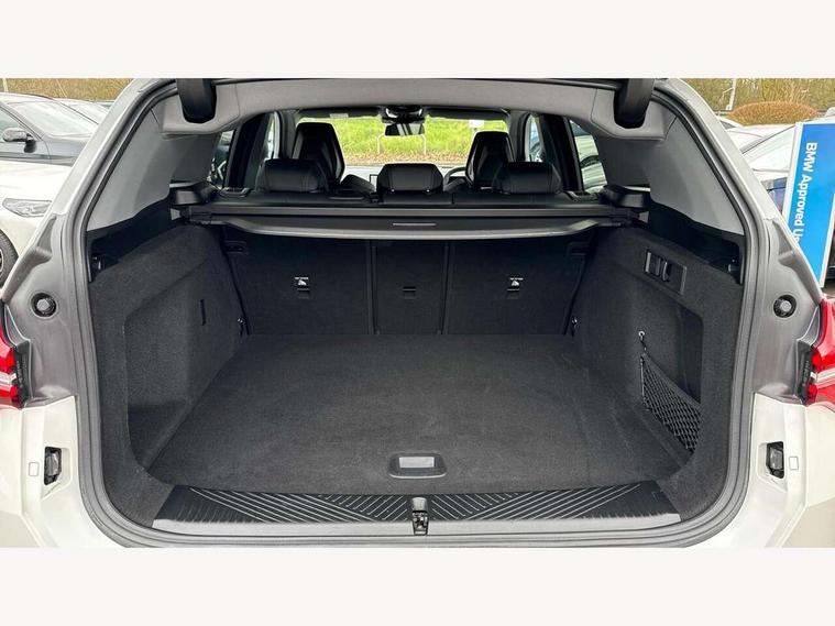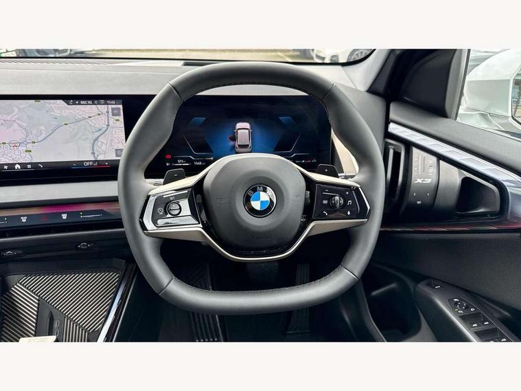 Active guard professional, Attentiveness assist, Automatic operation of tailgate, BMW ConnectedDrive online services, BMW iDrive, BMW Live cockpit plus, BMW Online services, BMW Teleservices, Brake pad wear indicator, Condition based service, Cruise control with brake function + speed limiter, Drive off assistant, Driving Assistant Plus Preparation, Flat tyre monitor, Language version English, My Mode - Personal, Efficient, Sport, Relax, Expressive, Reversing assist camera, Servotronic system, Variable sport steering, Dynamic stability control, Multiple control arm rear axle, Steptronic transmission with gearshift paddles, Two-joint strut-type front axle with tension strut, DAB tuner, Personal eSim, 4 tailpipe tips, B-pillar trim panel in black high-gloss, BMW badge on front and rear, BMW M-specific front/rear bumpers and side sills, BMW M-specific radiator grille with horizontal bars in Dark Silver and M logo, Body colour mirror caps, Daytime running lights, Door handles flush to the surface with lock barrel on driver's side is illuminated and in vehicle colour, Dynamic brake lights, Electric adjustable and heated door mirrors, Electric window trap release and convenient opening/closing feature, Headlight beam throw control, Heated rear window, Heated windscreen washer jets, High beam assistant, LED 3rd brake light, LED rear lights, LED tail lights, LED turning indicators, Locking of the doors, M-specific Exterior mirrors, Mirror base and mirror blade in satinised aluminium, Mirror triangle in black high-gloss, Model inscription on right tailgate, Rain sensor with automatic headlight activation, Rear side wing doors, Rear wiper, Reversing light, Side window frame in black high-gloss, Windscreen wipers, 12v power socket in front centre console and luggage compartment, 2 x USB Type C ports for charging and data transmission (front centre console) and 2 x USB Type C ports for charging (rear centre console), 3 rear headrests, 3 seat bench in 2nd row, 3 zone automatic air conditioning, 40:20:40 split folding rear seat with loading system, Ambient lighting, Electric adjustable seats with memory function, Floor mats in velour, Footrest and pedals in black plastic, Four grab handles integrated in roof lining, Front armrest with integrated control panel, Front centre console trim in black high-gloss, Front head restraints, Front passenger seat, Front sports seats, Glove compartment, i-Size / ISOFIX attachment points on both outer rear seats, with covers in black, Interior door handles in dark chrome, Luggage compartment separating net, Multifunction steering wheel, Rear side armrests integrated into door trim, Selector lever with toggle operation, Steering column adjustment, Sun visors with illuminated vanity mirrors, Three upper retaining strap clips integrated into the rear panels of the seat backrests, Through loading system, Two front cupholders and two in the rear center armrest, Wireless charging tray, Connected pro package - X3, Interior and exterior mirror package - X3, 3 point seatbelts, Airbag deployment is controlled with respect to the intensity and scope, Anti-lock braking system (ABS), Automatic hold function, BMW emergency call, Brake assist, Brake drying, Brake energy regeneration, Braking readiness, Central airbag, Child locks on rear doors, Cornering brake control (CBC), Crash Sensor - activation of central locking release, hazard warning light and interior lighting, Driver and front passenger front and side airbags, Dynamic brake control, Electromechanical parking brake, Front and rear disc brakes, Head airbags, Integrated braking system, Post Crash Collision Warning with braking function, Trailer stability control, Tyre pressure sensor, Warning triangle, Alarm system, Closing system with central locking, Comfort access system with BMW digital key plus, Locking wheel bolts, Start/stop button with keyless motor start with acoustic drive, Tyre repair kit plus,
