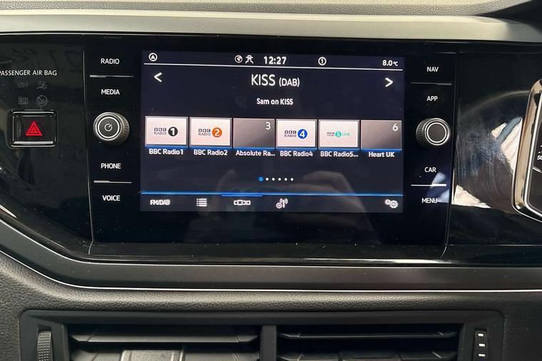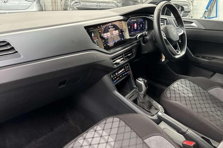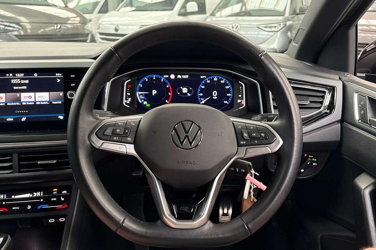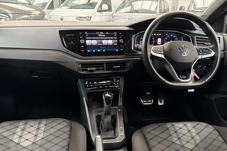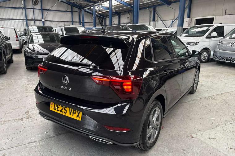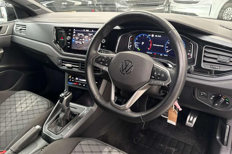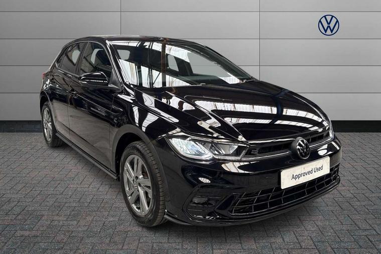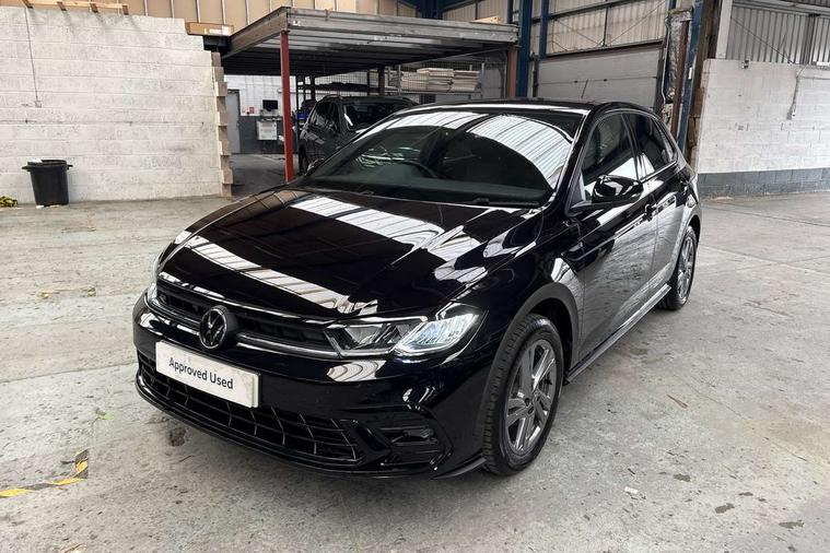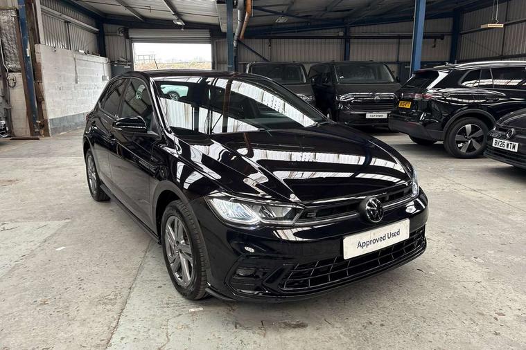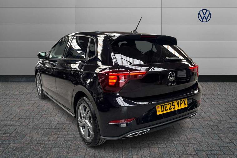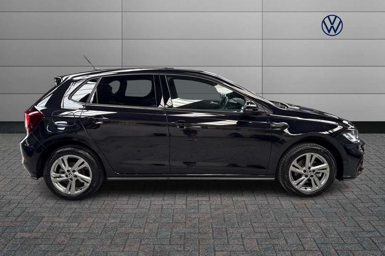 Adaptive cruise control with follow-to-stop and speed limiter, Advanced driver attention and drowsiness monitor, Bluetooth mobile phone interface, Digital Cockpit Pro with 10.25" Display, Dynamic road sign display, Emergency call service, Multifunction camera, Power assisted speed sensitive steering, Preparation for We connect and We connect plus, Speedo and rev counter, electronic odometer, trip, service interval display and fuel gauge, Standard rear axle, Travel Assist - Lane keeping system and traffic jam assist, Travel assist including emergency assist, Trip computer, Warning signal and warning light for front and rear seatbelts not fastened, Washer fluid level indicator, Wireless app connect, Front wheel drive, Rear shock absorpion, Start-stop system with battery regeneration (recuperation - energy recovery during braking), DAB Digital radio, Diversity antenna for FM reception, Front and rear 6 speakers, Body colour bumpers, Body colour door handles, Electric front windows, Front scuff plates with R-Line logo, Heat insulating glass windscreen, Power folding adjustable/heated exterior mirrors and front passenger exterior mirror lowering function, Rear electric windows, Rear fog light, Rear side wing doors, Rear windscreen washer and wiper with interval delay, Third brake light, 12V power socket in centre console, 2 USB-C ports in the front, 2 USB-C charging sockets on the center console in the rear, 3 rear head restraints, 60/40 split folding rear seat and rear seat bench not split, Air care climatronic air conditoning system with active combination filter and 2-zone temperature control, Black roof lining, Carpet mats, front and rear, Chrome plated radiator grille inserts, air vent surrounds and light switch surrounds, Door and side trim panel, Driver and front passenger seat height adjustment, Driver/passenger sunvisors with illuminated vanity mirrors, Front centre armrest, Front footwell illumination, Front seat backrest storage pockets, Front sports comfort seats, Handbrake lever handle in leather, Headliner in recycled material, Isofix child seat preparation easy-fit (for two outer rear seats, and front passenger seat) compatible with I-size, Karoso artvelours cloth upholstery, Leather trimmed gear knob, LED interior light with switch off delay and dimmer, 2 reading lights front and rear, Luggage compartment cover, Luggage compartment floor, Luggage compartment lighting, Lumbar adjustment for front seats, Single front passenger seat, Stainless steel pedals, Standard pedal cluster, Three spoke leather wrapped multifunction steering wheel with shifting paddles, Light and sight pack - Polo R-Line/Black Edition, 3 point height adj front seatbelts + pretensioners, 3x3 point rear seatbelts, ABS, Driver and front passenger airbag with front passenger airbag deactivation, Drivers and front passengers safety optimised head restraints, ESC (Electronic stability control) + EDL (Electronic Differntial lock) and ASR (Traction control), Extended and predictive pedestrian/ cyclist protection, Front curtain and side airbags with center airbag, Front/rear disc brakes, Hill hold control, Manual child lock in rear doors, Single tone horn, Tyre pressure loss indicator, Alarm with interior protection, Anti-theft alarm system with interior monitoring, backup horn, and towing protection, Anti-theft wheel bolts, Electronic engine immobiliser, Chrome applications on rotary light, mirror adjustment, window regulator switches, outlet with frame in black, Dark grey anodised matt decorative inserts in dash and front door panels, 16" Coventry alloy wheels, Low rolling resistance tyres,